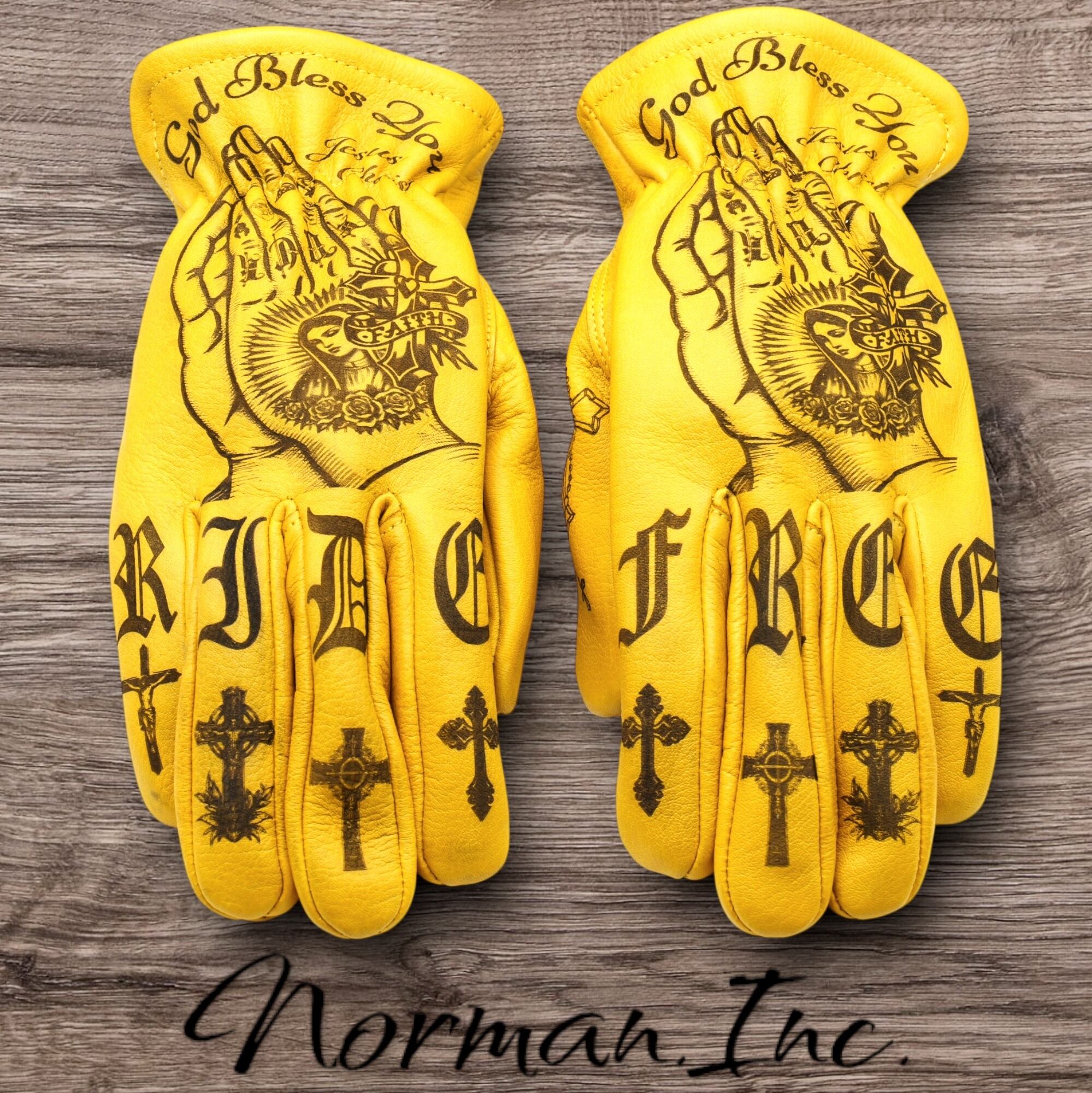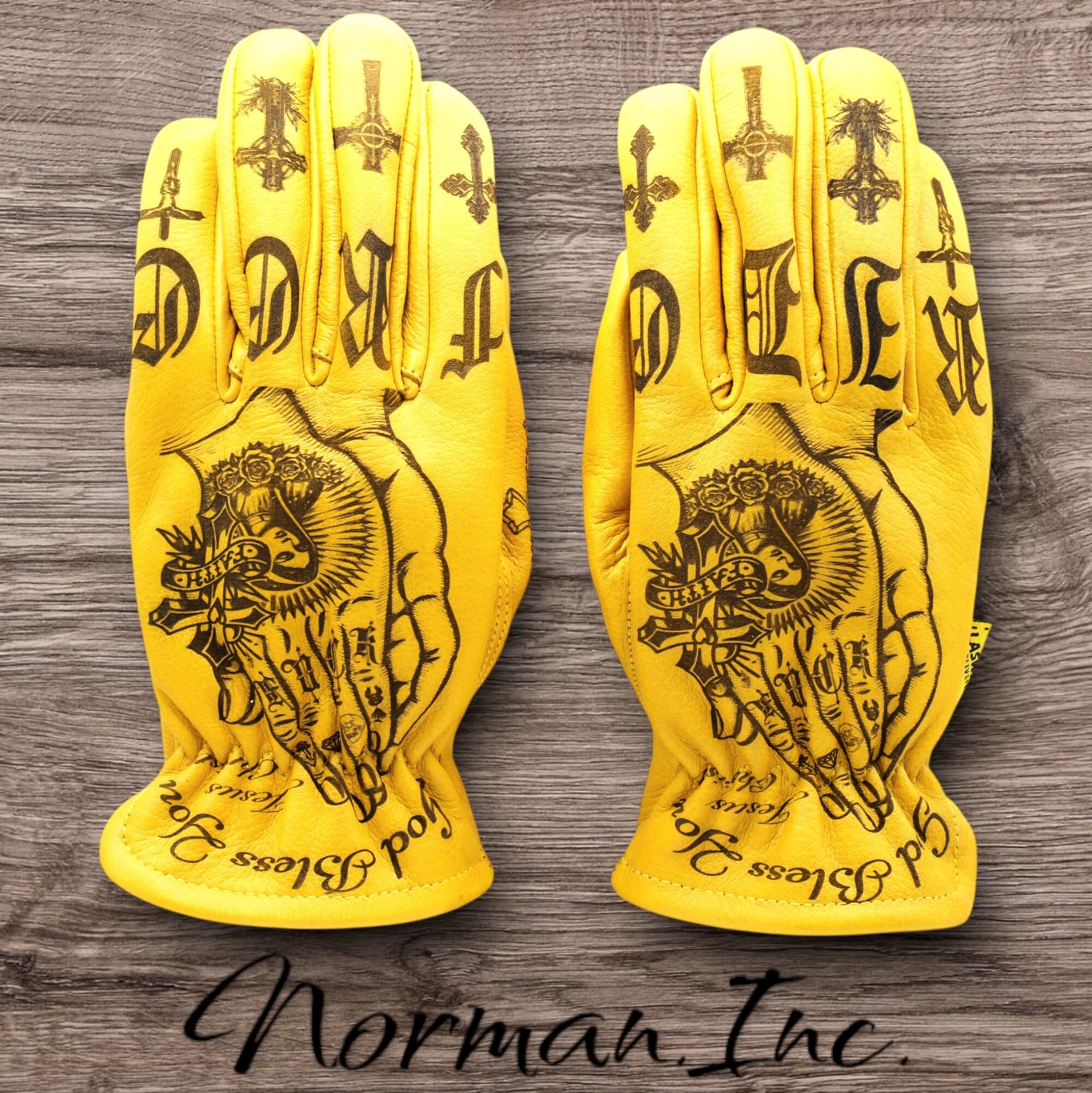 アメリカンタトゥーデザインを施した、牛革レザーグローブになります。