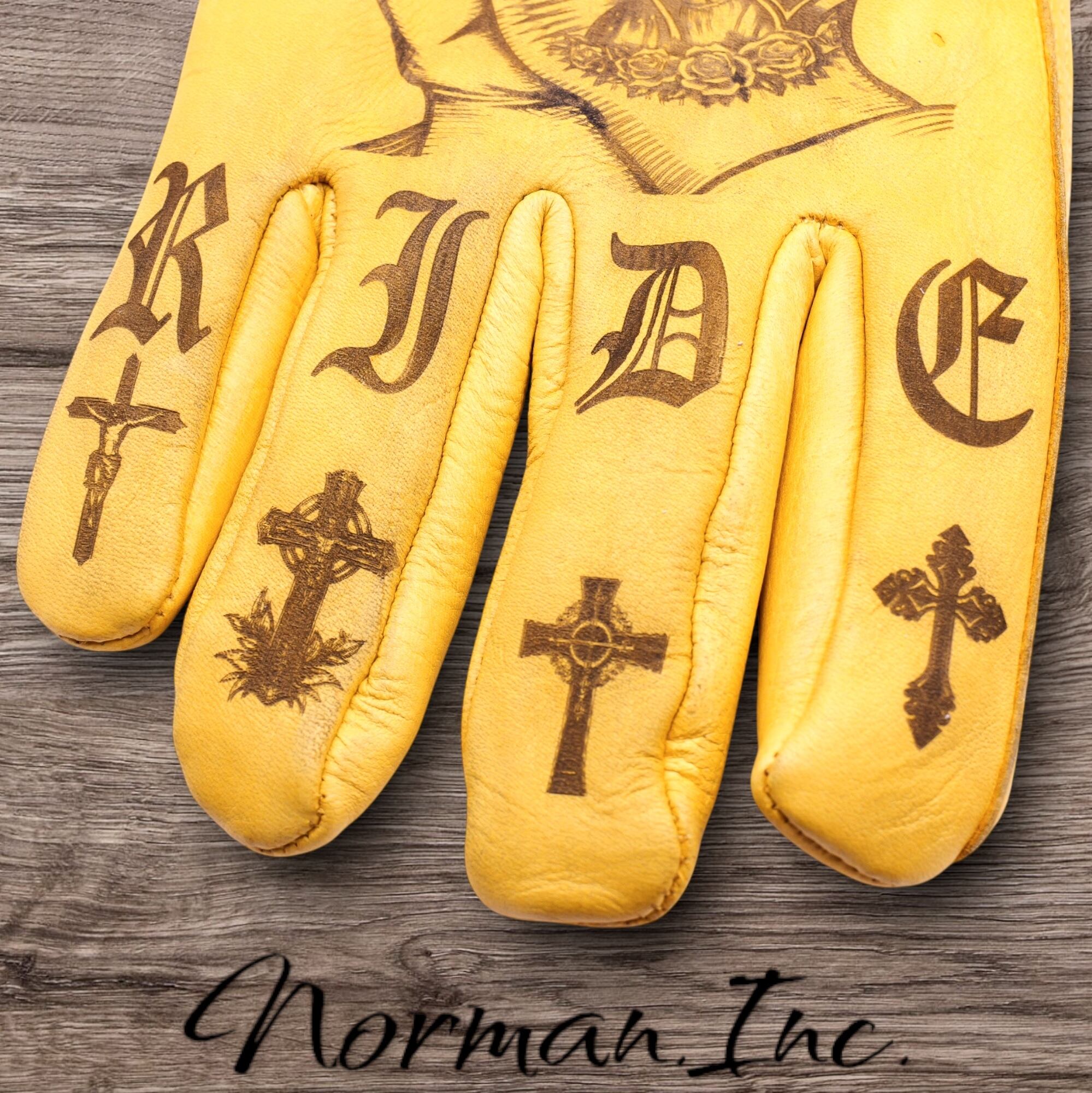 牛革 冬用 保温綿 裏起毛 レザーグローブ アイアンクロス アメリカン バイク ハーレー カスタム タトゥー 手袋 キャンプ DIY カスタムグローブ 3M ツーリング XLサイズ