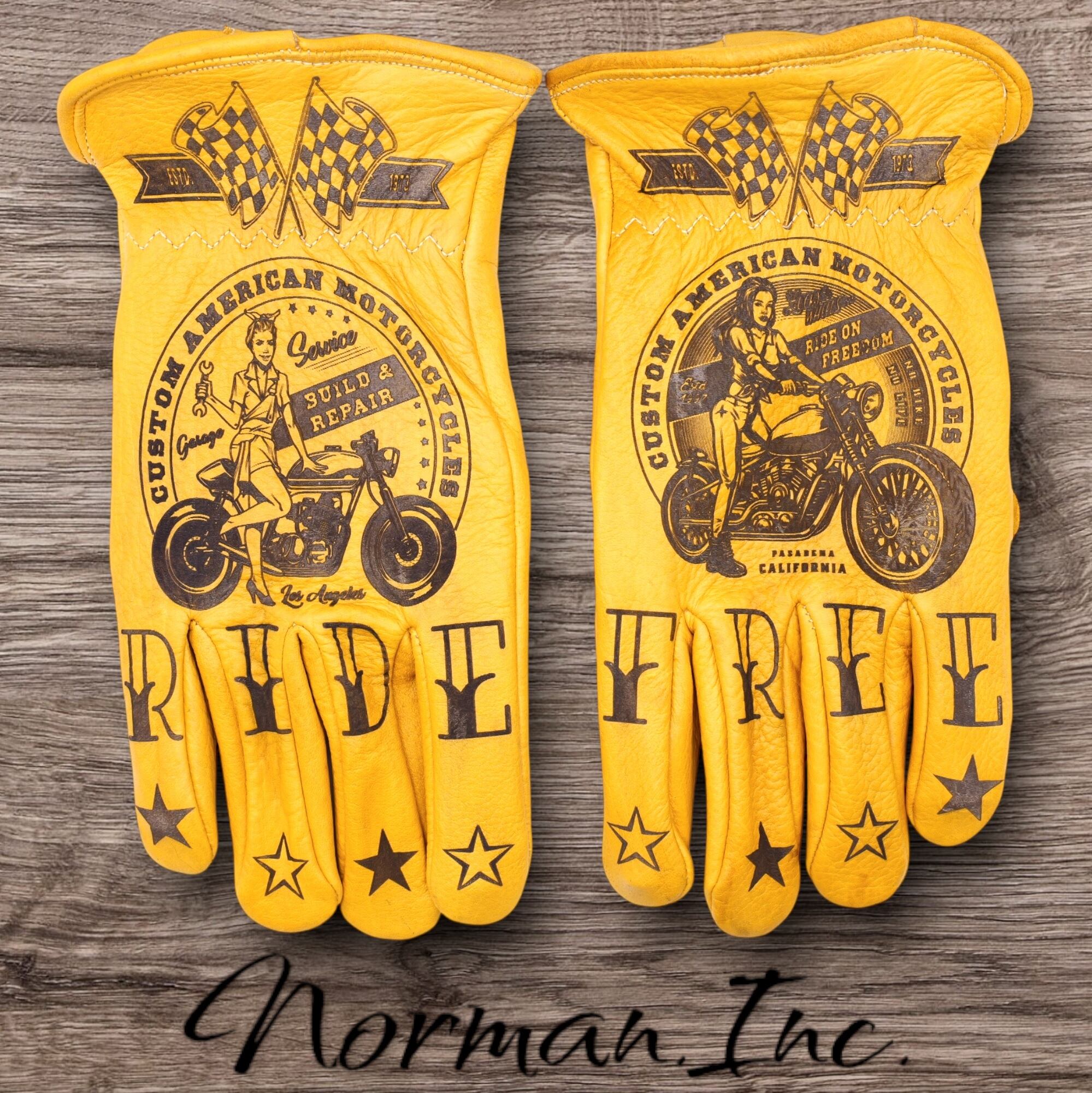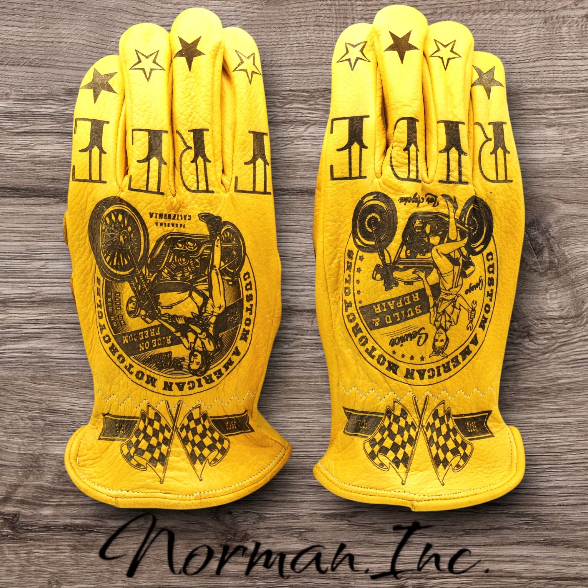 牛革 レザーグローブ アメリカン バイク ハーレー カスタム タトゥー 手袋 キャンプ DIY カスタムグローブ ツーリング Mサイズ