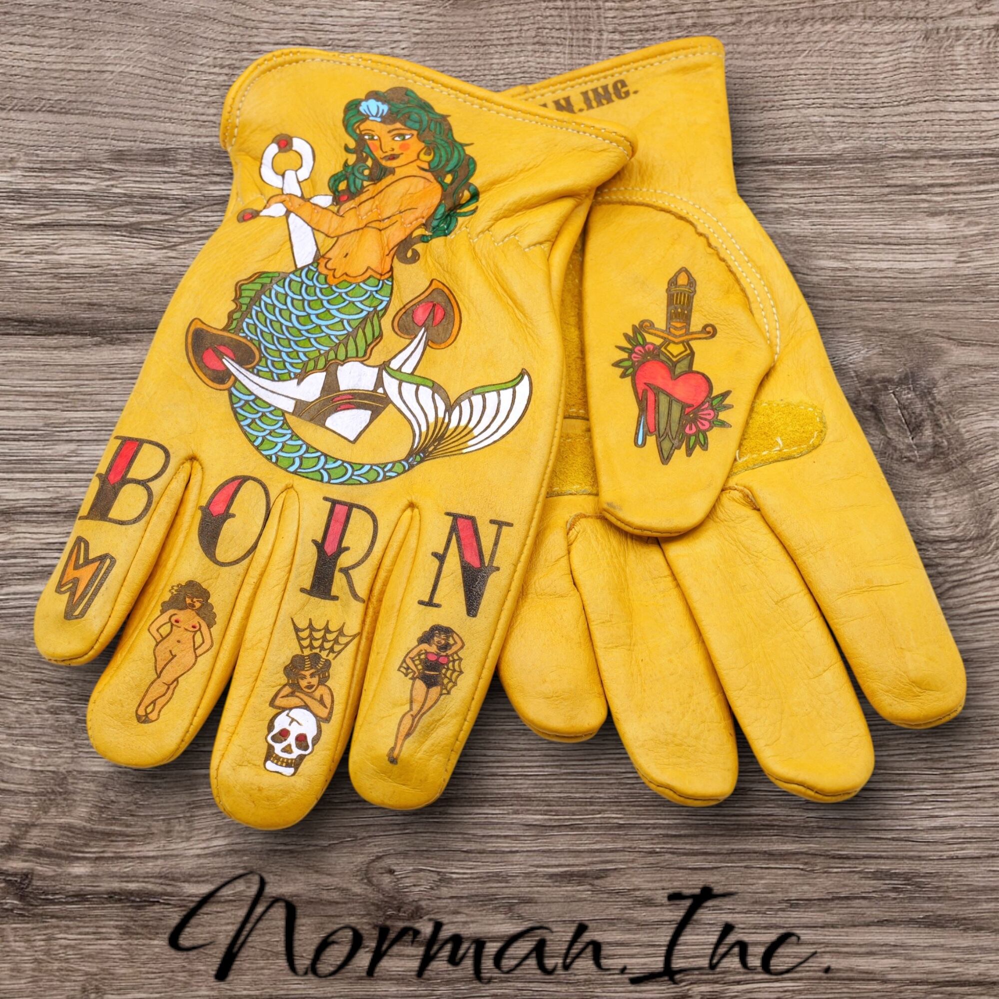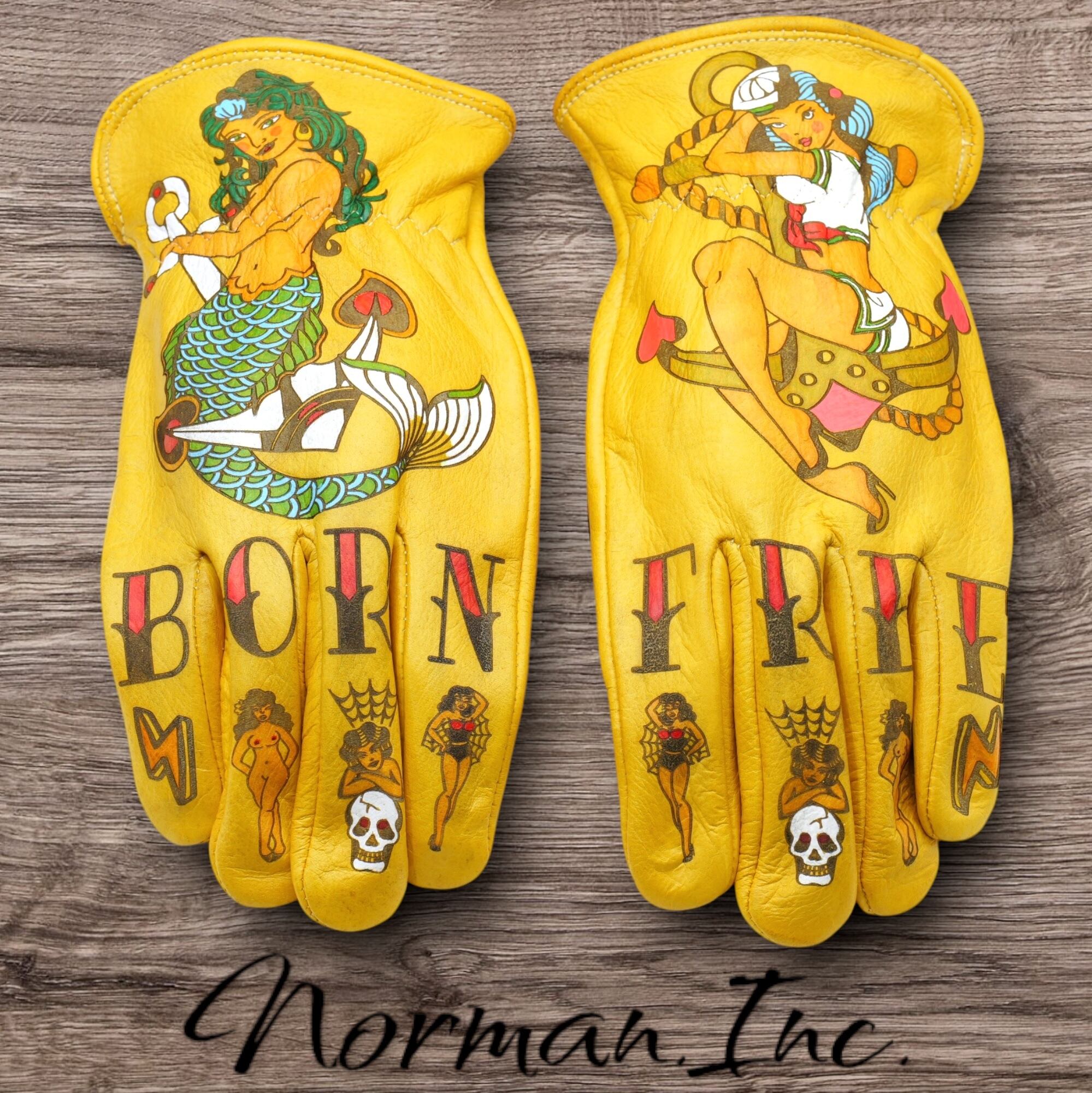 Lサイズ 牛革 レザーグローブ アメリカン バイク ハーレー カスタム タトゥー 手袋 キャンプ DIY カスタムグローブ ツーリング ハーレーダビッドソン