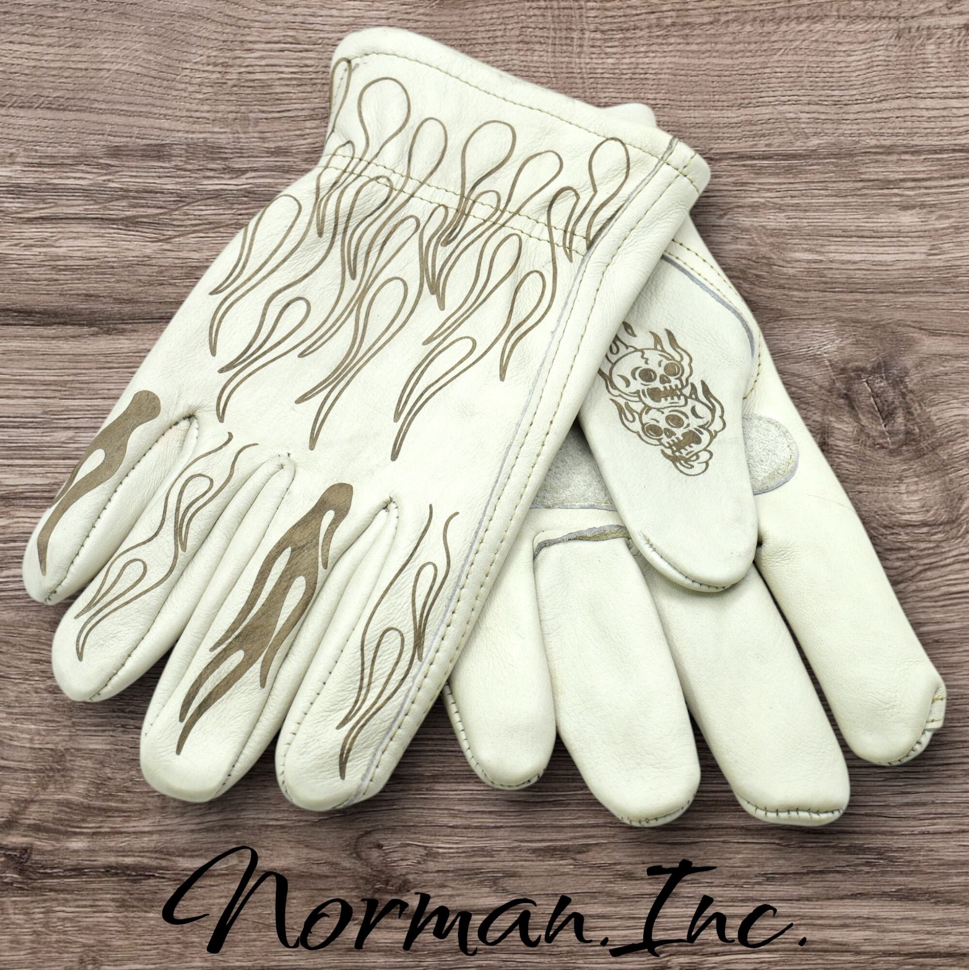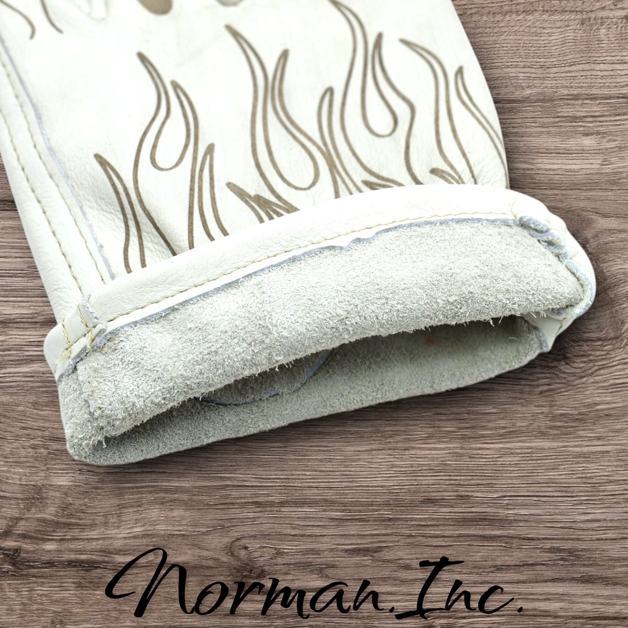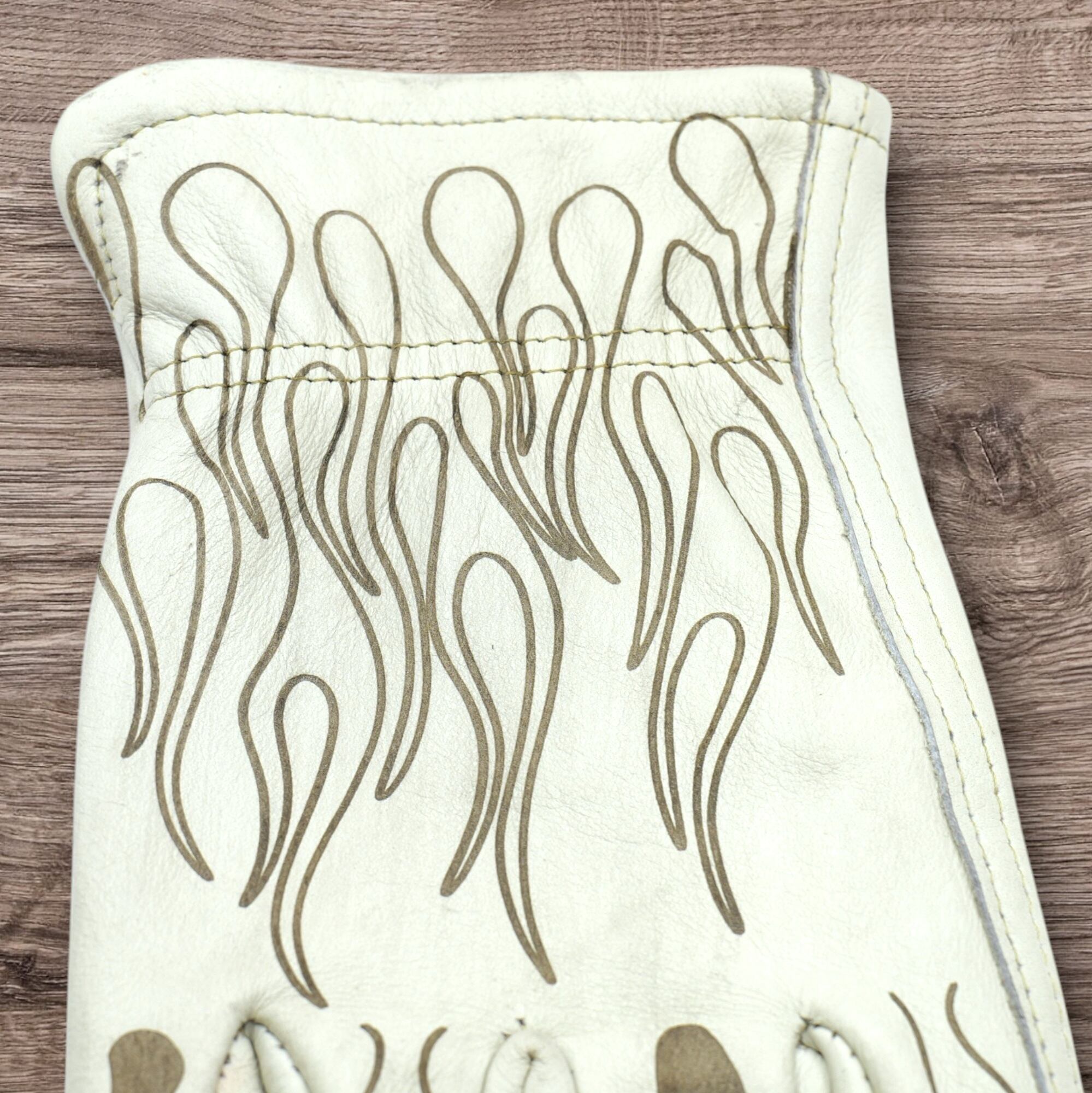 フレイムスデザインを施した、ホワイトの牛革レザーグローブになります。