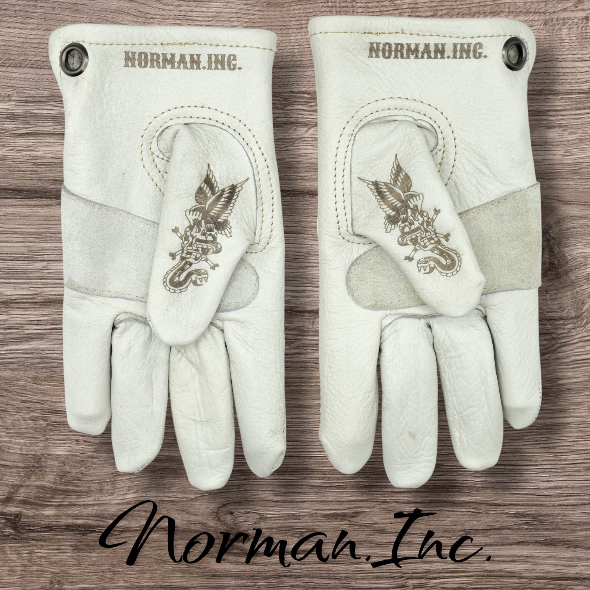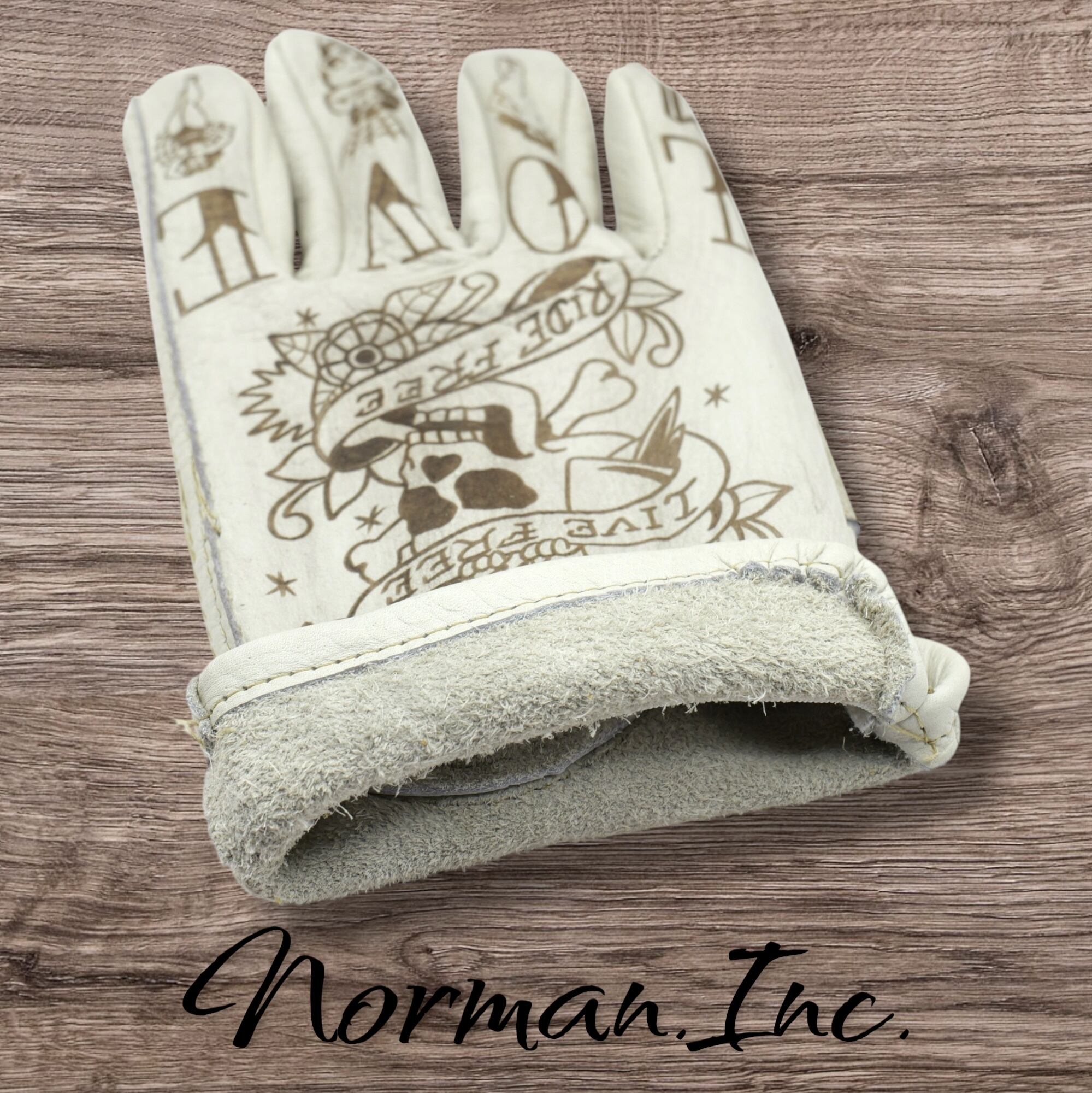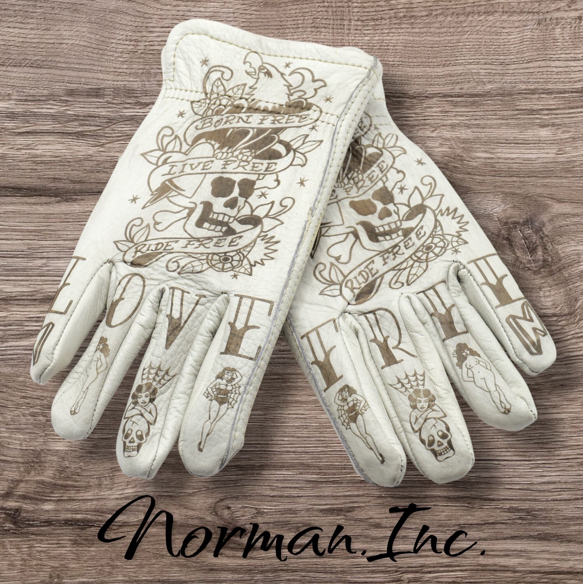 牛革 レザーグローブ ホワイト 白 アメリカン バイク ハーレー カスタム タトゥー 手袋 ツーリング  M,Lサイズ