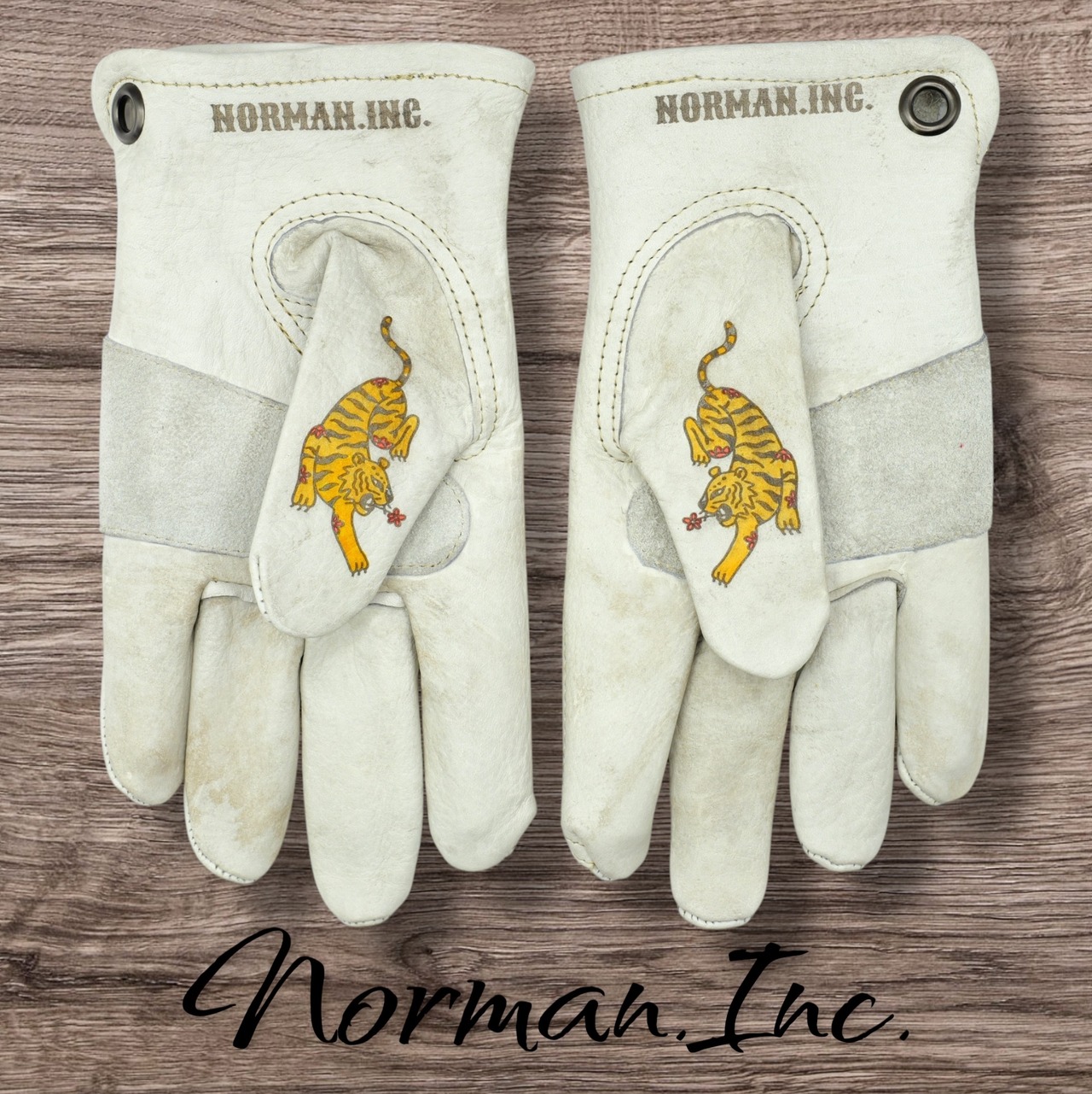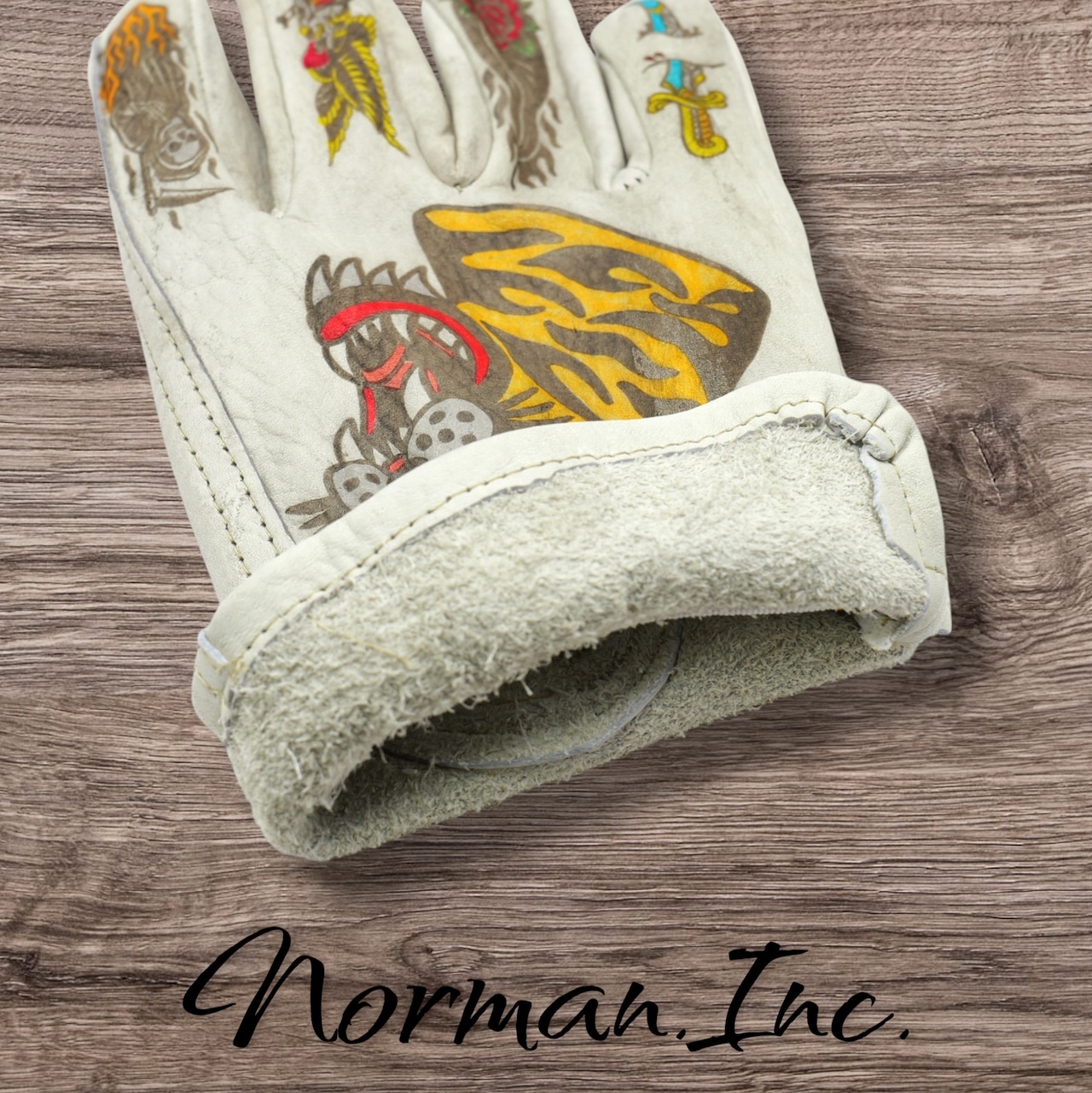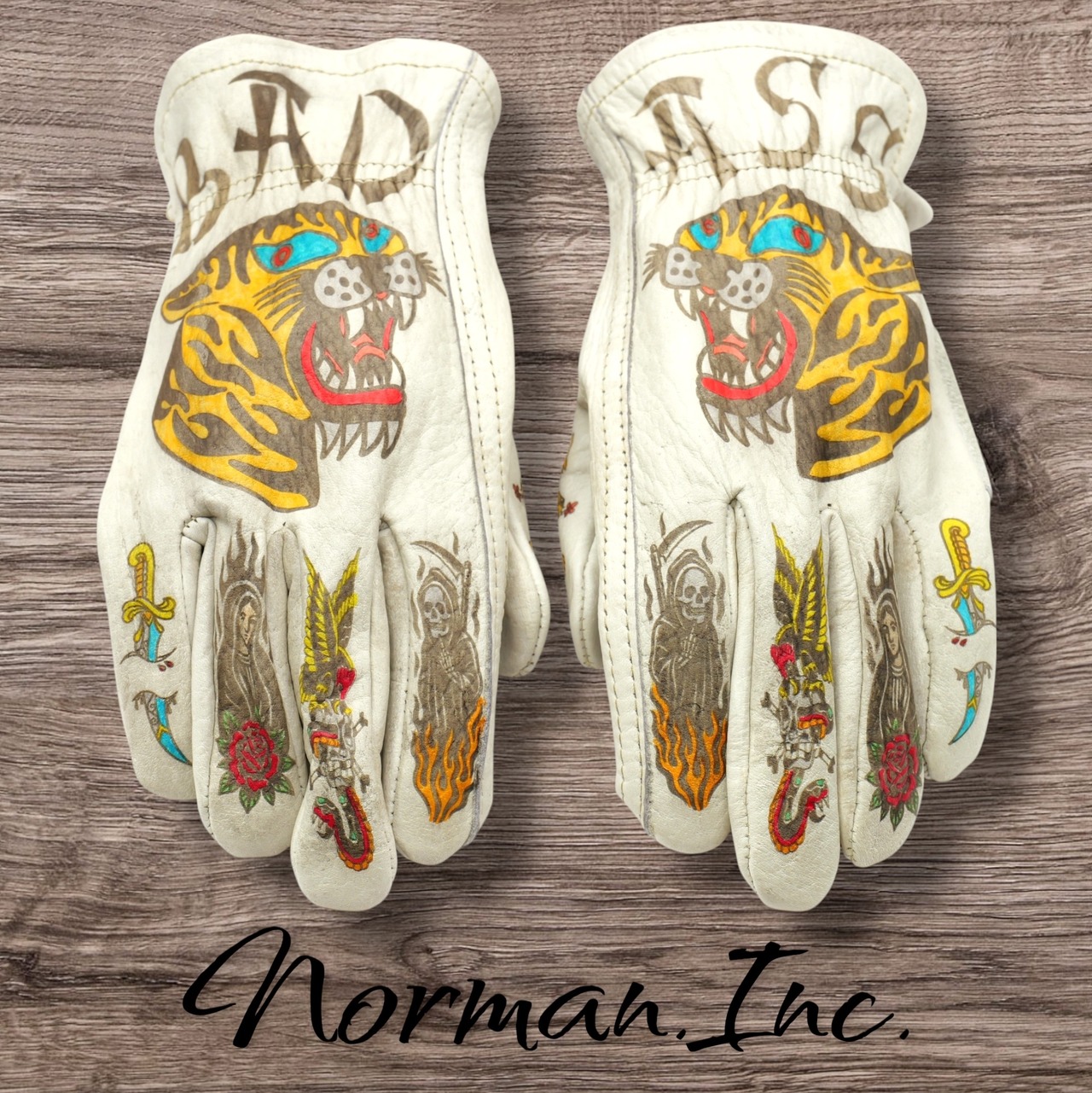 牛革 レザーグローブ ホワイト 白 アメリカン バイク ハーレー カスタム タトゥー 手袋 ツーリング M,Lサイズ