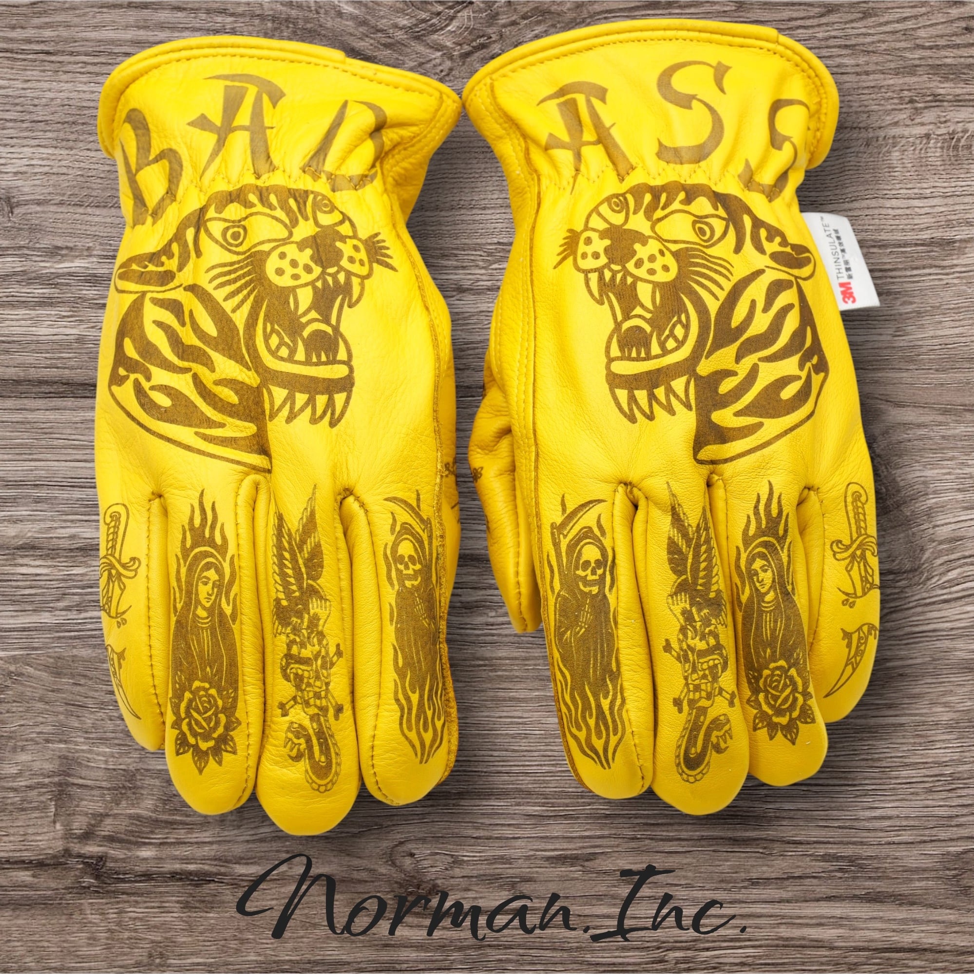 牛革 冬用 保温綿 裏起毛 レザーグローブ アメリカン バイク ハーレー カスタム タトゥー 手袋 キャンプ DIY カスタムグローブ 3M ツーリング M,Lサイズ
