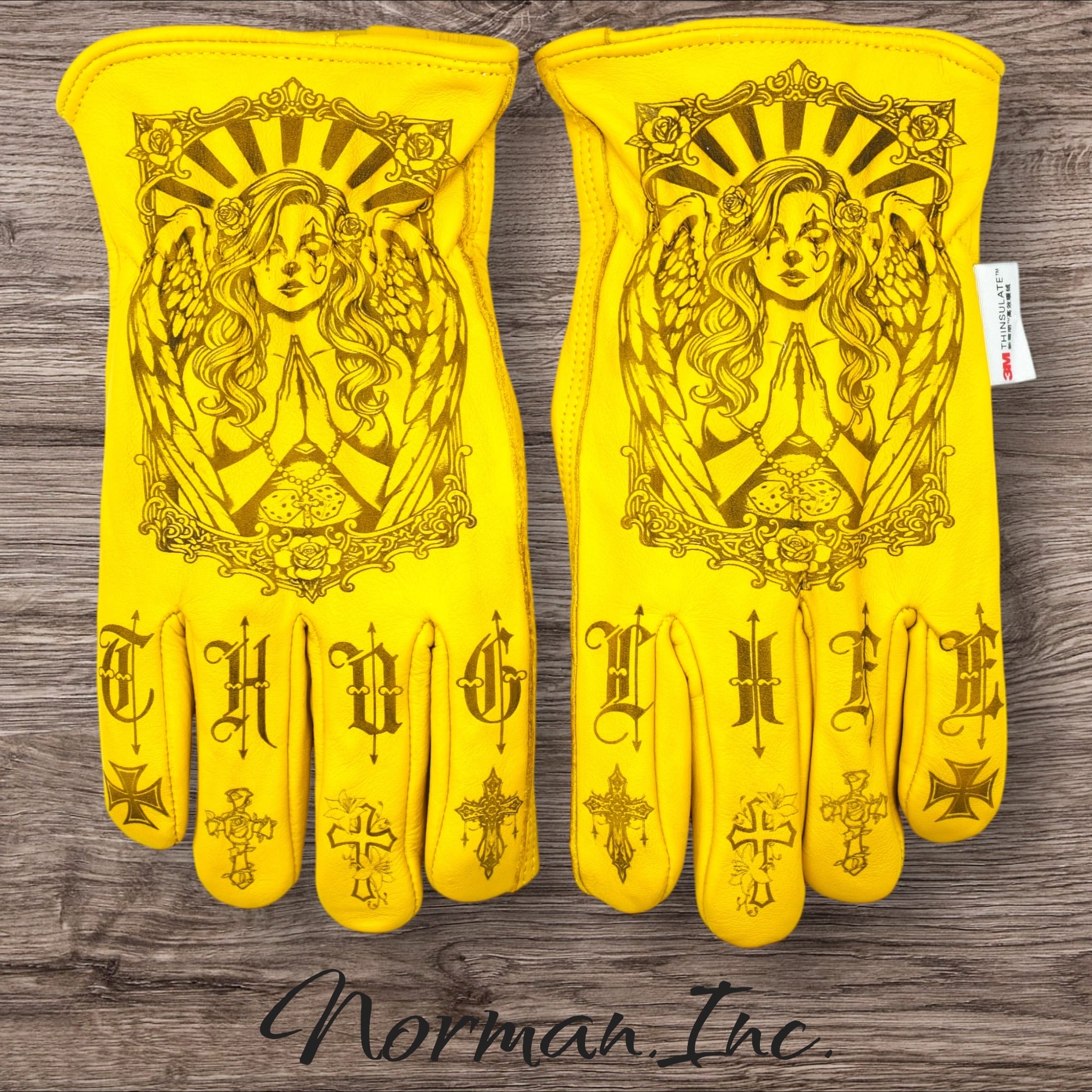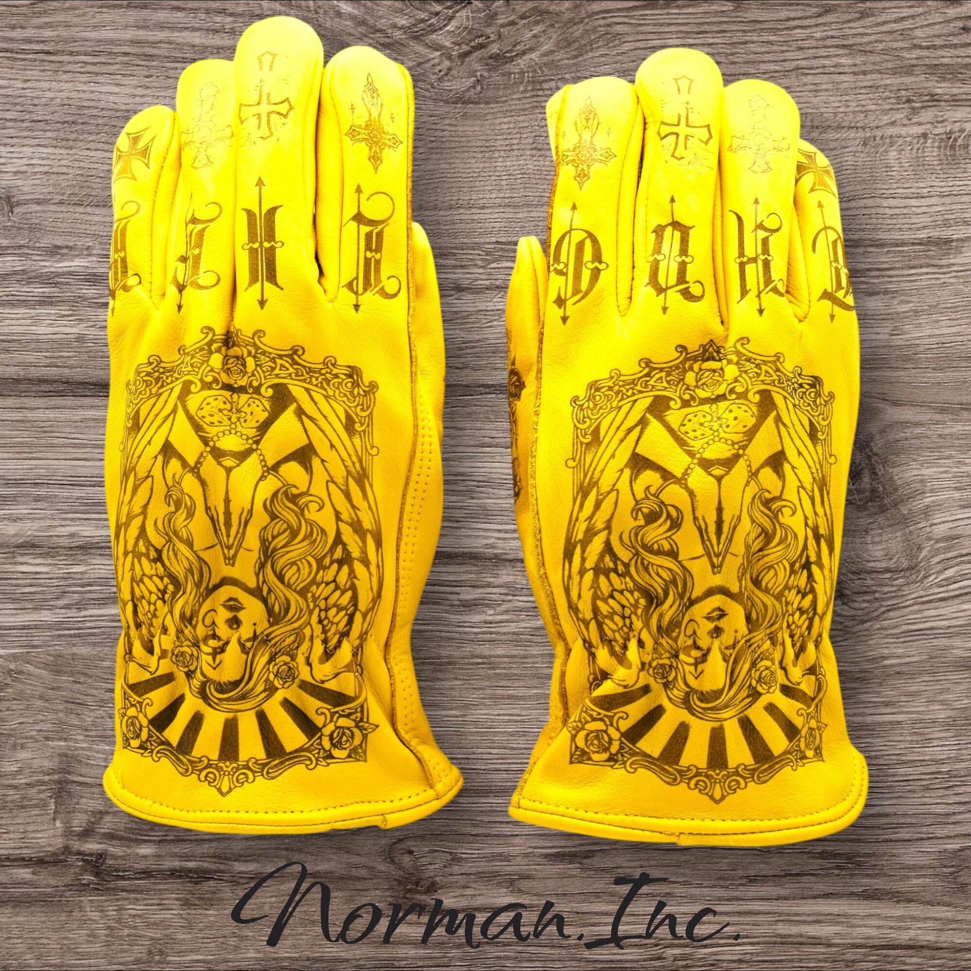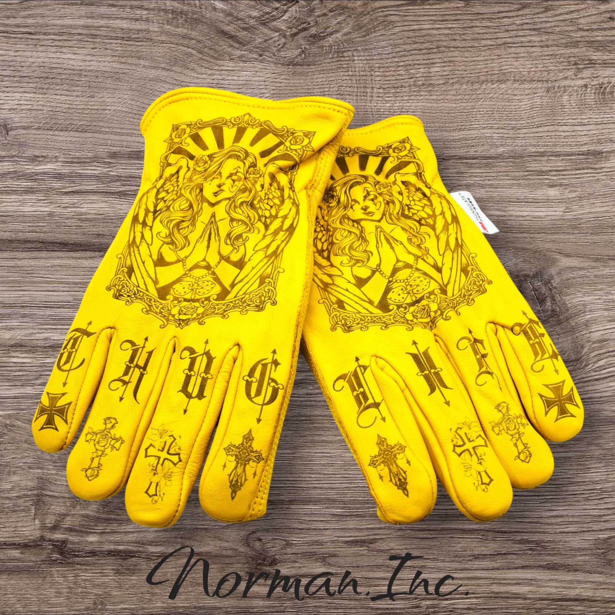 牛革 冬用 保温綿 裏起毛 レザーグローブ アメリカン バイク ハーレー カスタム タトゥー 手袋 キャンプ DIY カスタムグローブ 3M ツーリング M,L,XLサイズ | Norman.inc.
