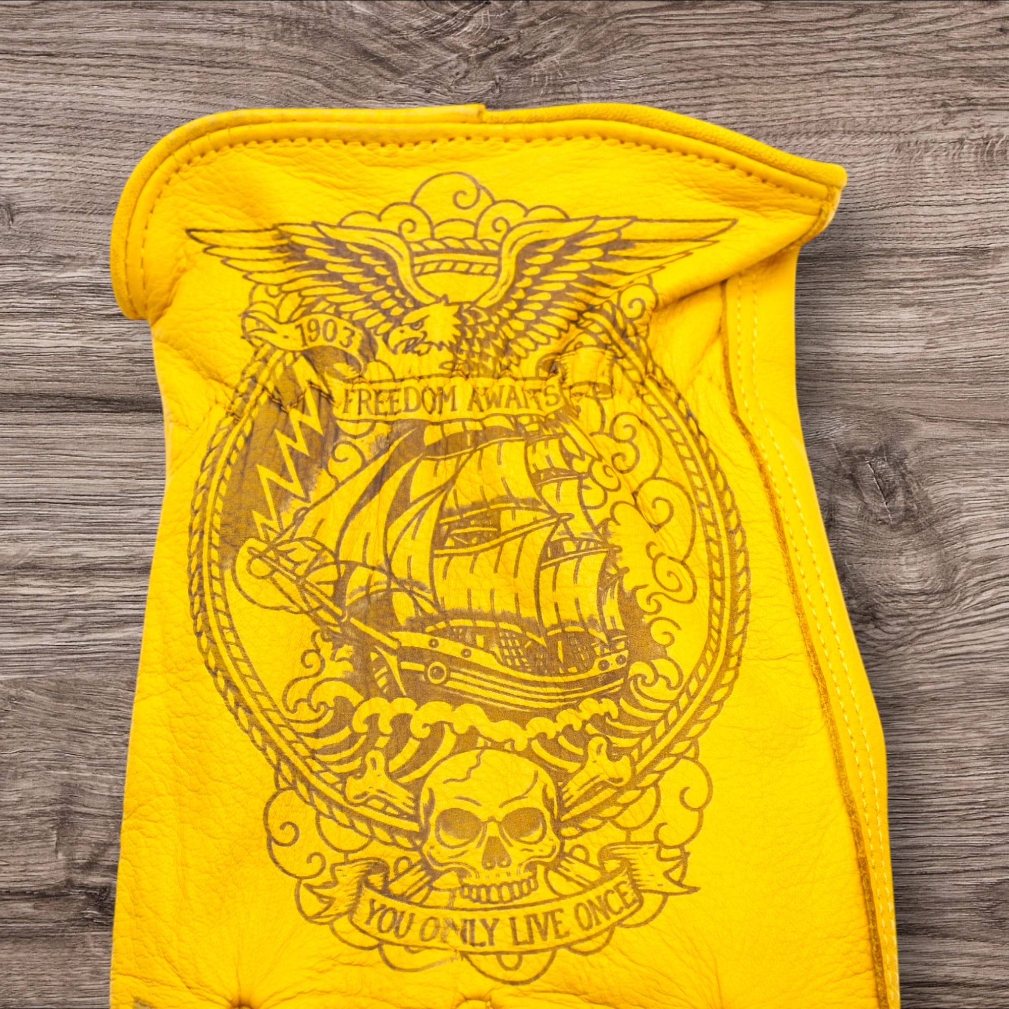 牛革 冬用 保温綿 裏起毛 レザーグローブ アメリカン バイク ハーレー カスタム タトゥー 手袋 キャンプ DIY カスタムグローブ 3M ツーリング M,L,XLサイズ