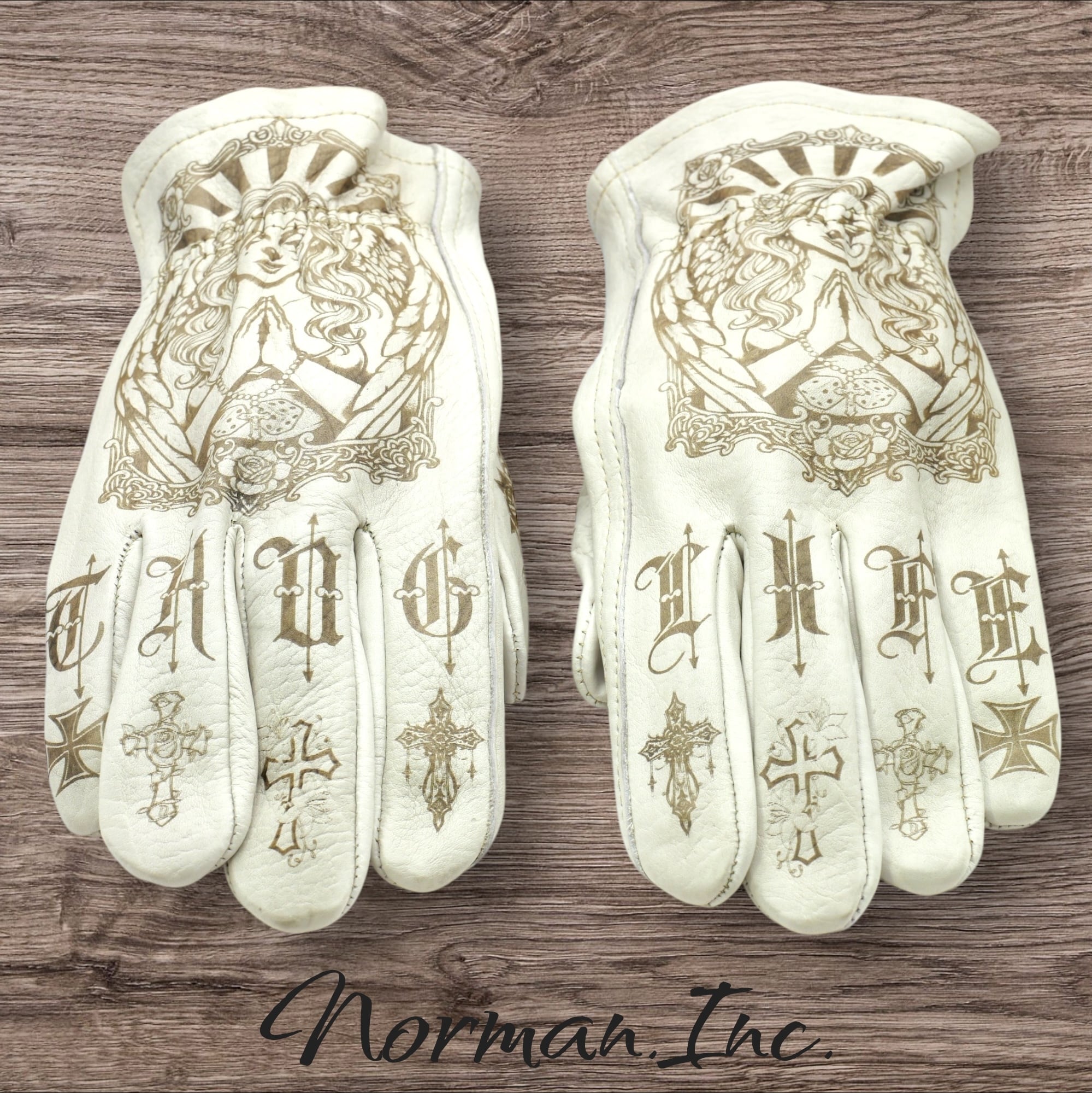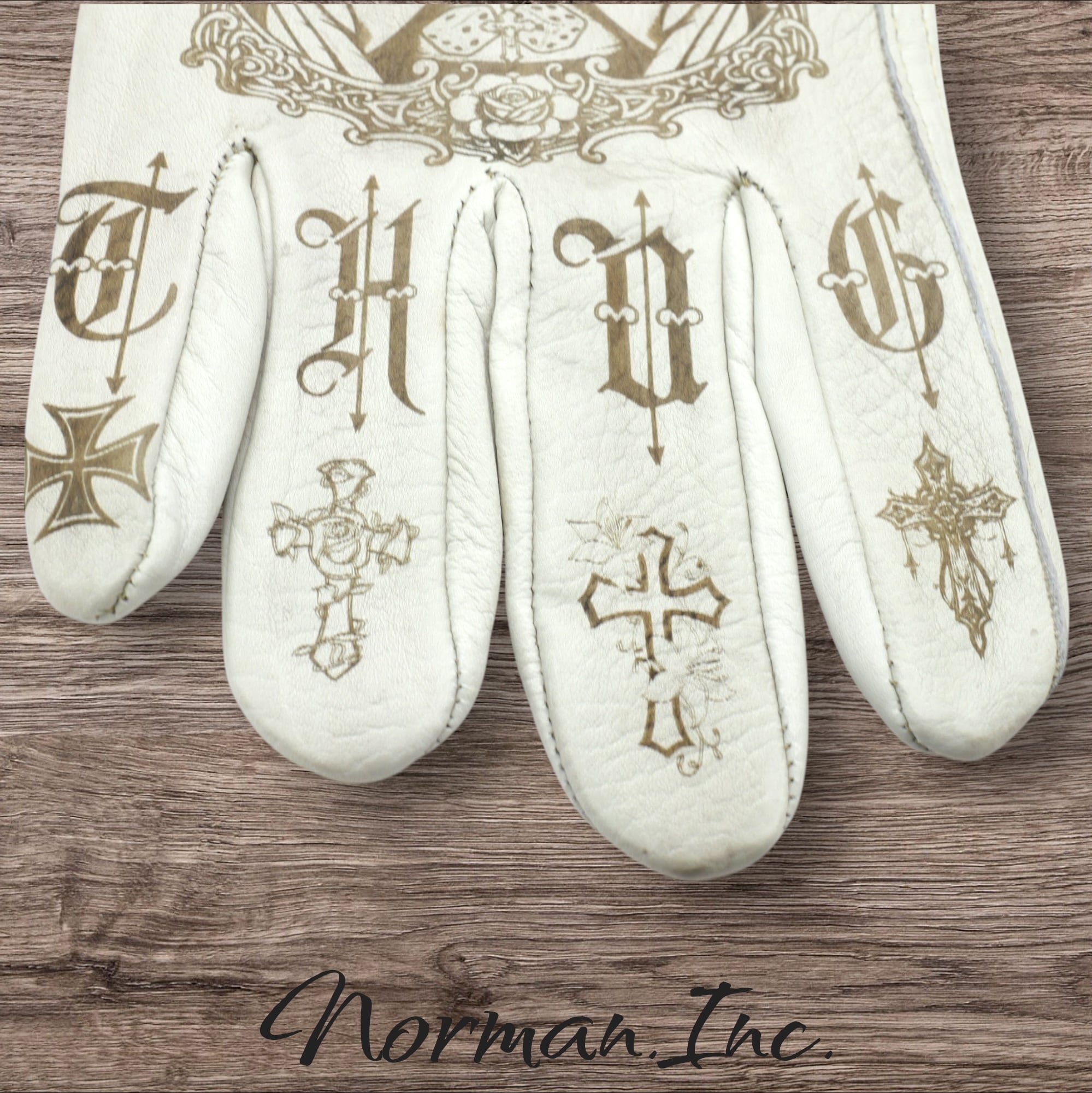 牛革 レザーグローブ ホワイト 白 アメリカン バイク ハーレー カスタム タトゥー 手袋 ツーリング M,Lサイズ