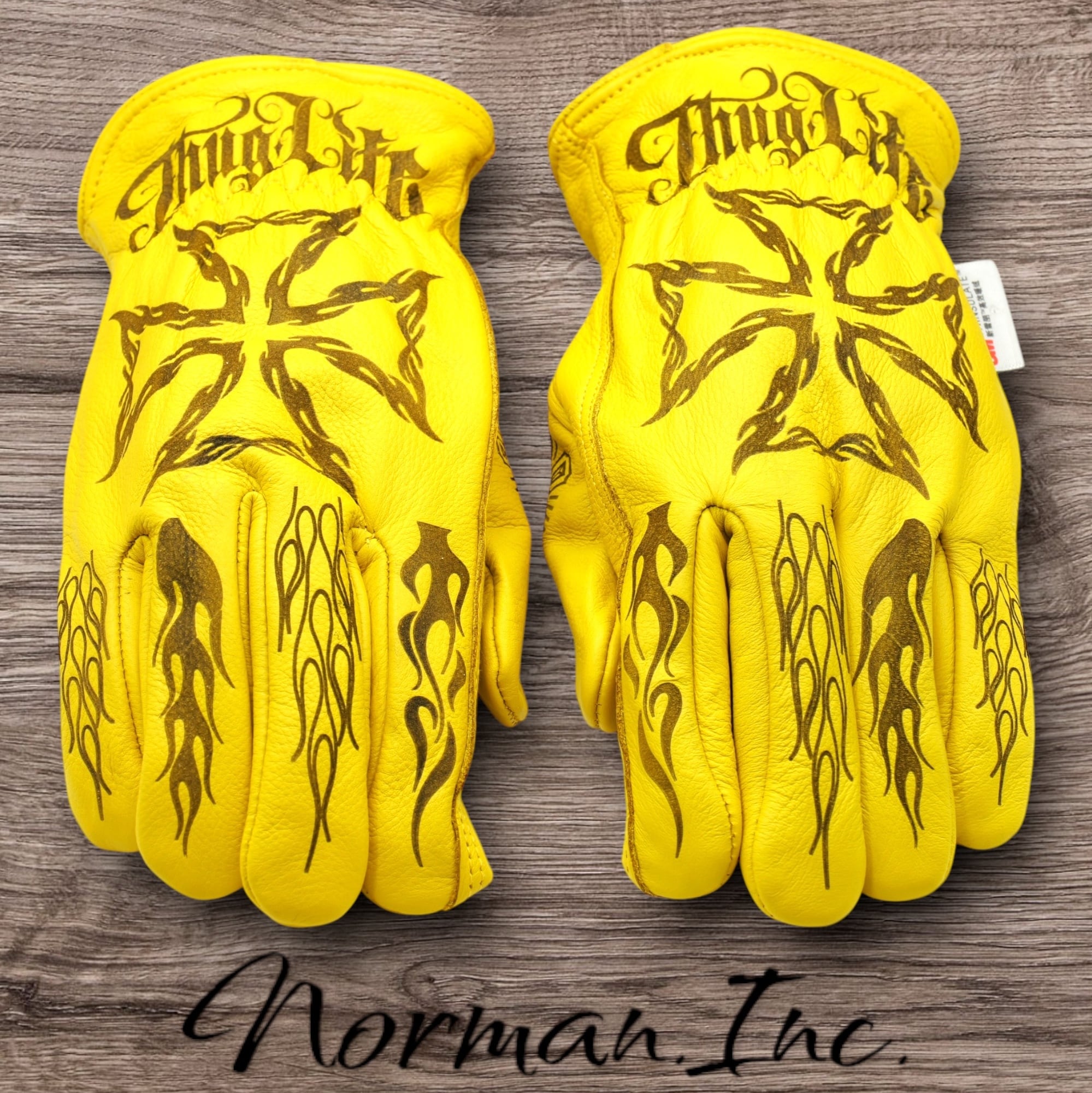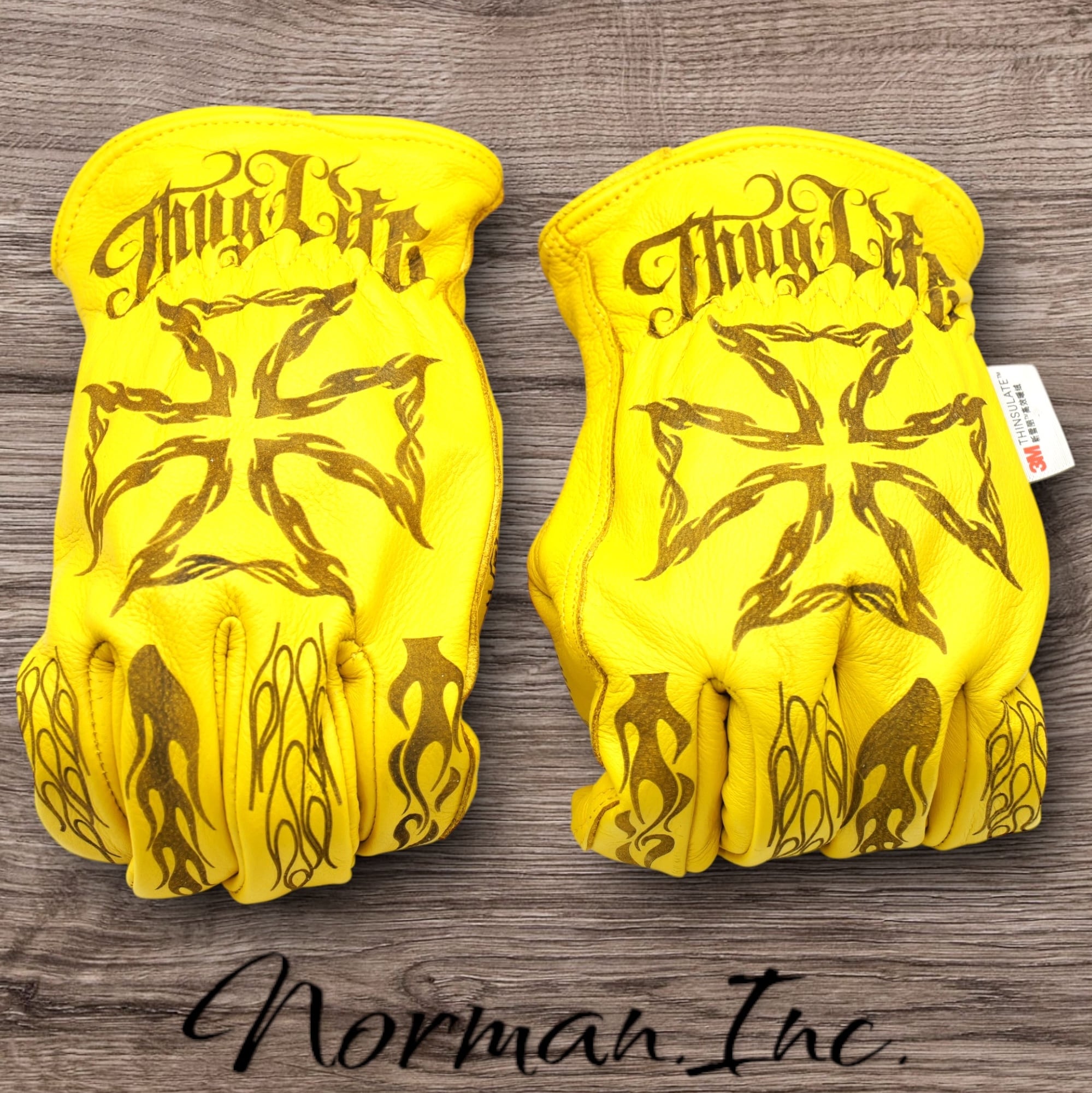 牛革 冬用 保温綿 裏起毛 レザーグローブ アメリカン バイク ハーレー カスタム タトゥー 手袋 キャンプ DIY カスタムグローブ 3M ツーリング M,L,XLサイズ