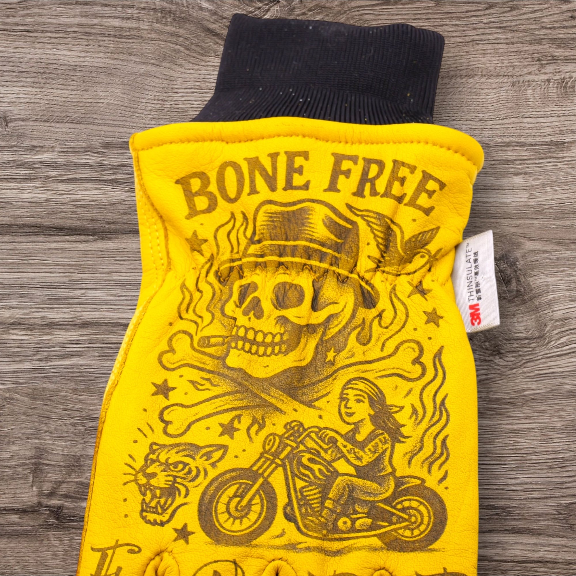 牛革 冬用 保温綿 裏起毛 レザーグローブ リブ付き アメリカン バイク ハーレー カスタム タトゥー 手袋 キャンプ DIY カスタムグローブ 3M ツーリング M,L,XLサイズ