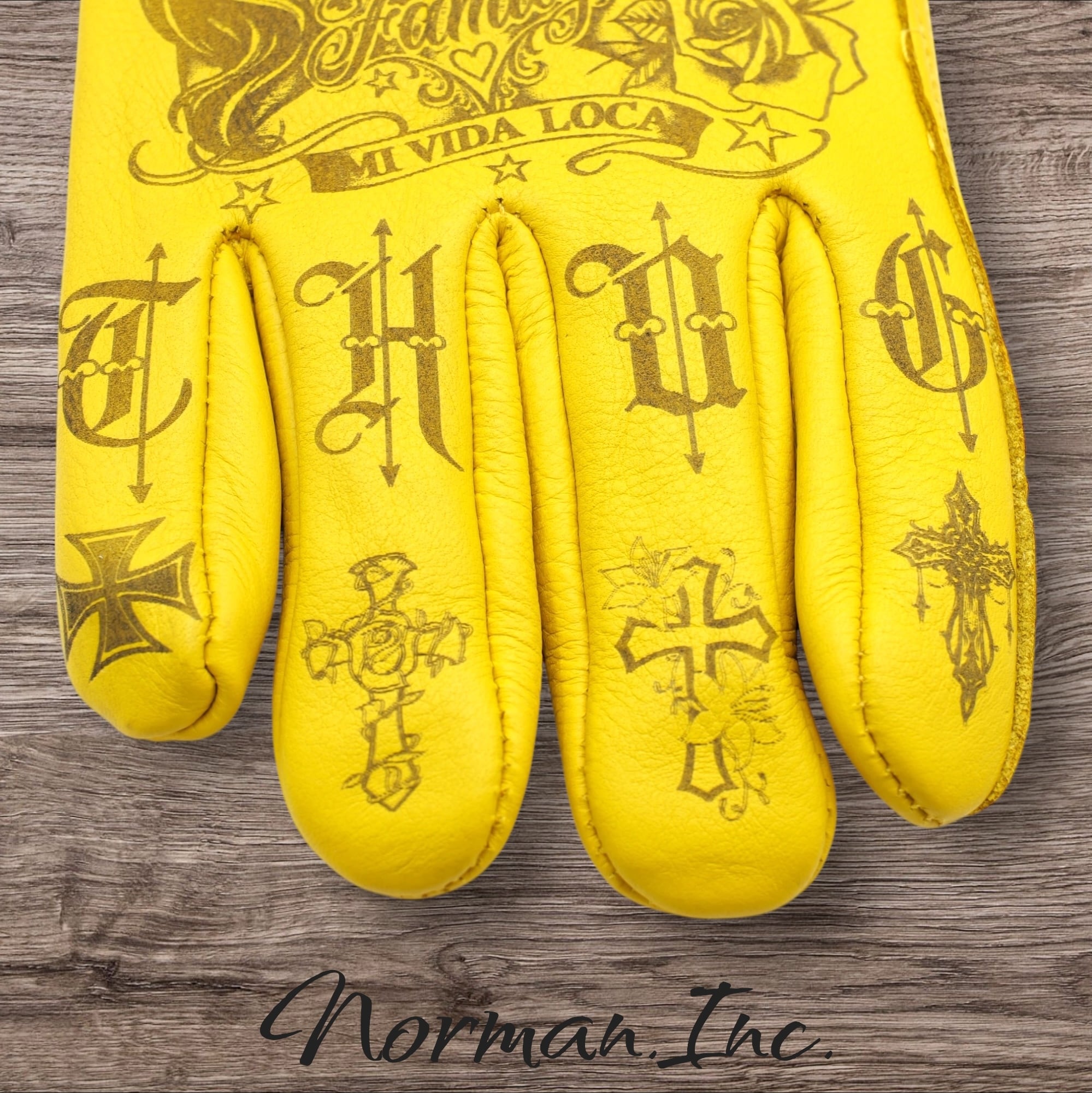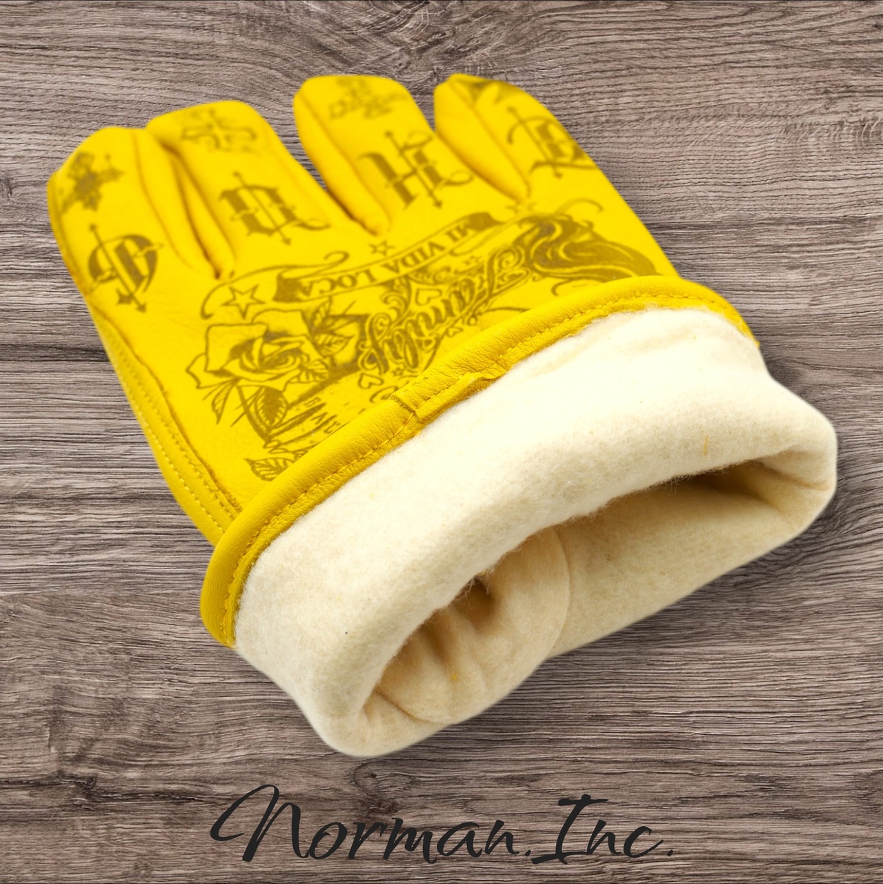 牛革 冬用 保温綿 裏起毛 レザーグローブ アメリカン バイク ハーレー カスタム タトゥー 手袋 キャンプ DIY カスタムグローブ 3M ツーリング M,L,XLサイズ