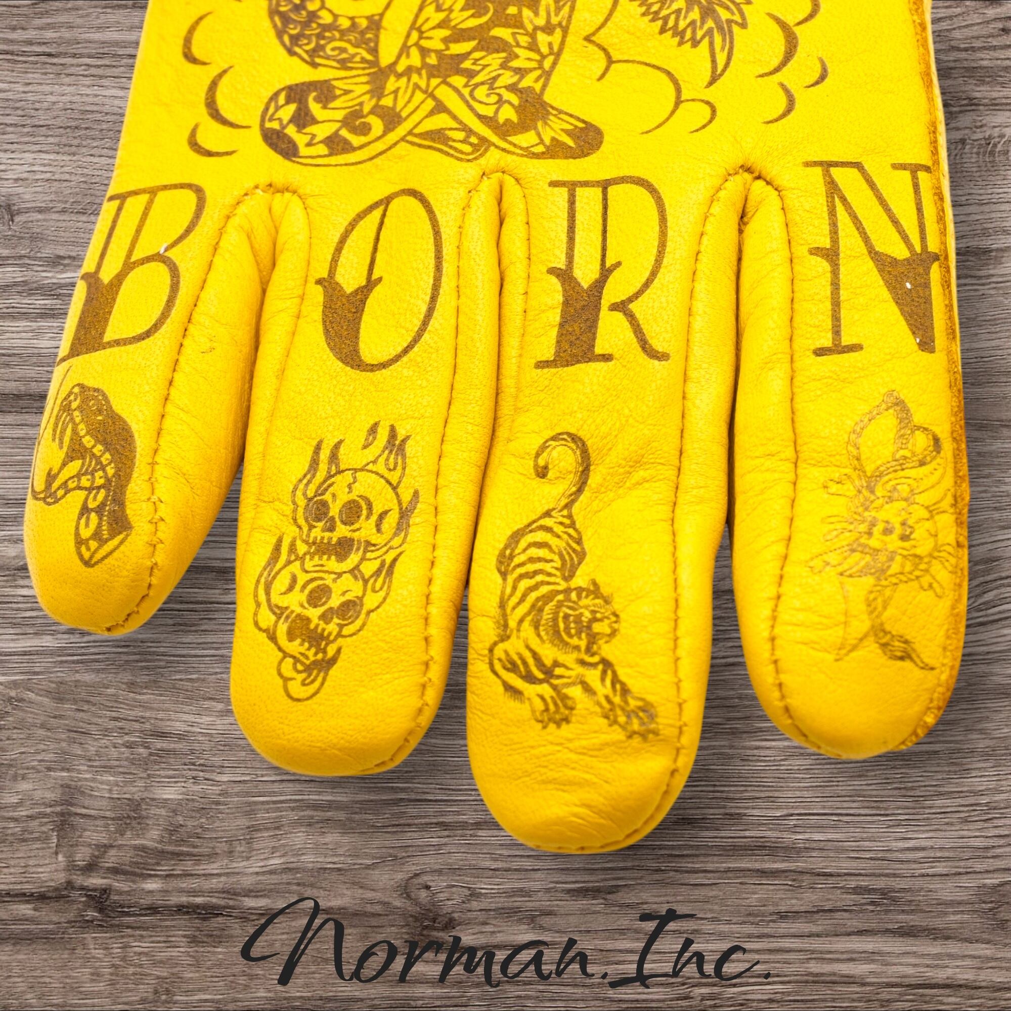 牛革 冬用 保温綿 裏起毛 レザーグローブ アメリカン バイク ハーレー カスタム タトゥー 手袋 キャンプ DIY カスタムグローブ 3M ツーリング M,L,XLサイズ