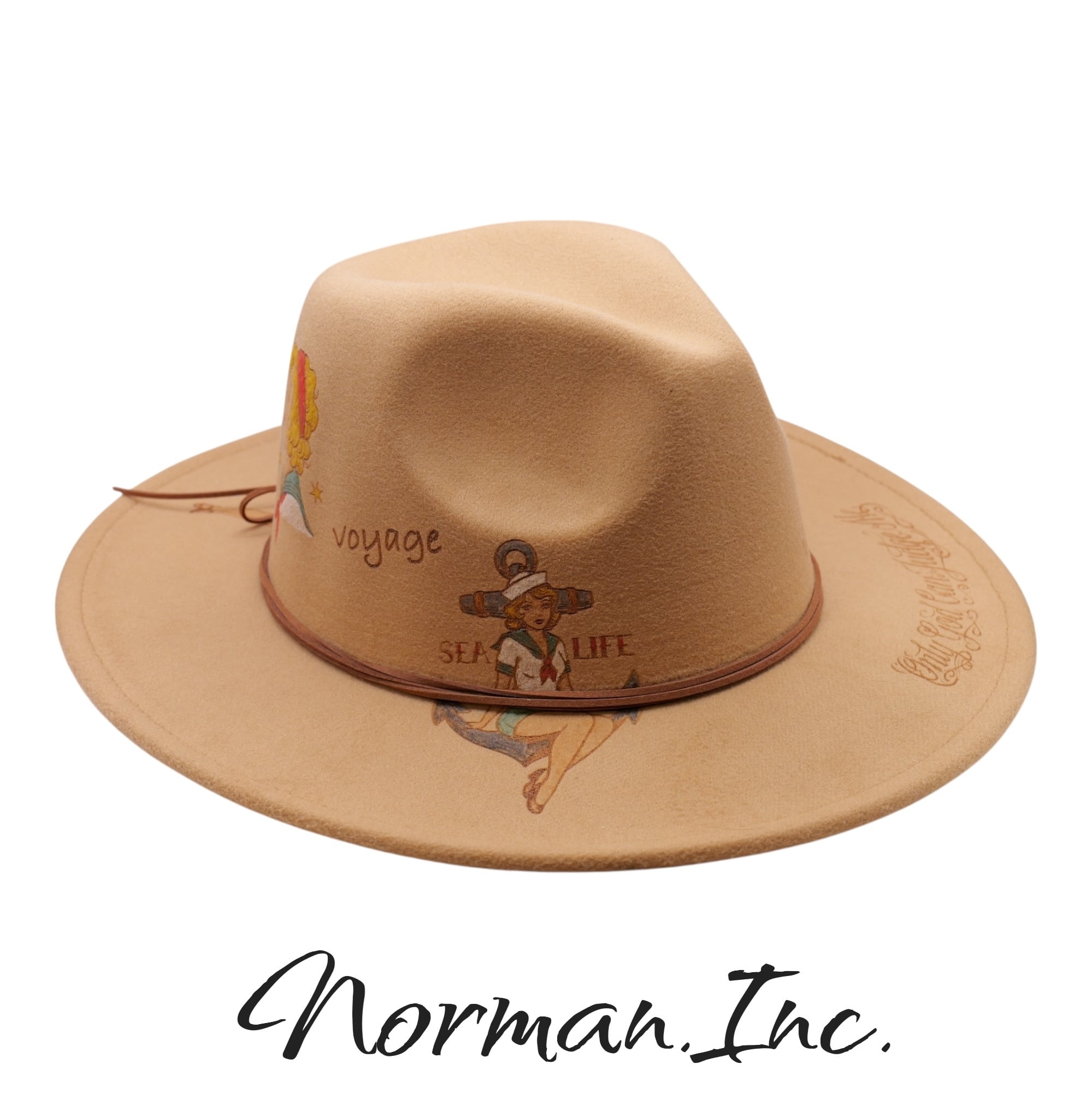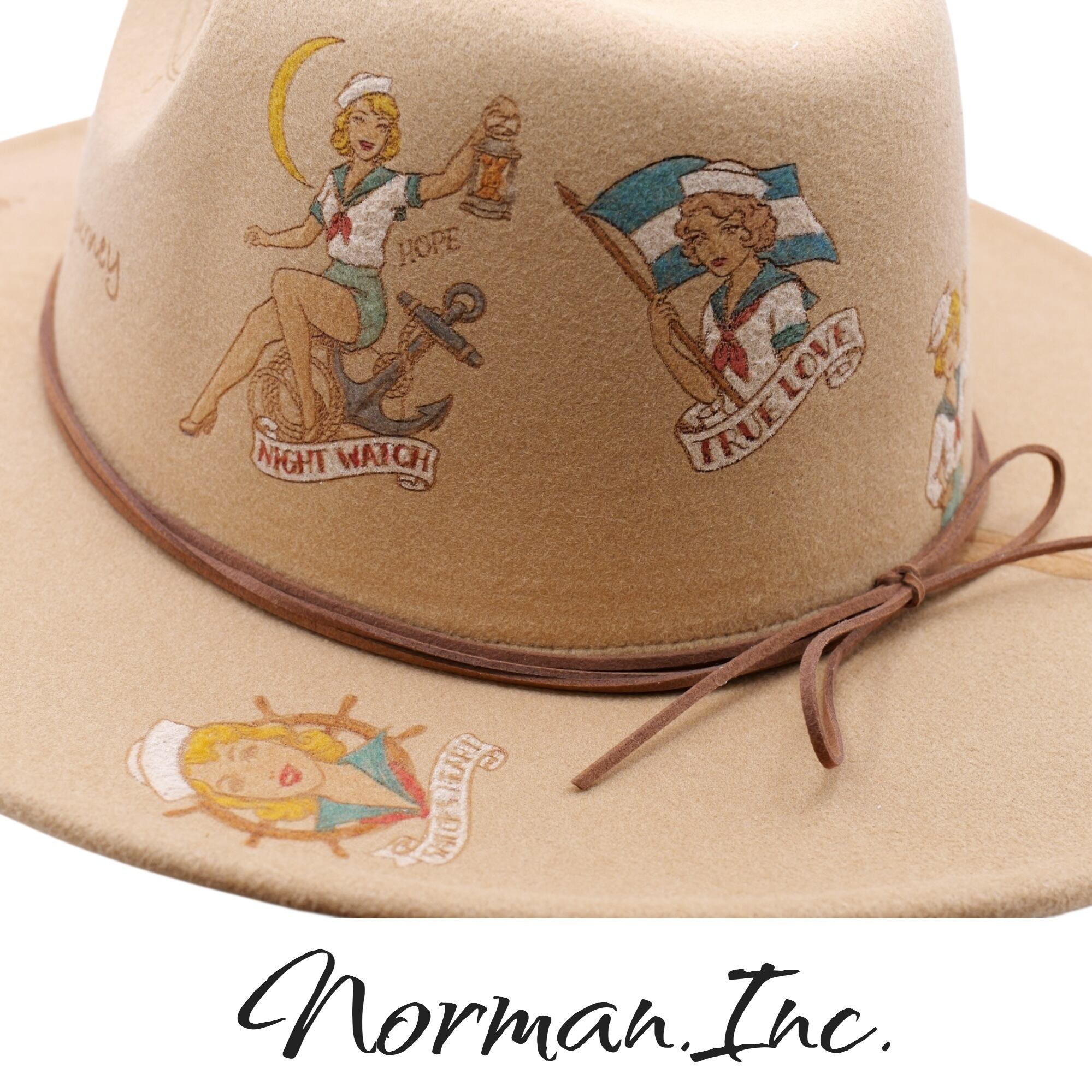 中折れハット ソフトハット メンズ 紳士 ハット 帽子 タトゥー アメカジ ストカジ キャメル Lサイズ(調整可能)
