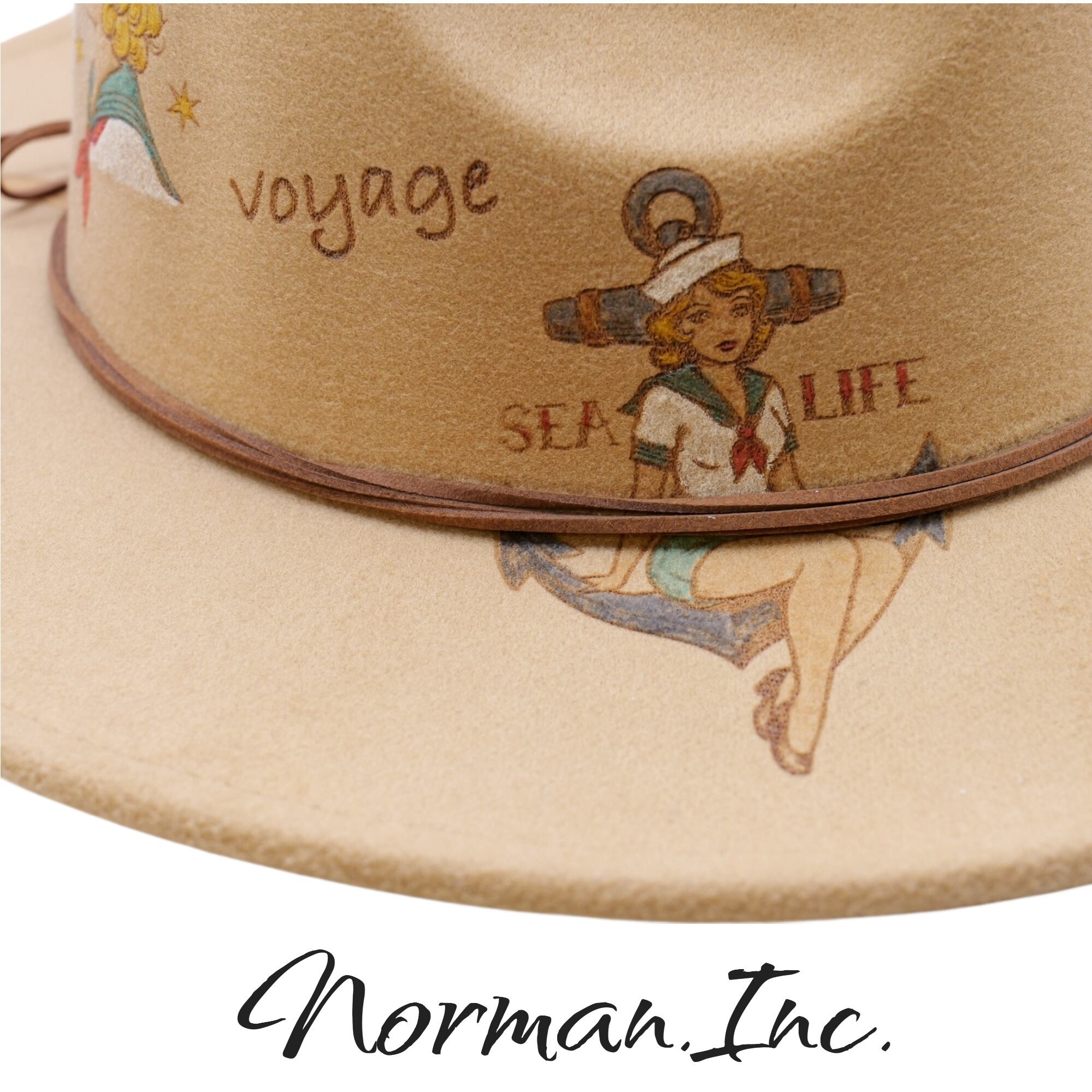 他にはないデザインが施された一点物の中折れハットになります。アメカジスタイルをワンランク上のおしゃれに仕上げる、存在感あふれる逸品です。個性を引き立てるデザインで、周囲の視線を集めること間違いなし!