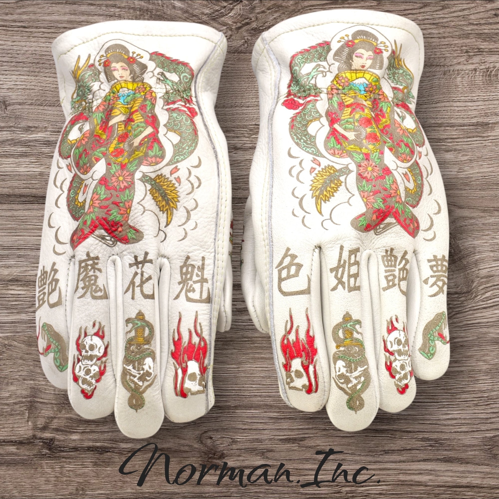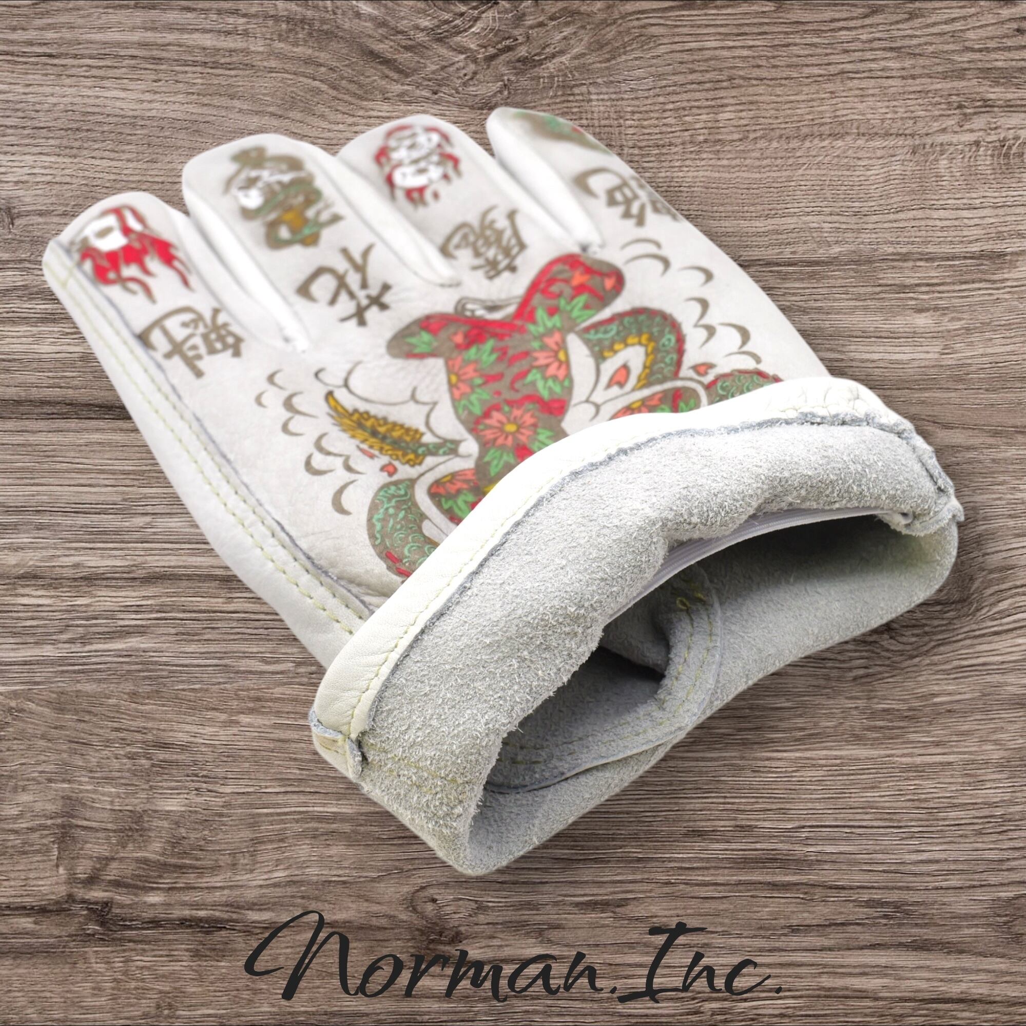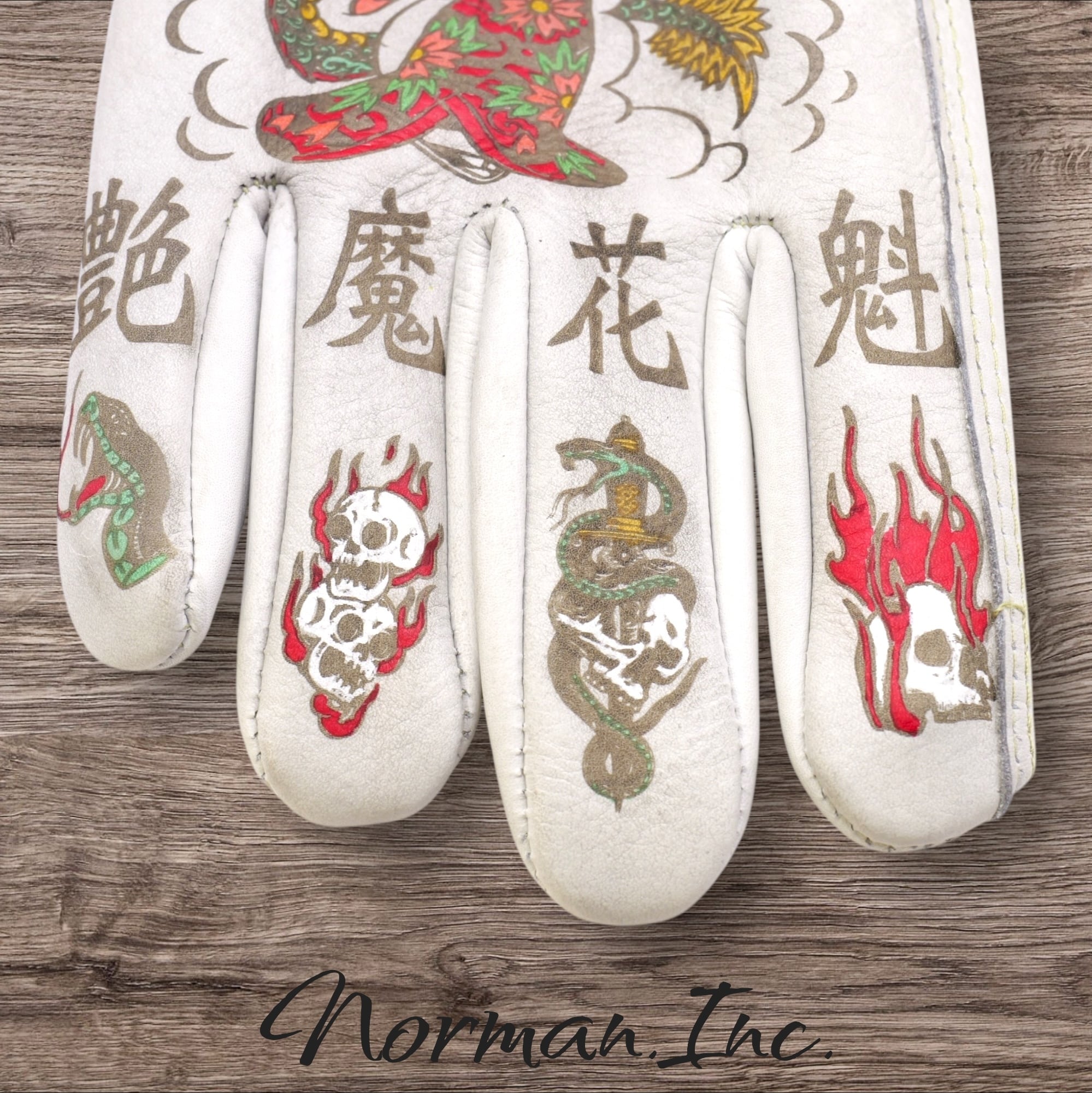 牛革 レザーグローブ ホワイト 白 アメリカン バイク ハーレー カスタム タトゥー 手袋 ツーリング M,Lサイズ