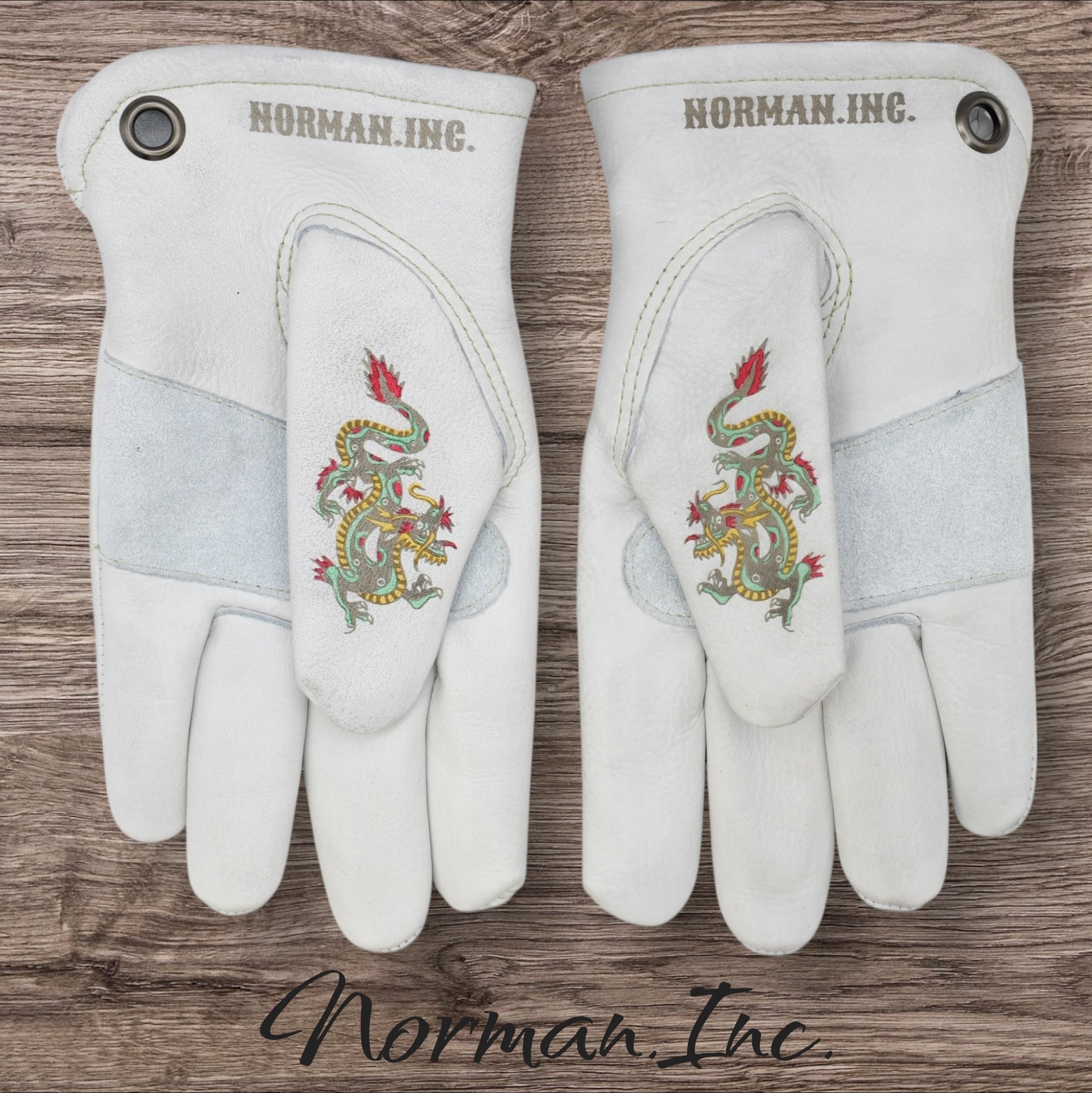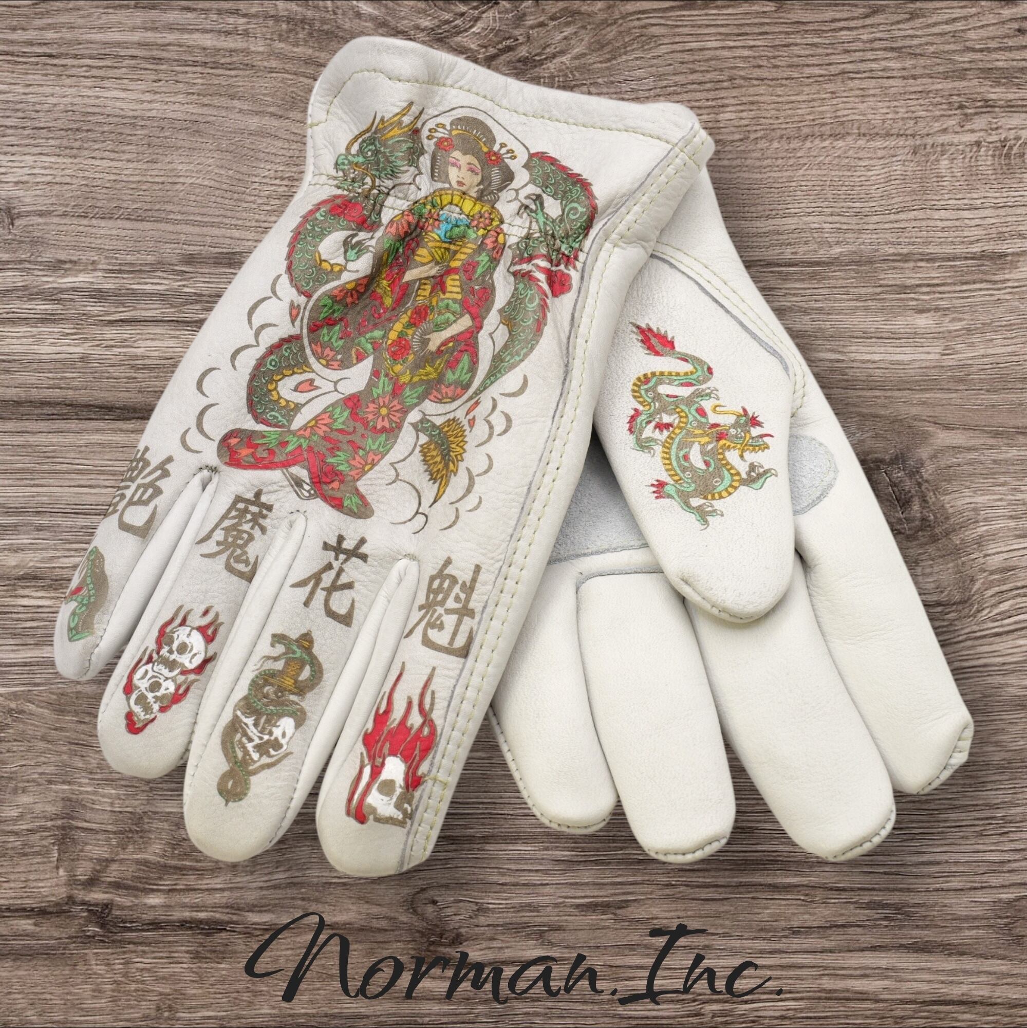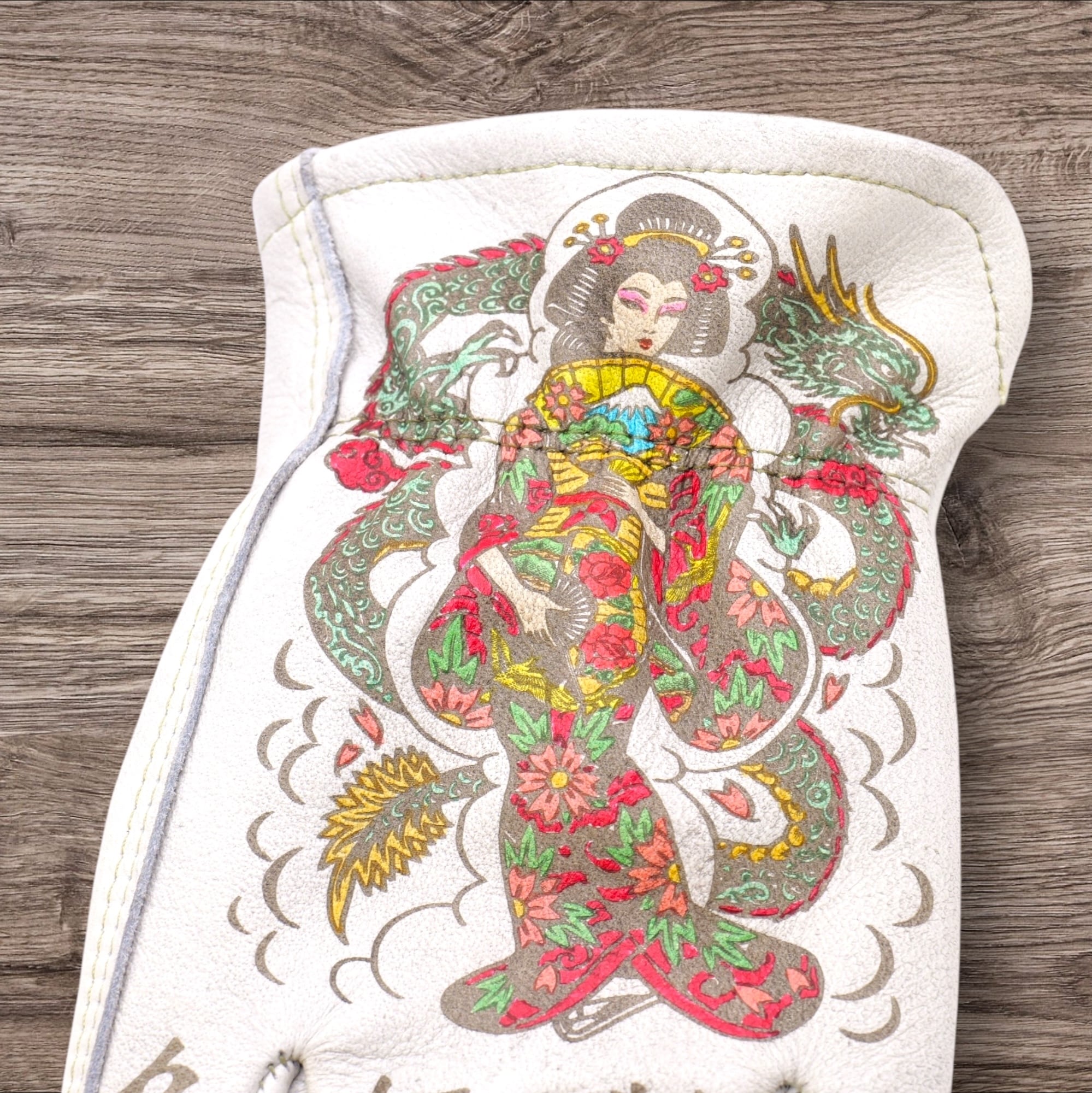 牛革 レザーグローブ ホワイト 白 アメリカン バイク ハーレー カスタム タトゥー 手袋 ツーリング M,Lサイズ