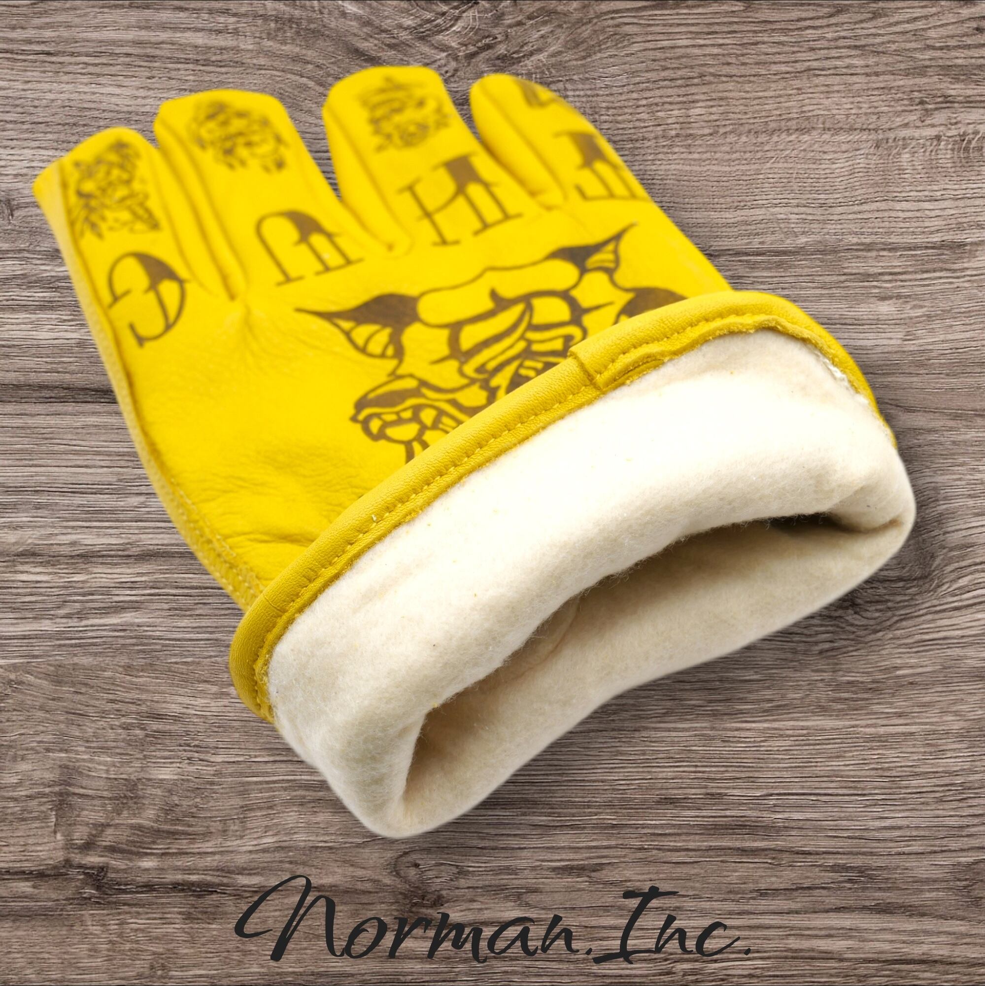 牛革 冬用 保温綿 裏起毛 レザーグローブ アメリカン バイク ハーレー カスタム タトゥー 手袋 キャンプ DIY カスタムグローブ 3M ツーリング M,L,XLサイズ
