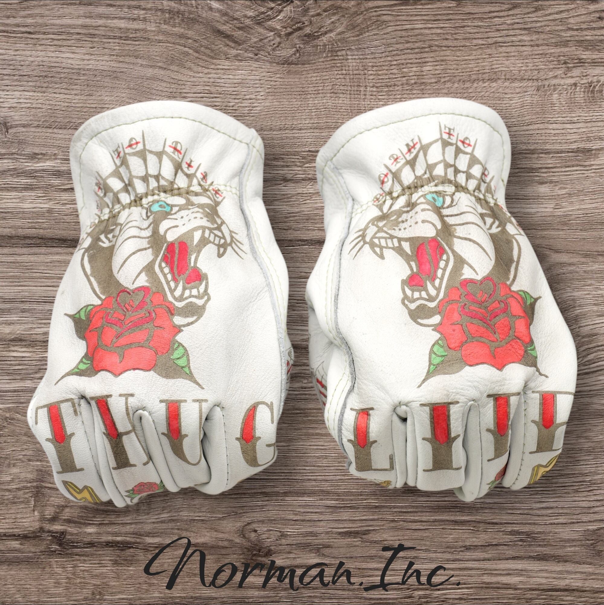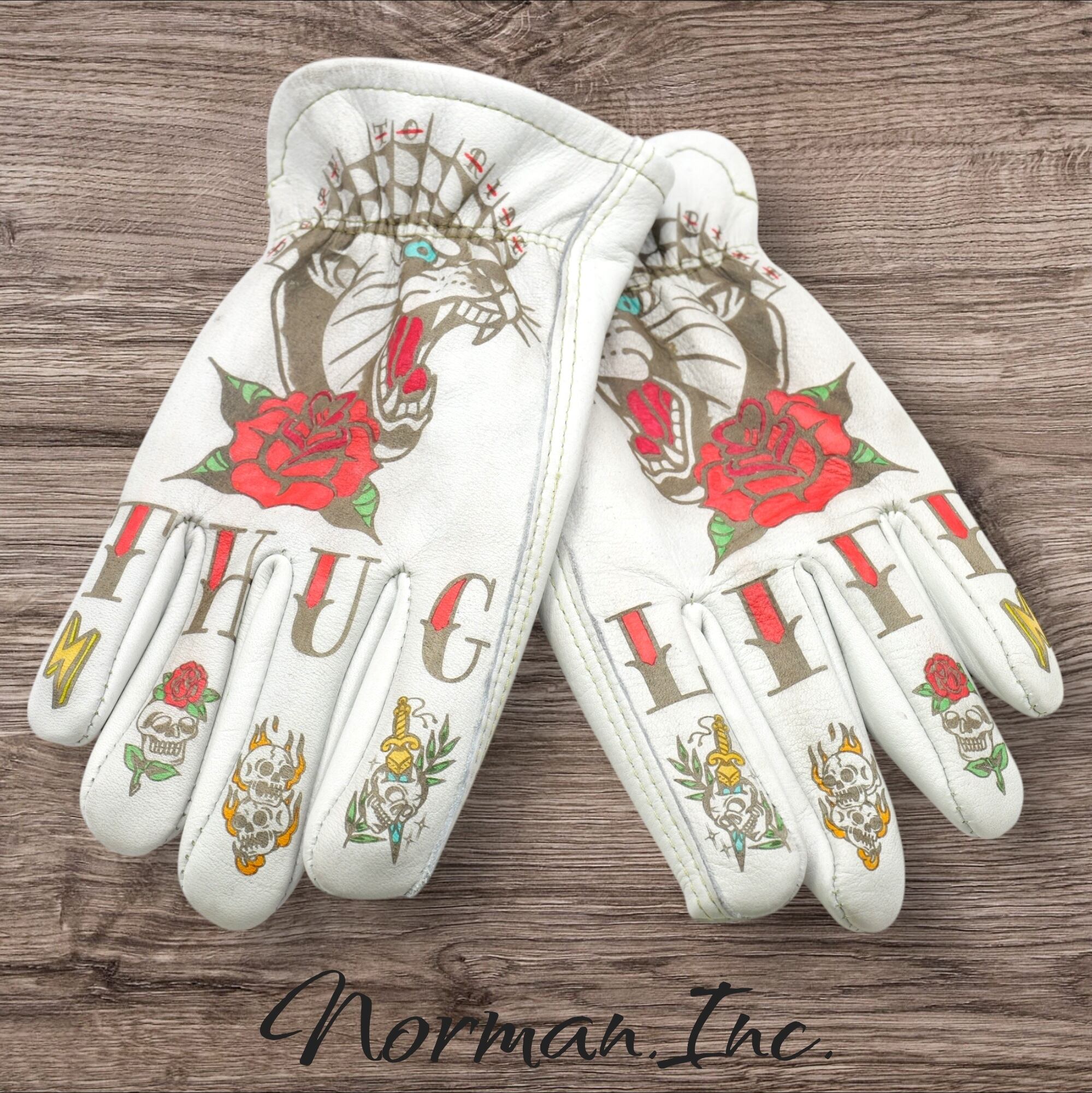 牛革 レザーグローブ ホワイト 白 アメリカン バイク ハーレー カスタム タトゥー 手袋 ツーリング M,Lサイズ