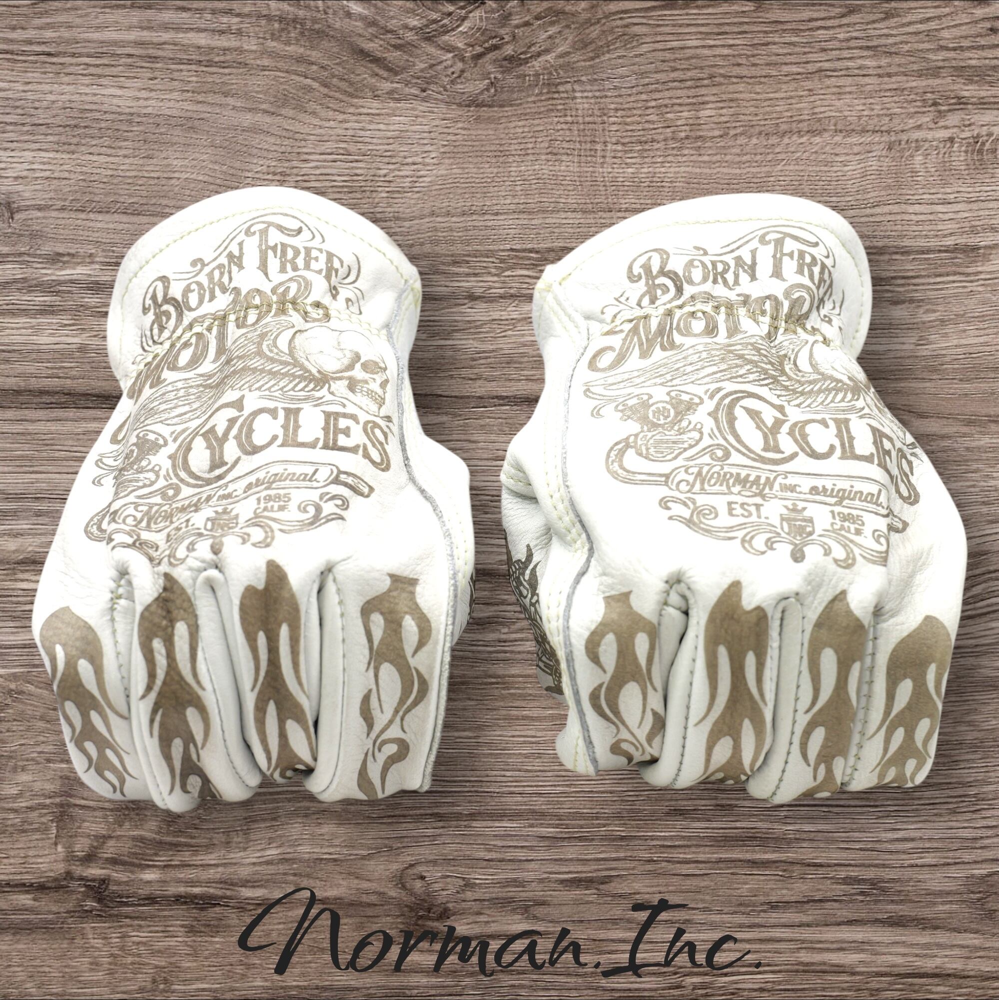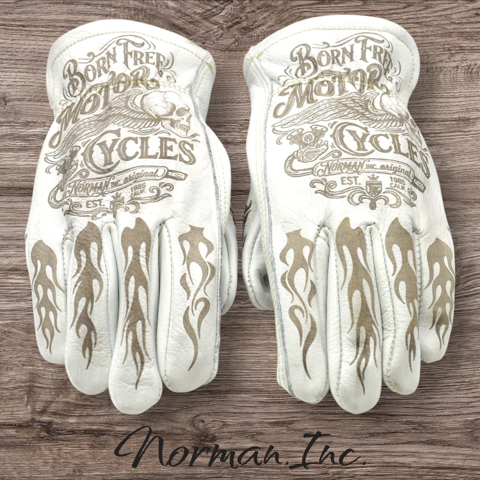 牛革 レザーグローブ ホワイト 白 アメリカン バイク ハーレー カスタム タトゥー 手袋 ツーリング M,Lサイズ