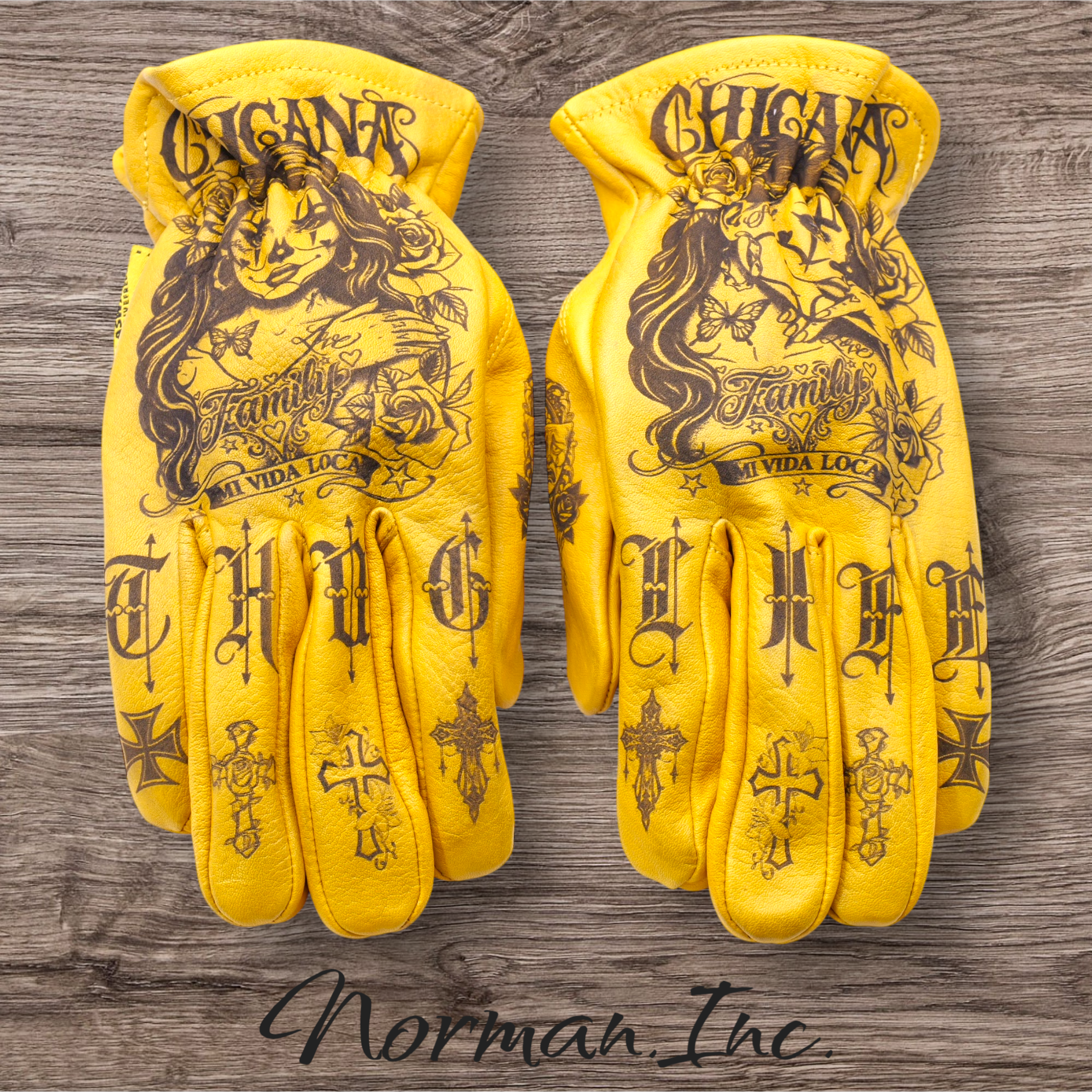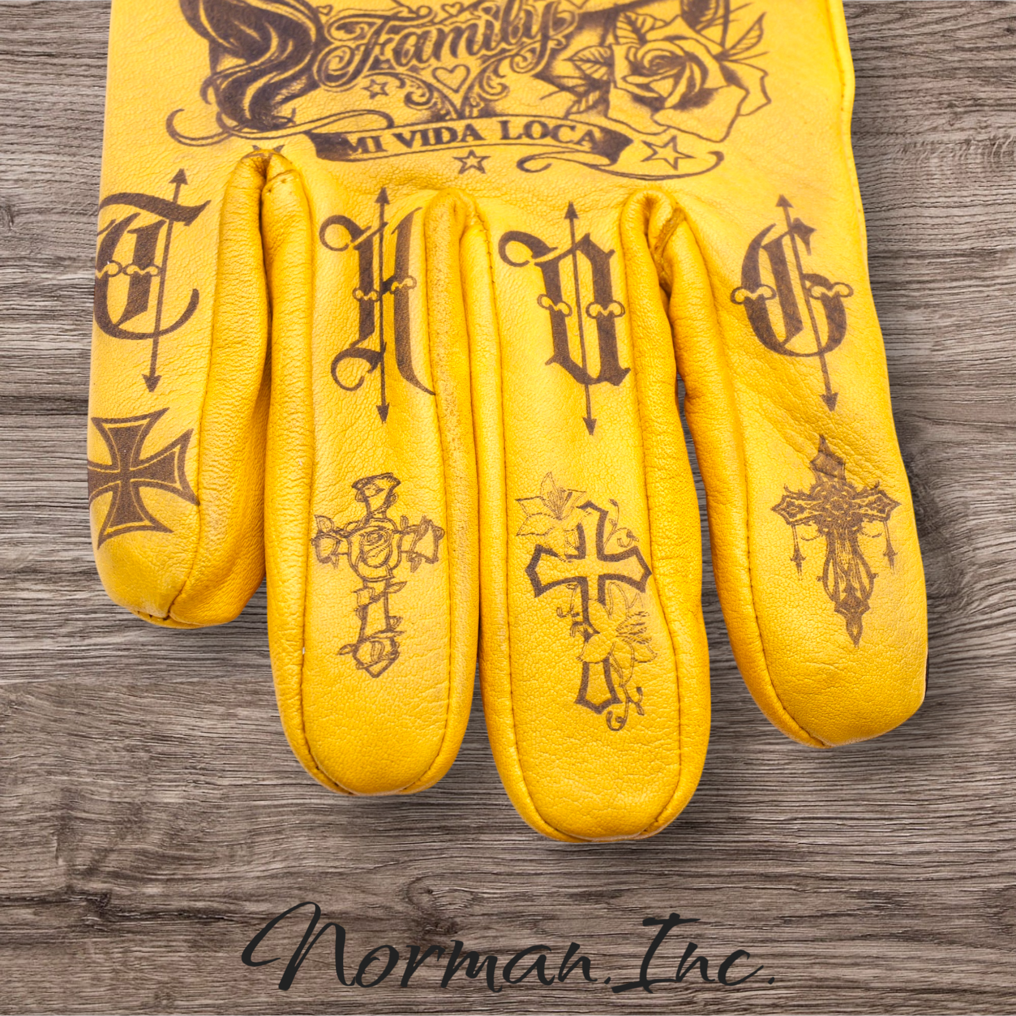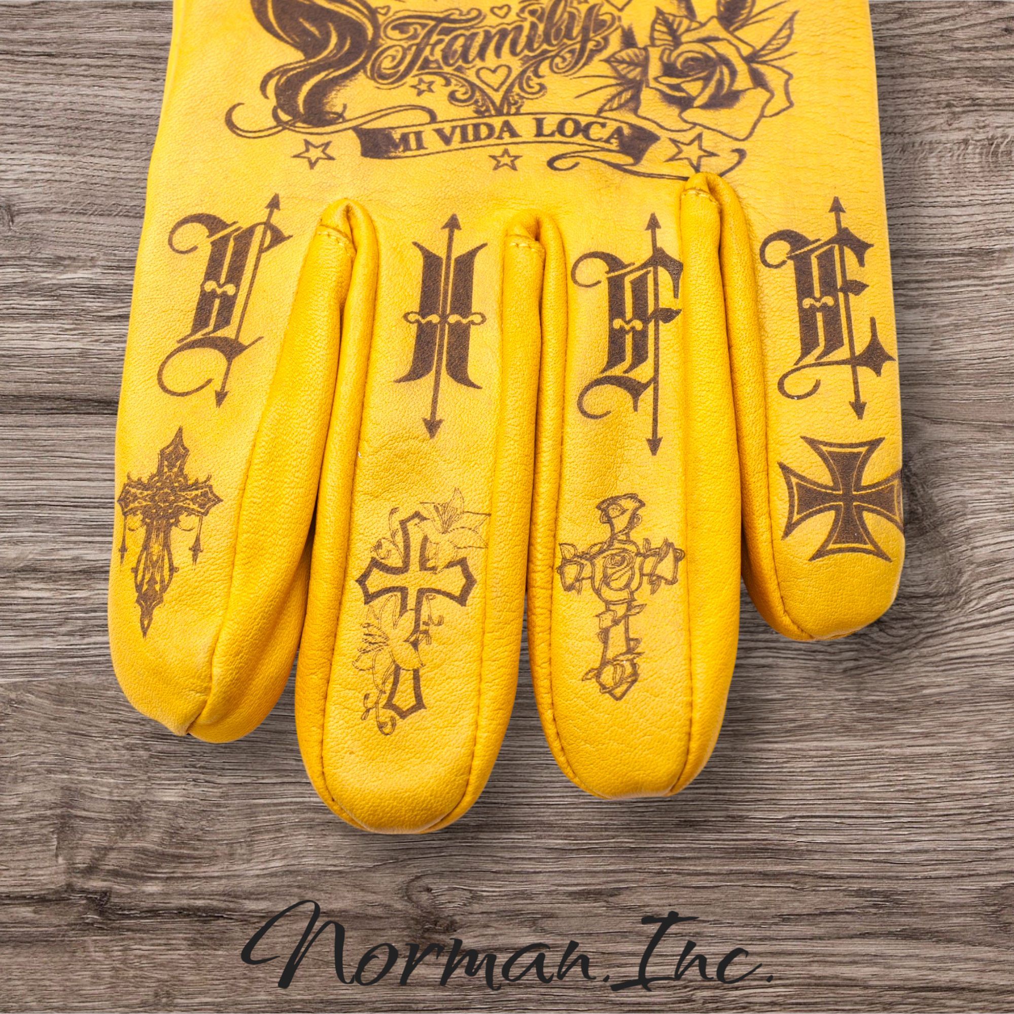 牛革 レザーグローブ スマホ対応 アメリカン バイク ハーレー カスタム タトゥー 手袋 ツーリング Lサイズ