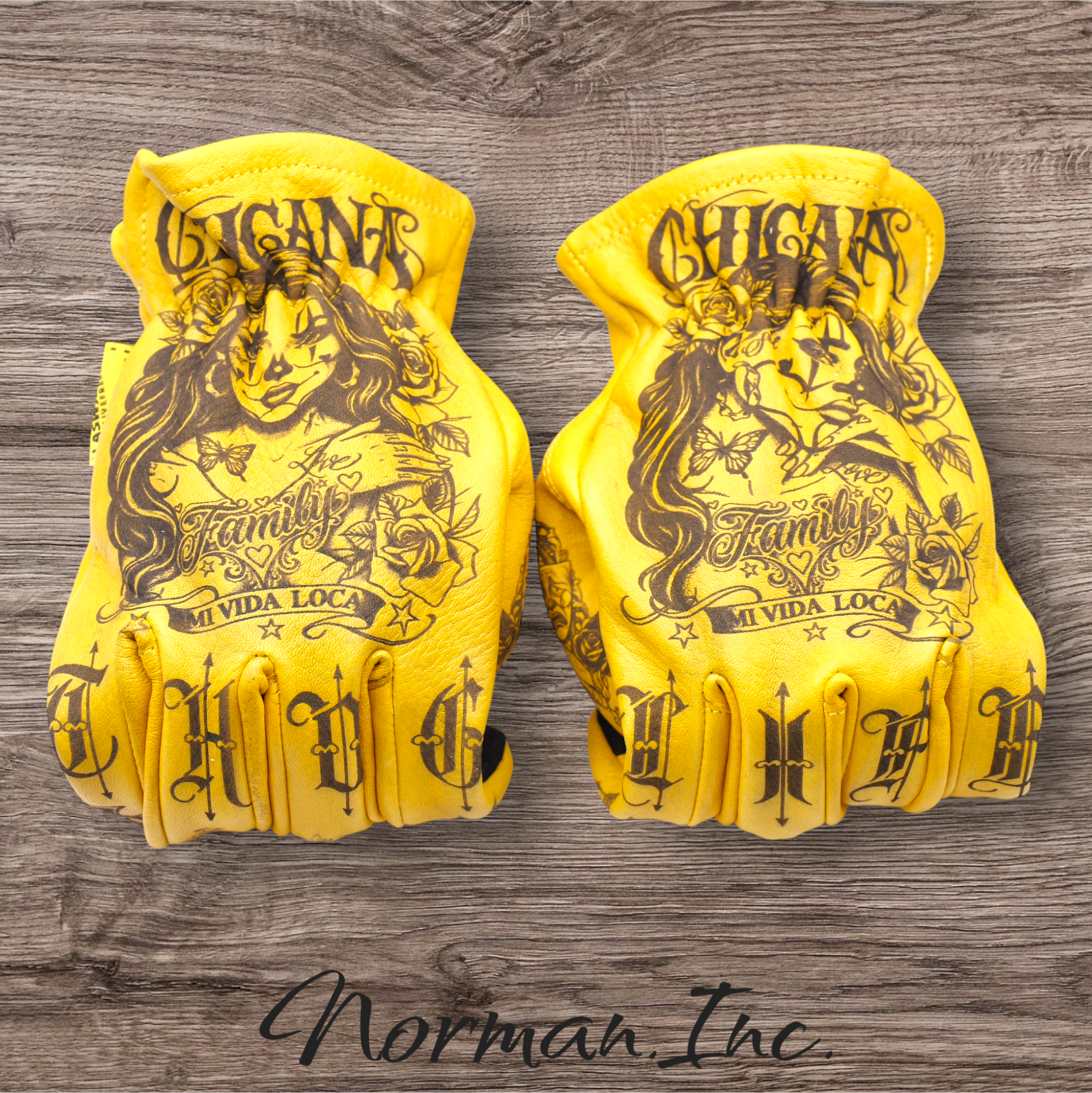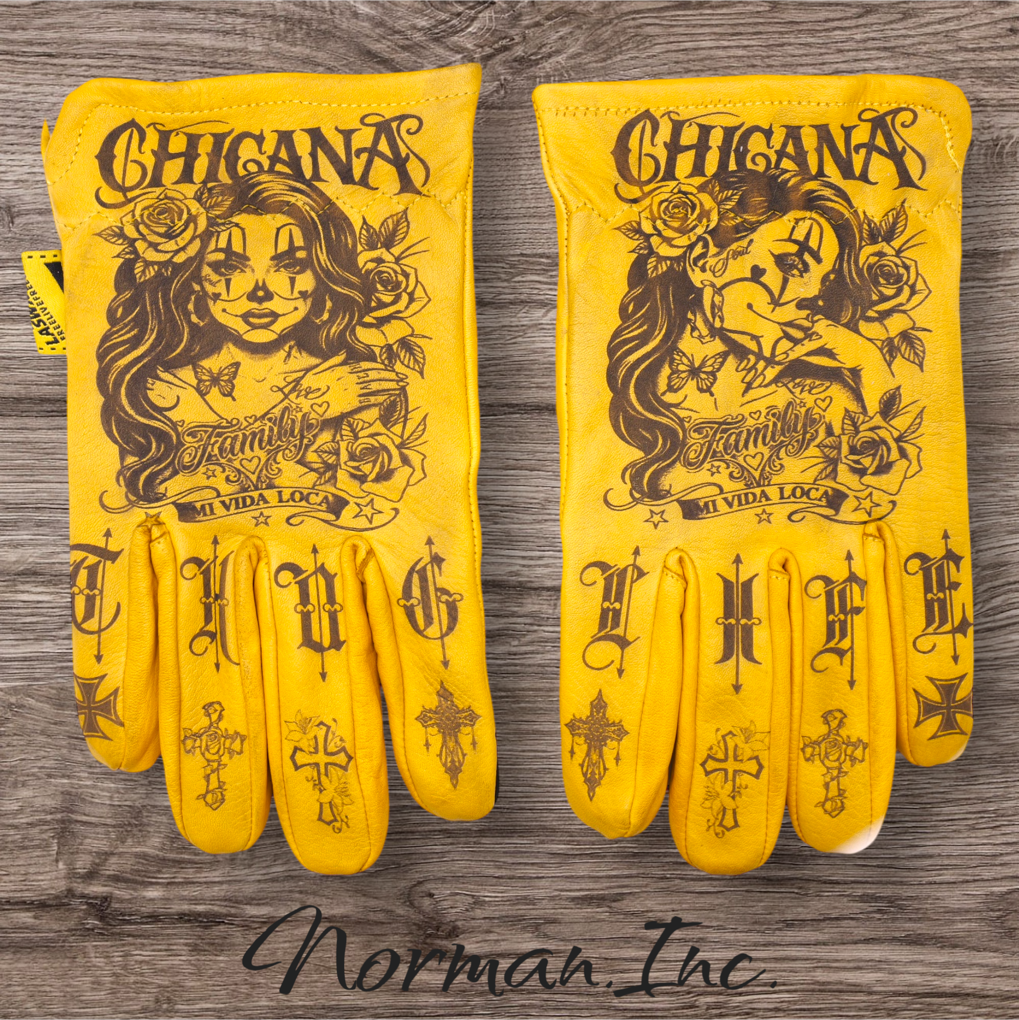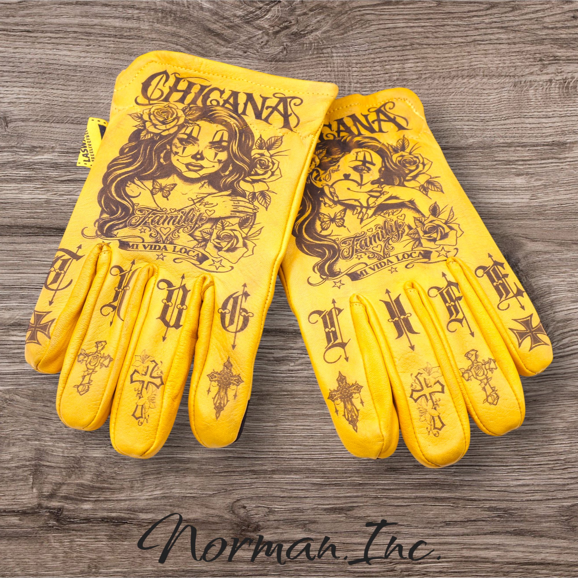 牛革 レザーグローブ スマホ対応 アメリカン バイク ハーレー カスタム タトゥー 手袋 ツーリング Lサイズ