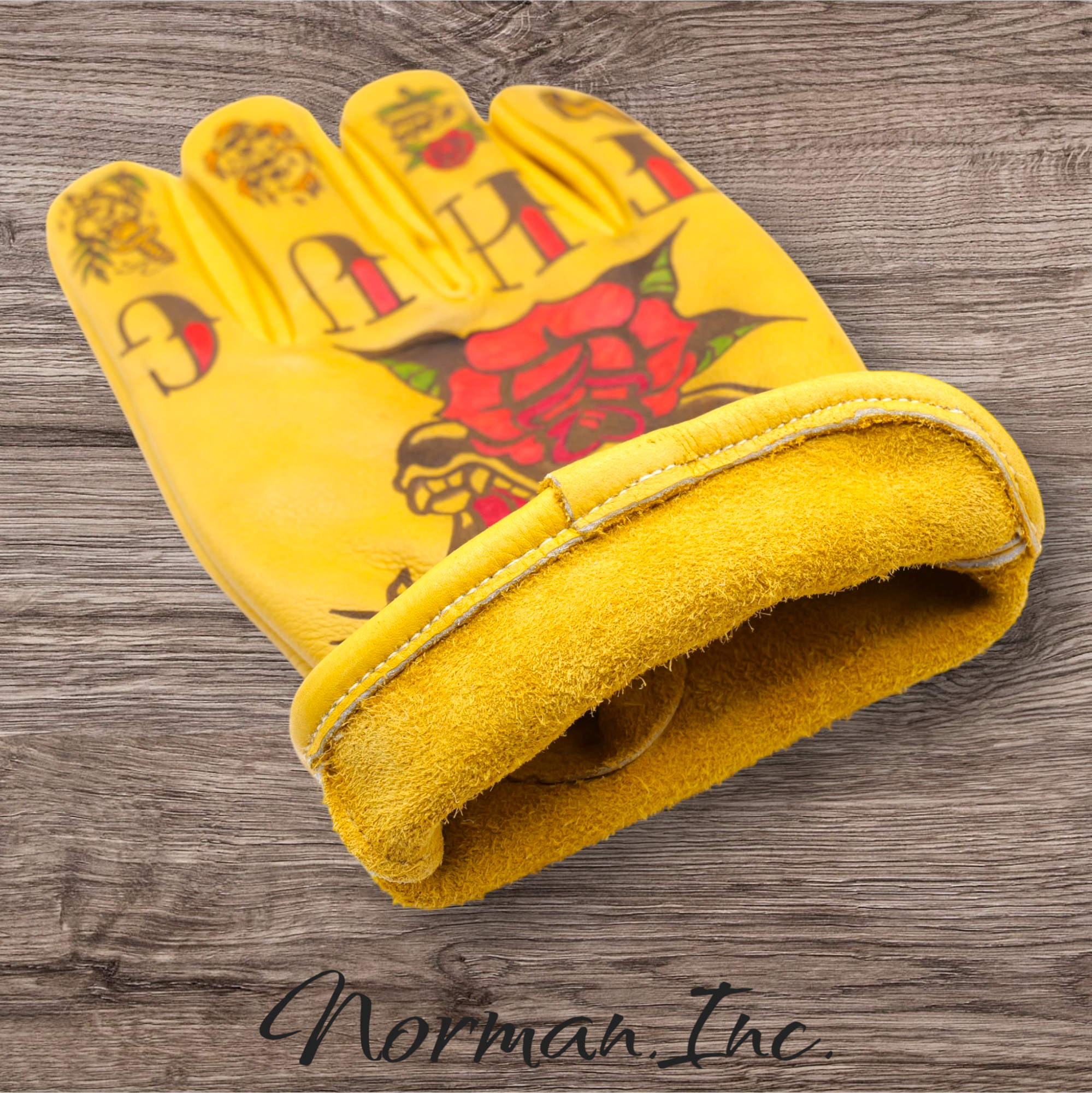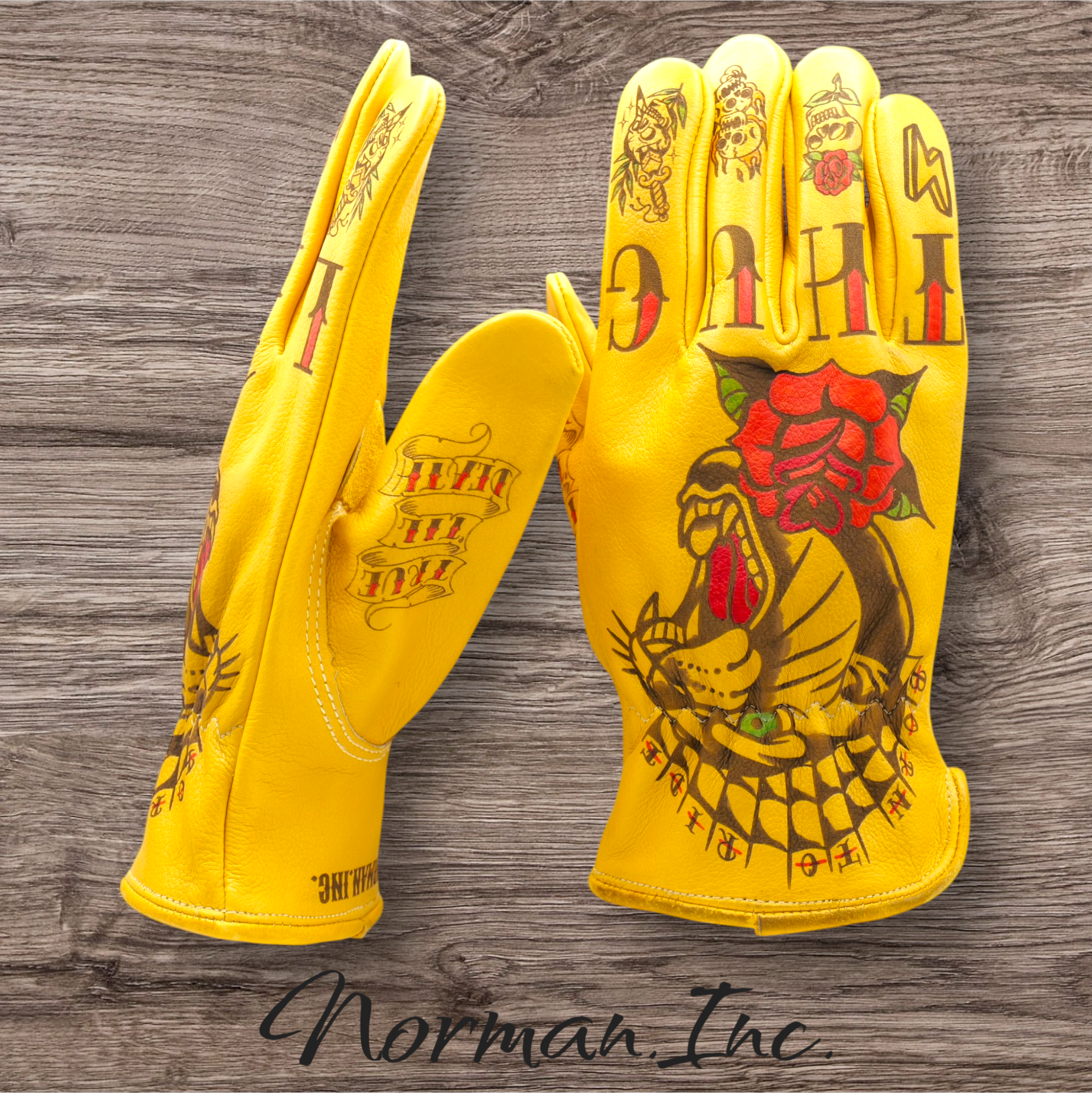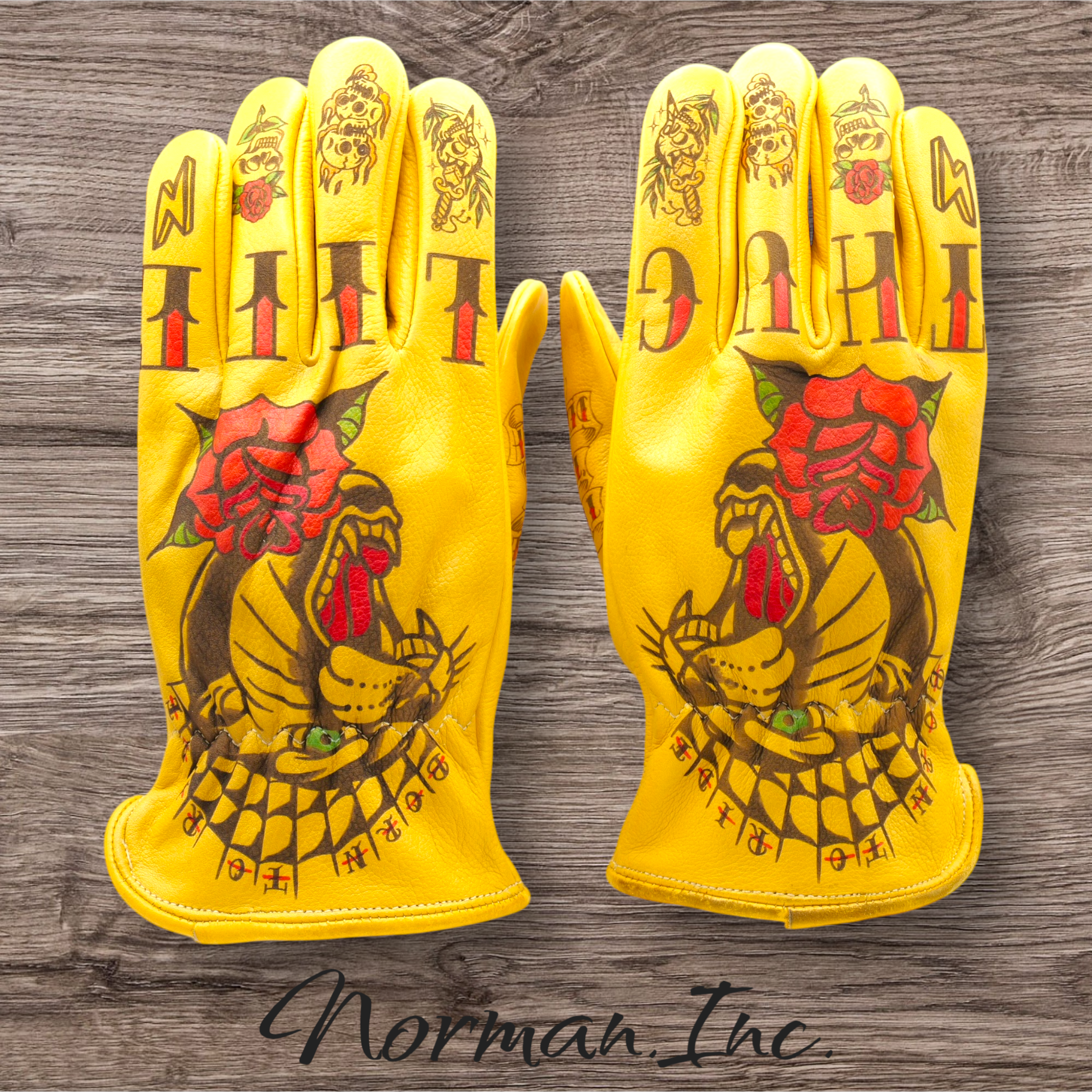 牛革 レザーグローブ アメリカン バイク ハーレー カスタム タトゥー 手袋 キャンプ DIY カスタムグローブ ツーリング M.Lサイズ