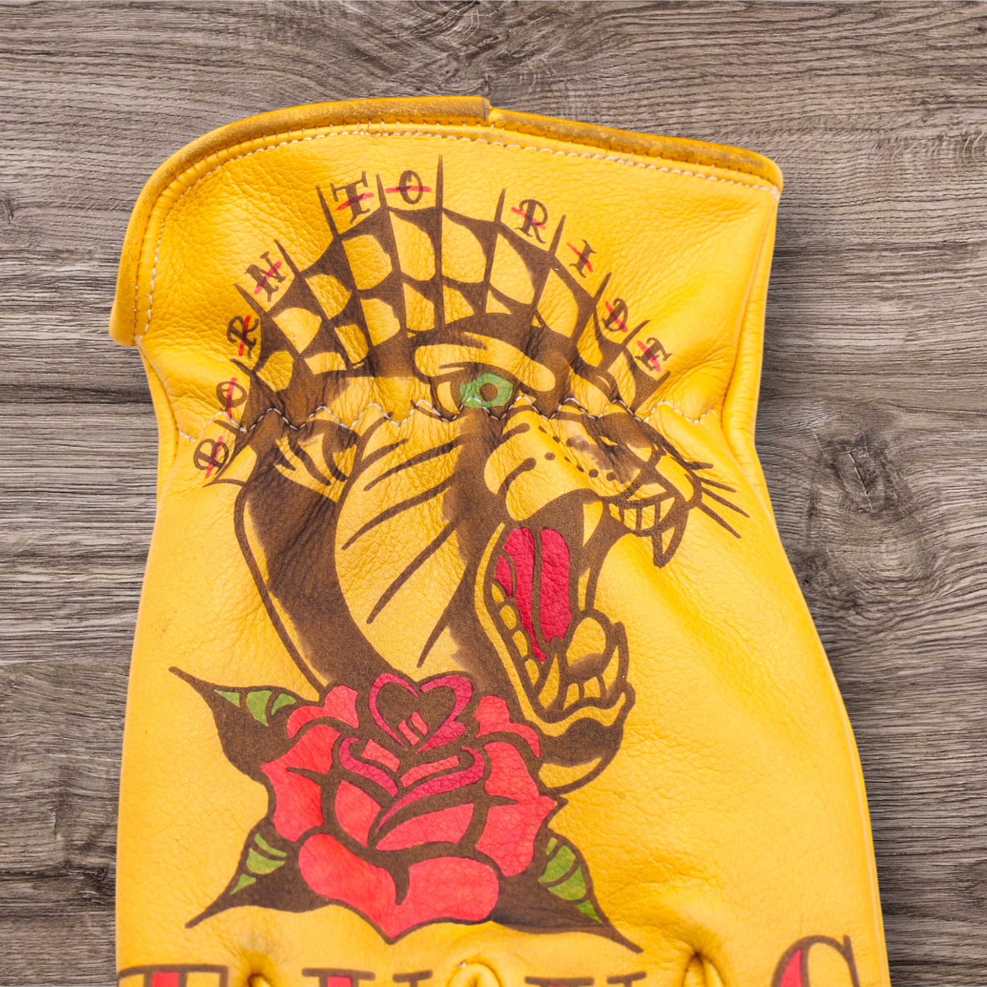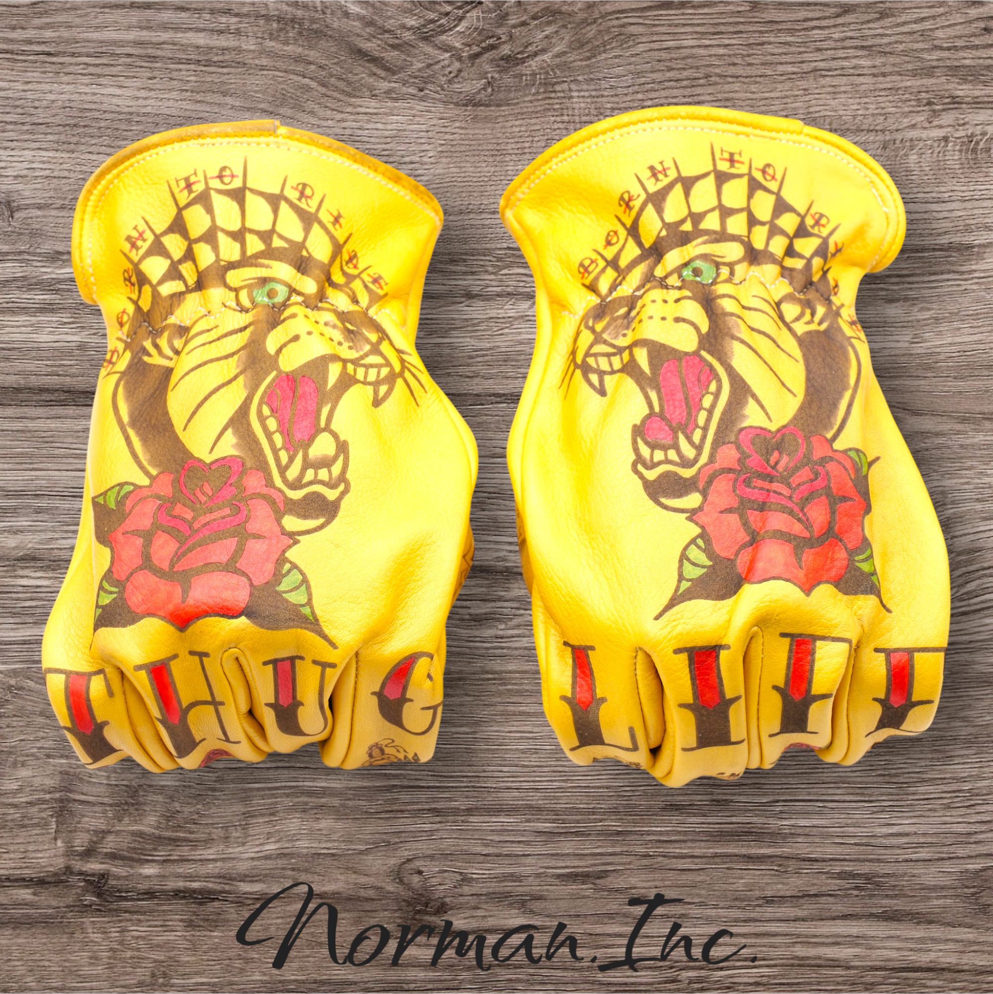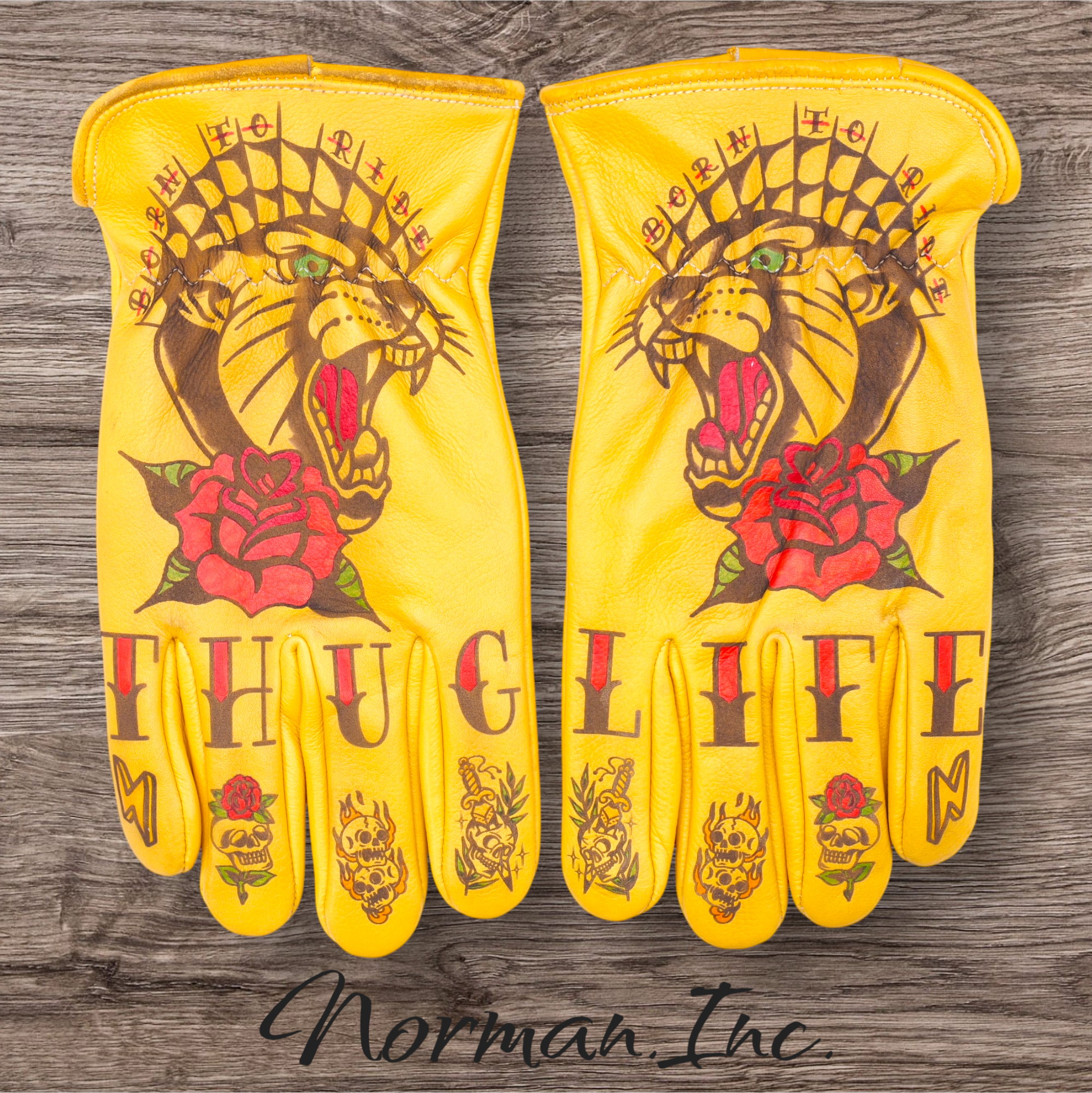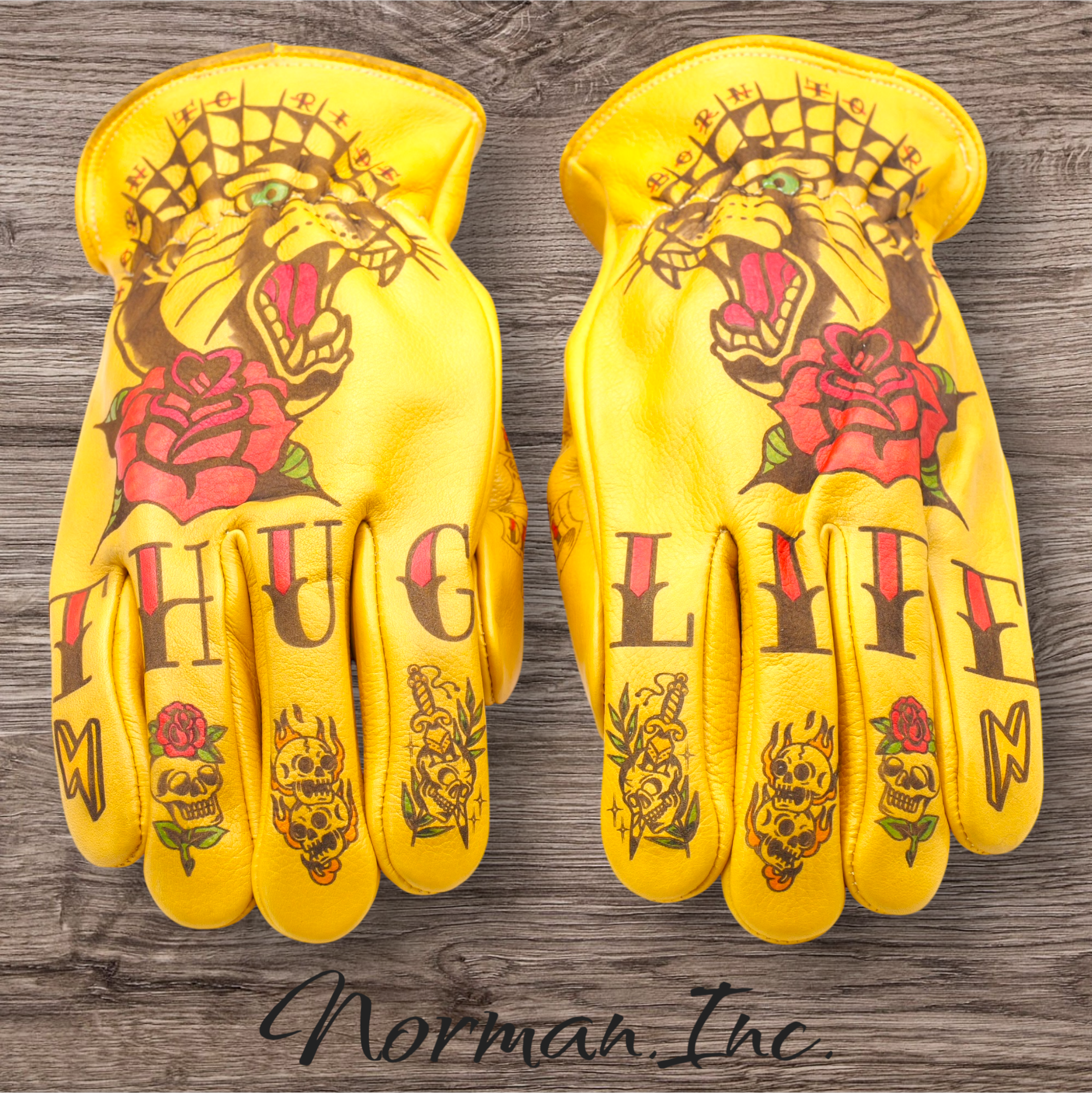 牛革 レザーグローブ アメリカン バイク ハーレー カスタム タトゥー 手袋 キャンプ DIY カスタムグローブ ツーリング M.Lサイズ