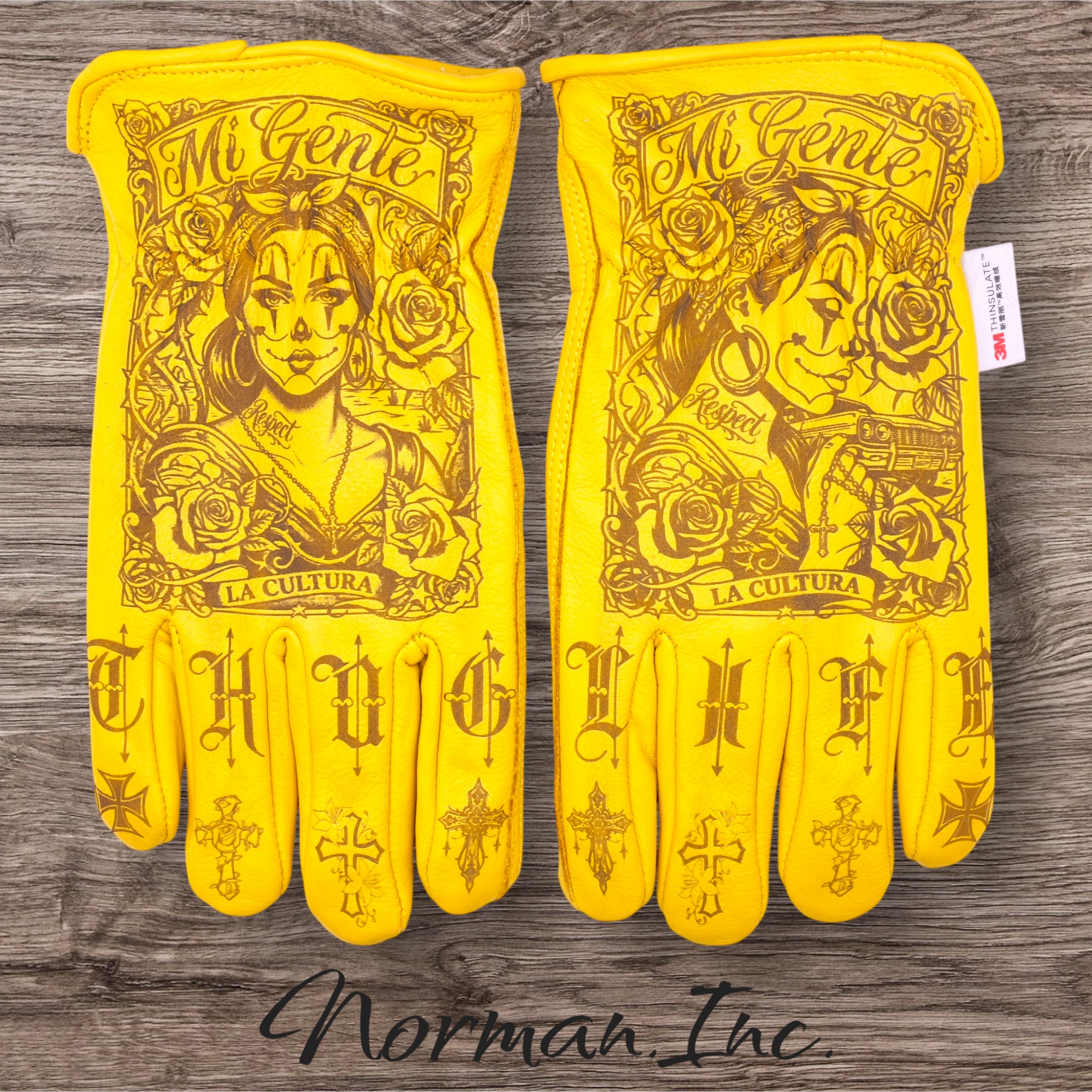 牛革 冬用 保温綿 裏起毛 レザーグローブ アメリカン バイク ハーレー カスタム タトゥー 手袋 キャンプ DIY カスタムグローブ 3M ツーリング M,L,XLサイズ