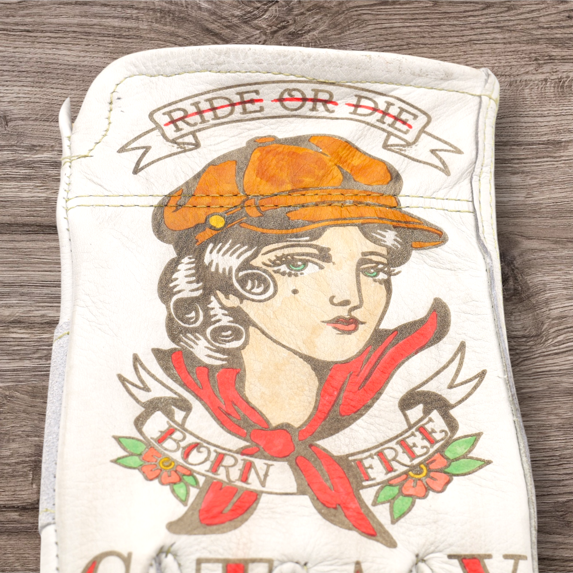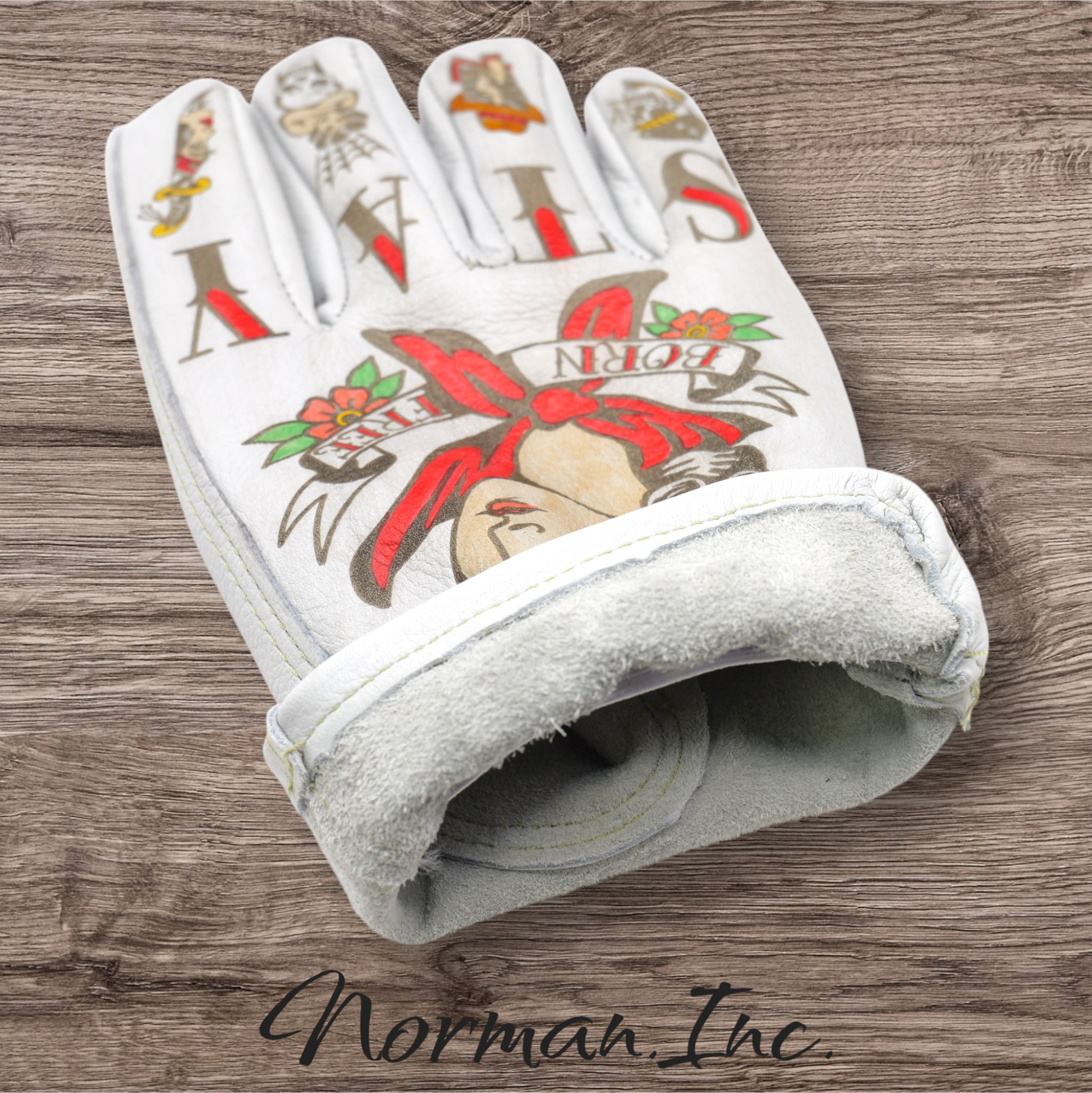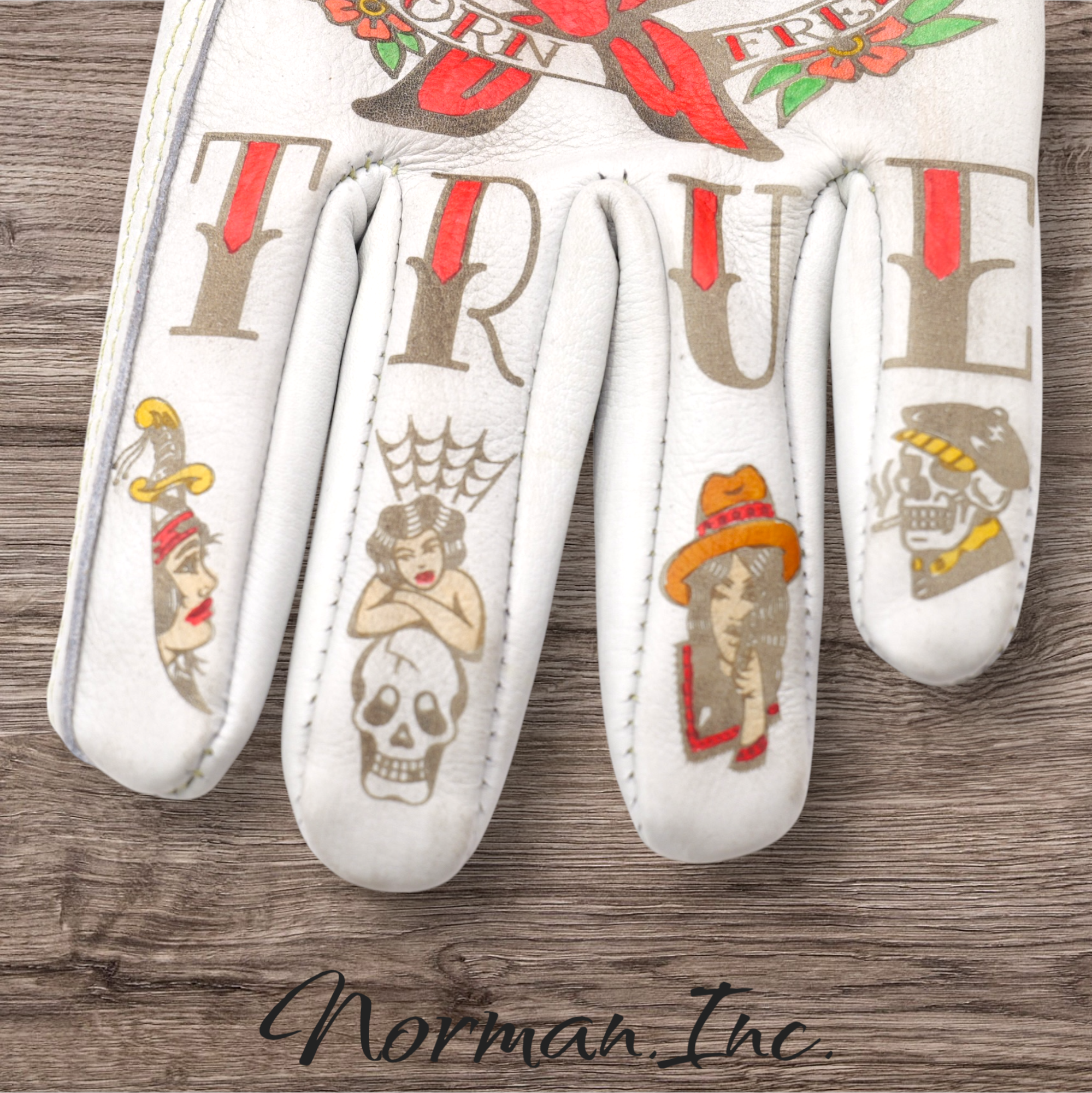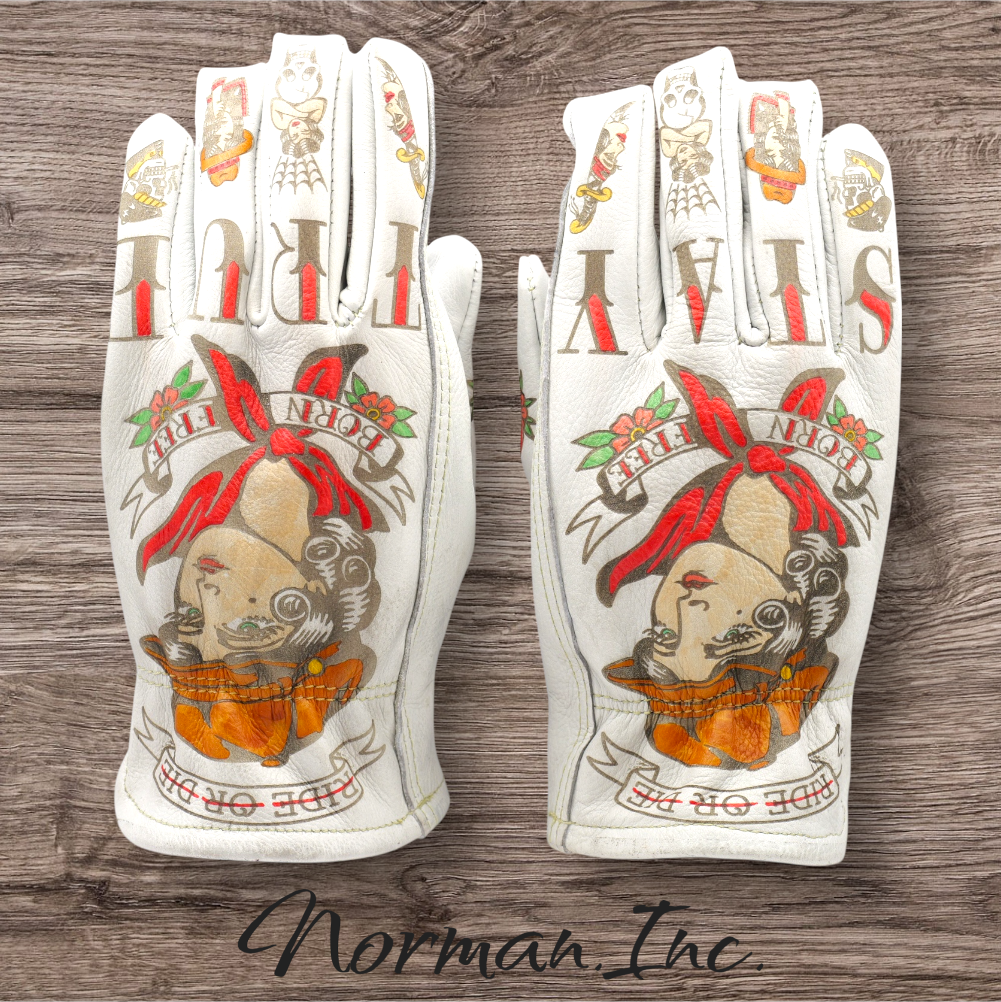 牛革 レザーグローブ ホワイト 白 アメリカン バイク ハーレー カスタム タトゥー 手袋 ツーリング  M,L,XLサイズ