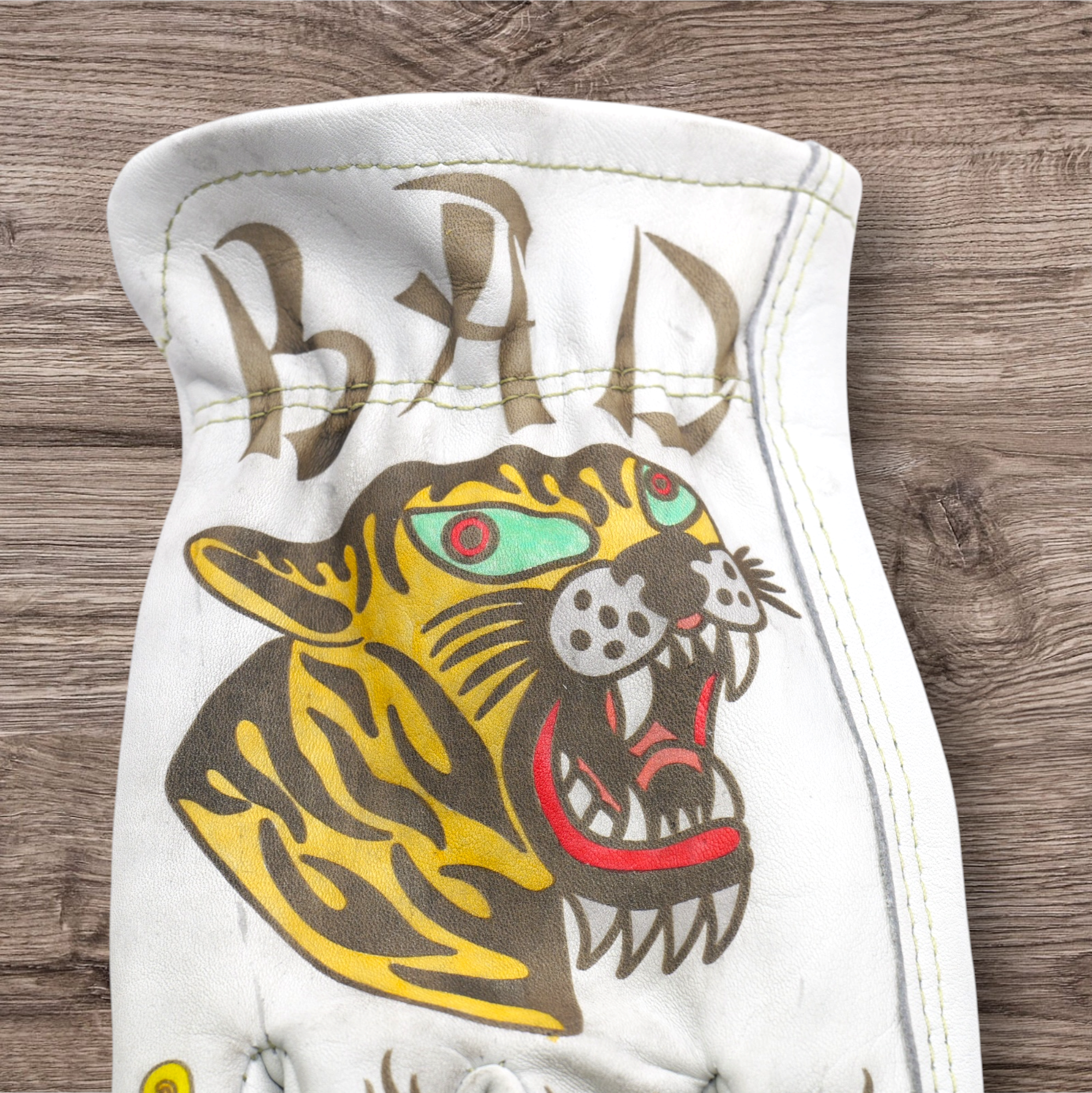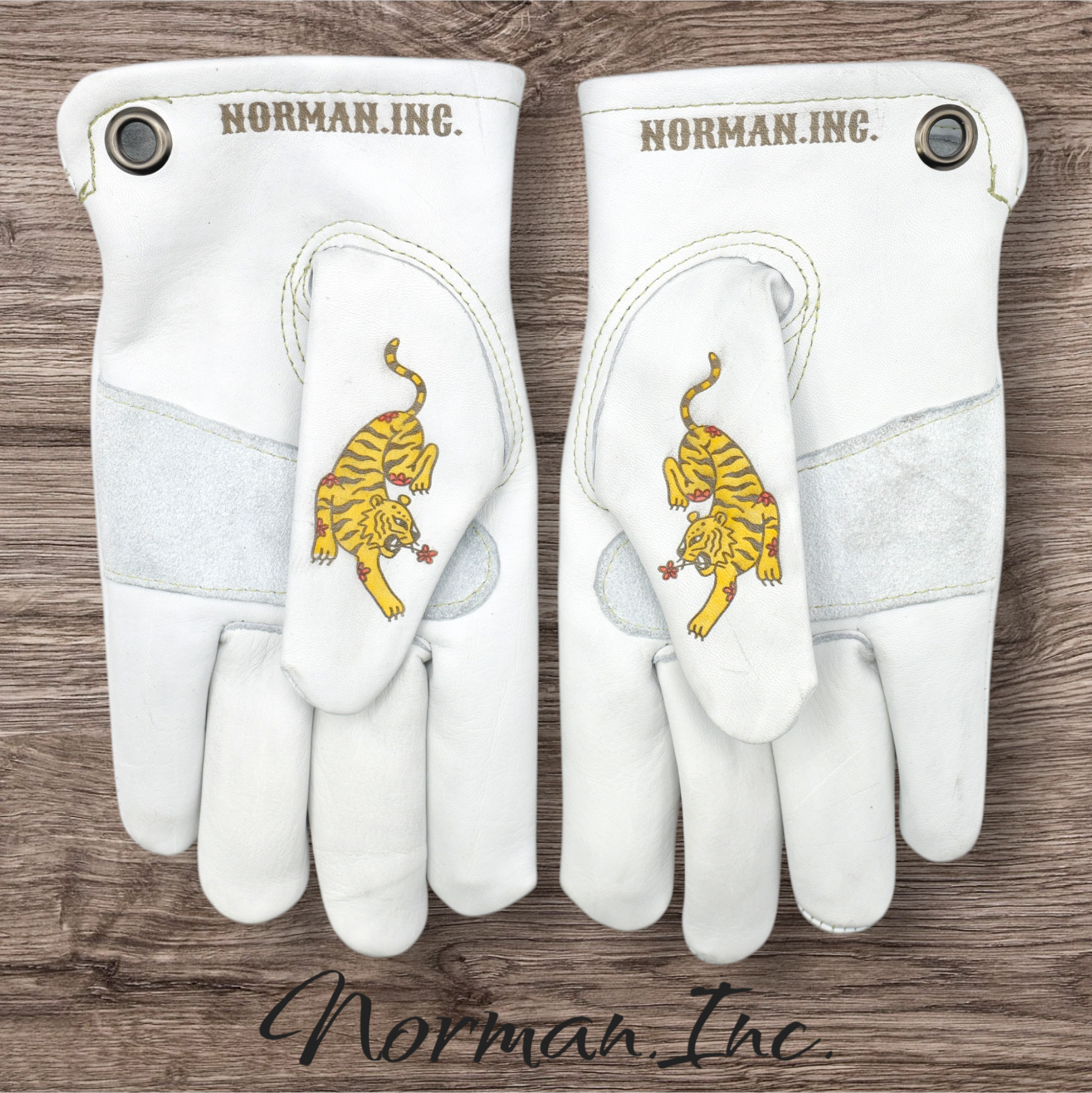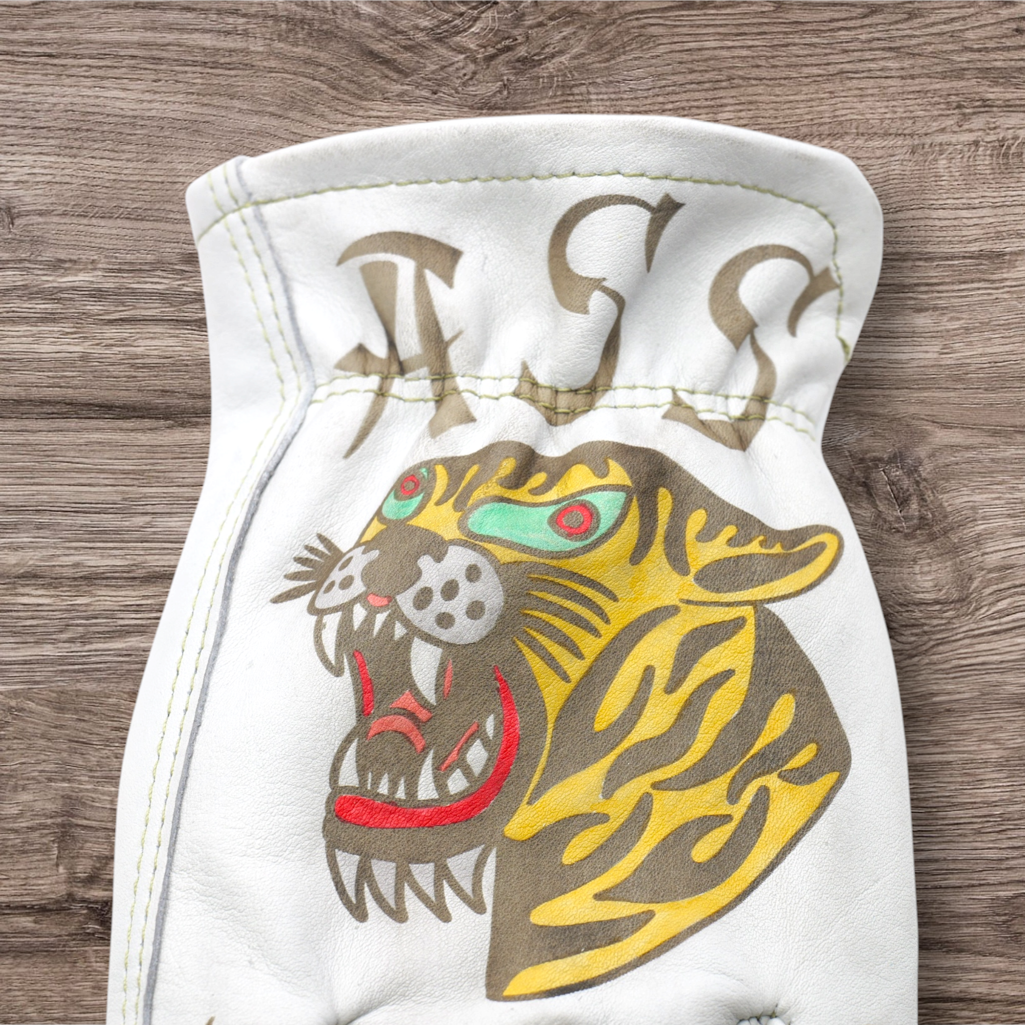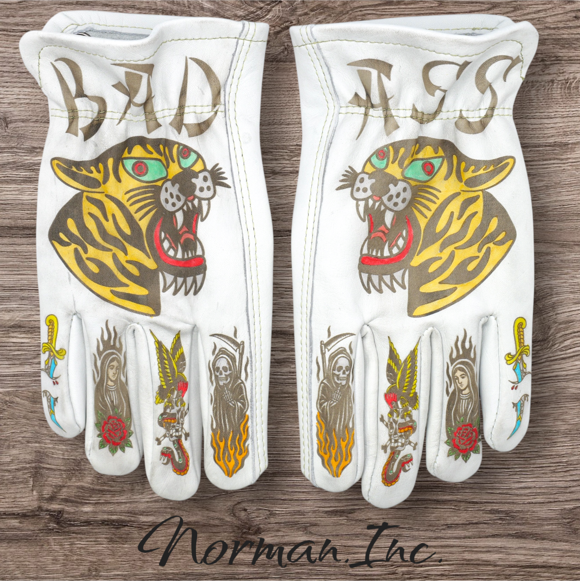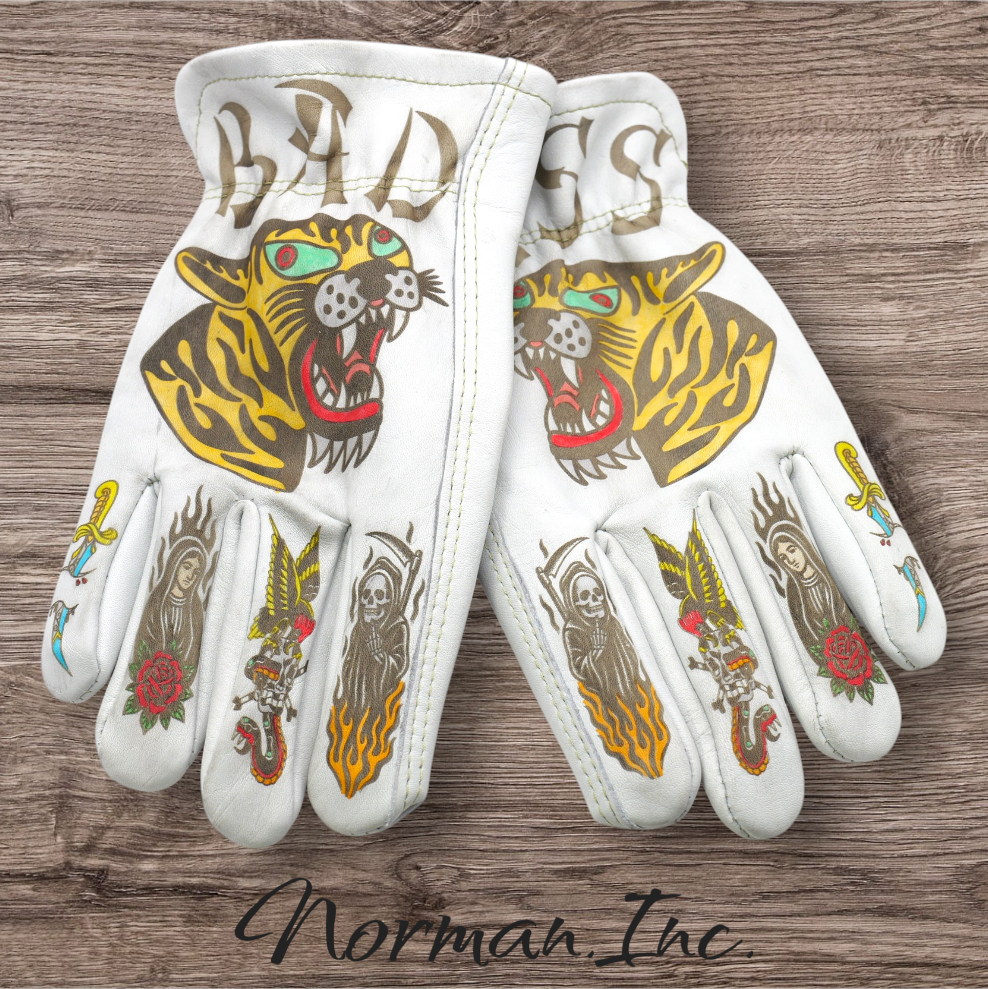 牛革 レザーグローブ ホワイト 白 アメリカン バイク ハーレー カスタム タトゥー 手袋 ツーリング M,L,XLサイズ