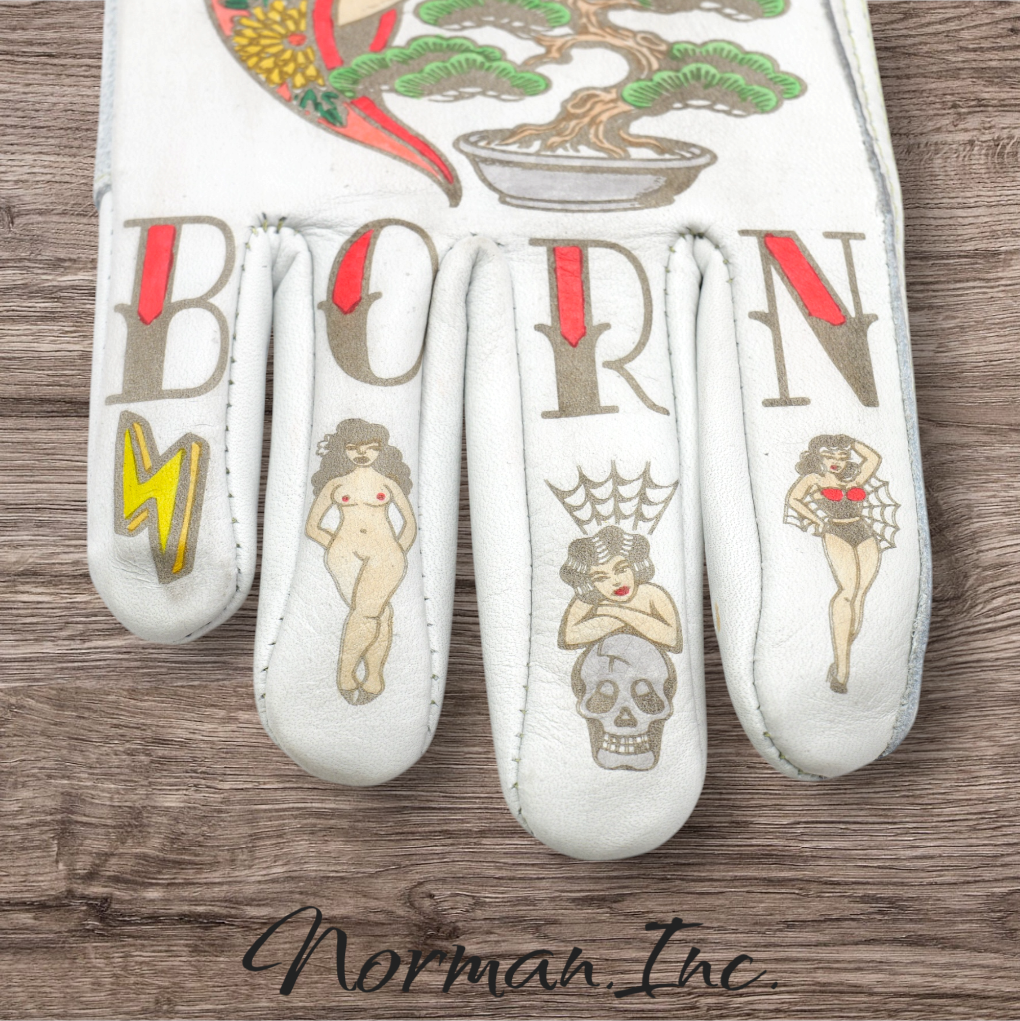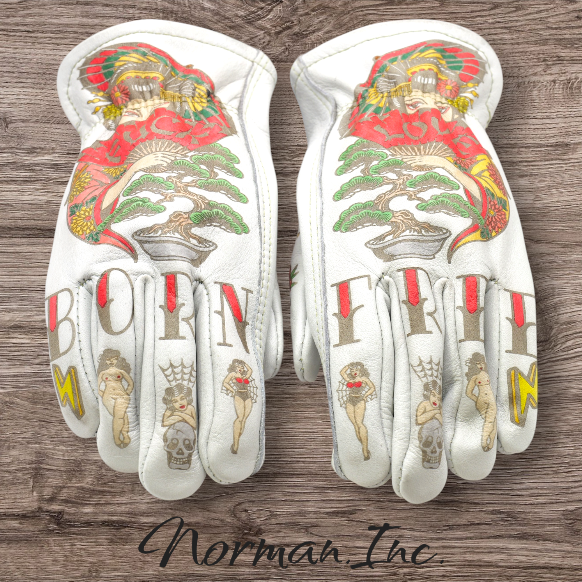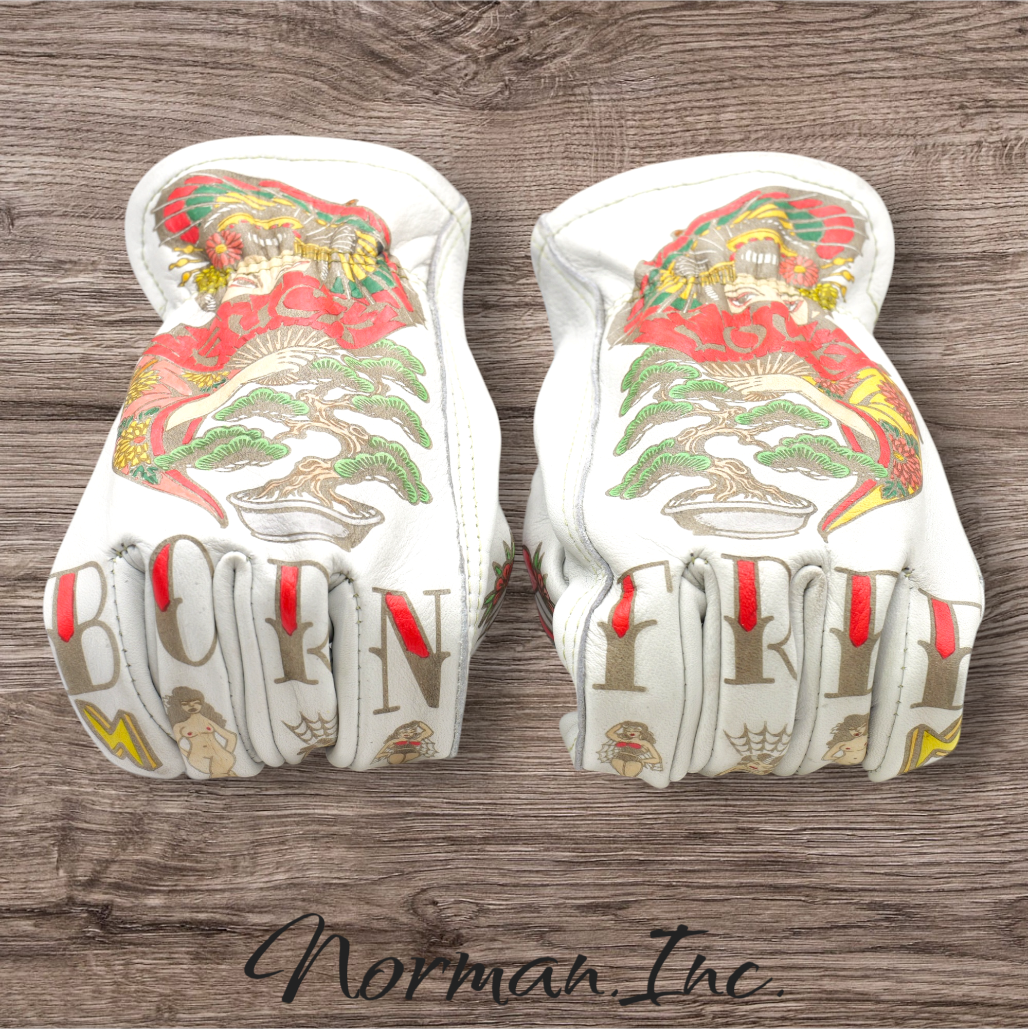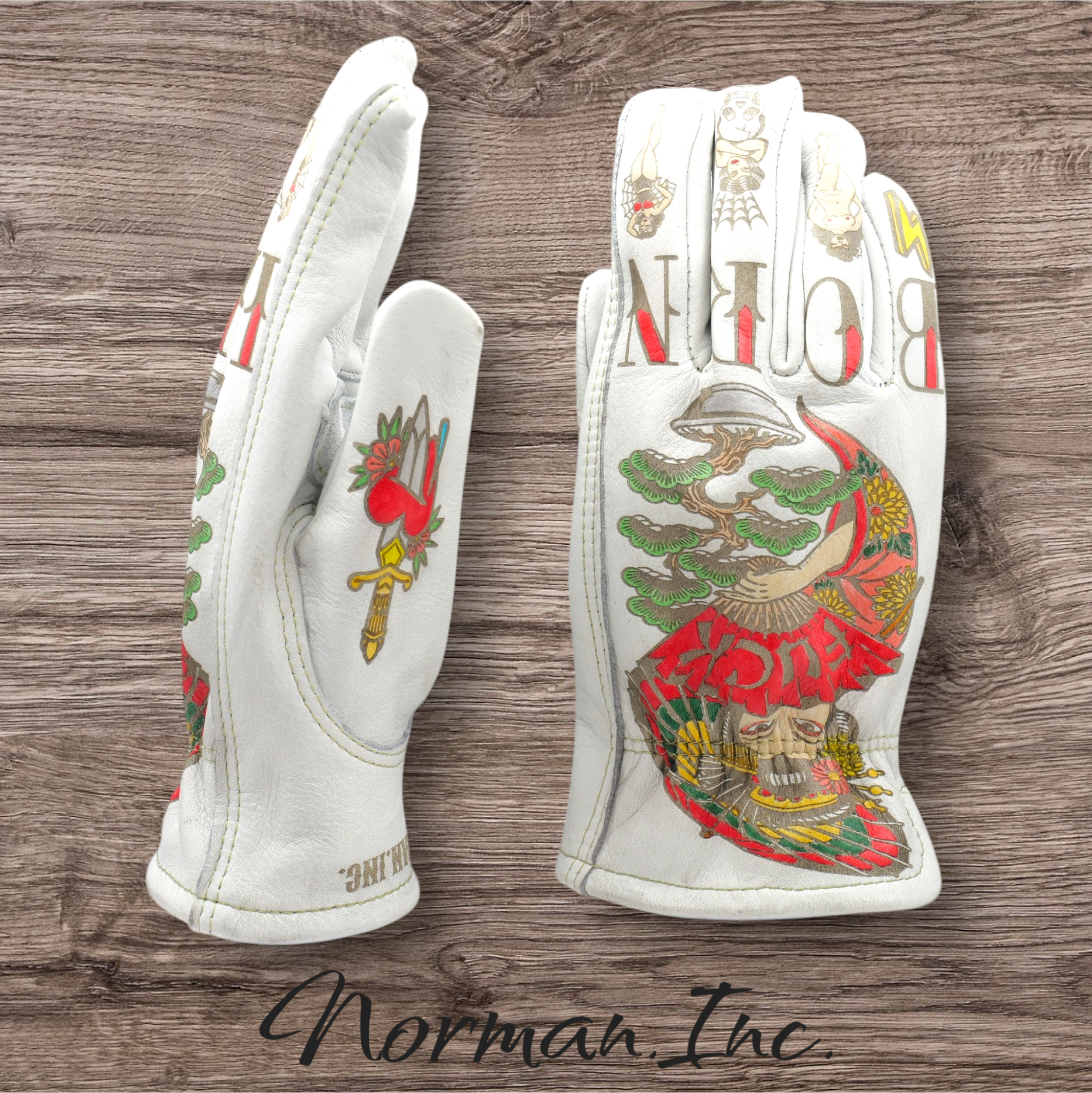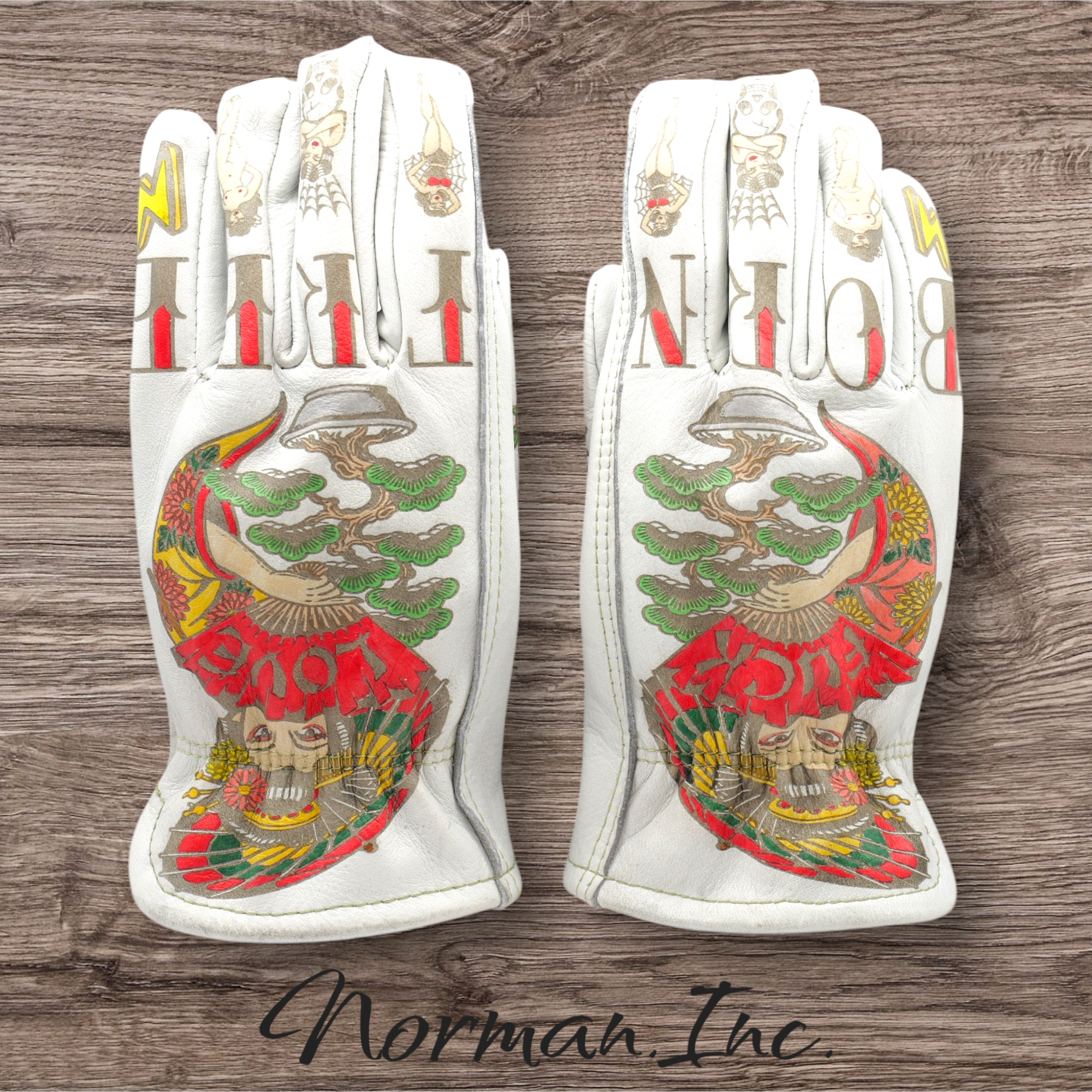 牛革 レザーグローブ ホワイト 白 アメリカン バイク ハーレー カスタム タトゥー 手袋 ツーリング  M,Lサイズ