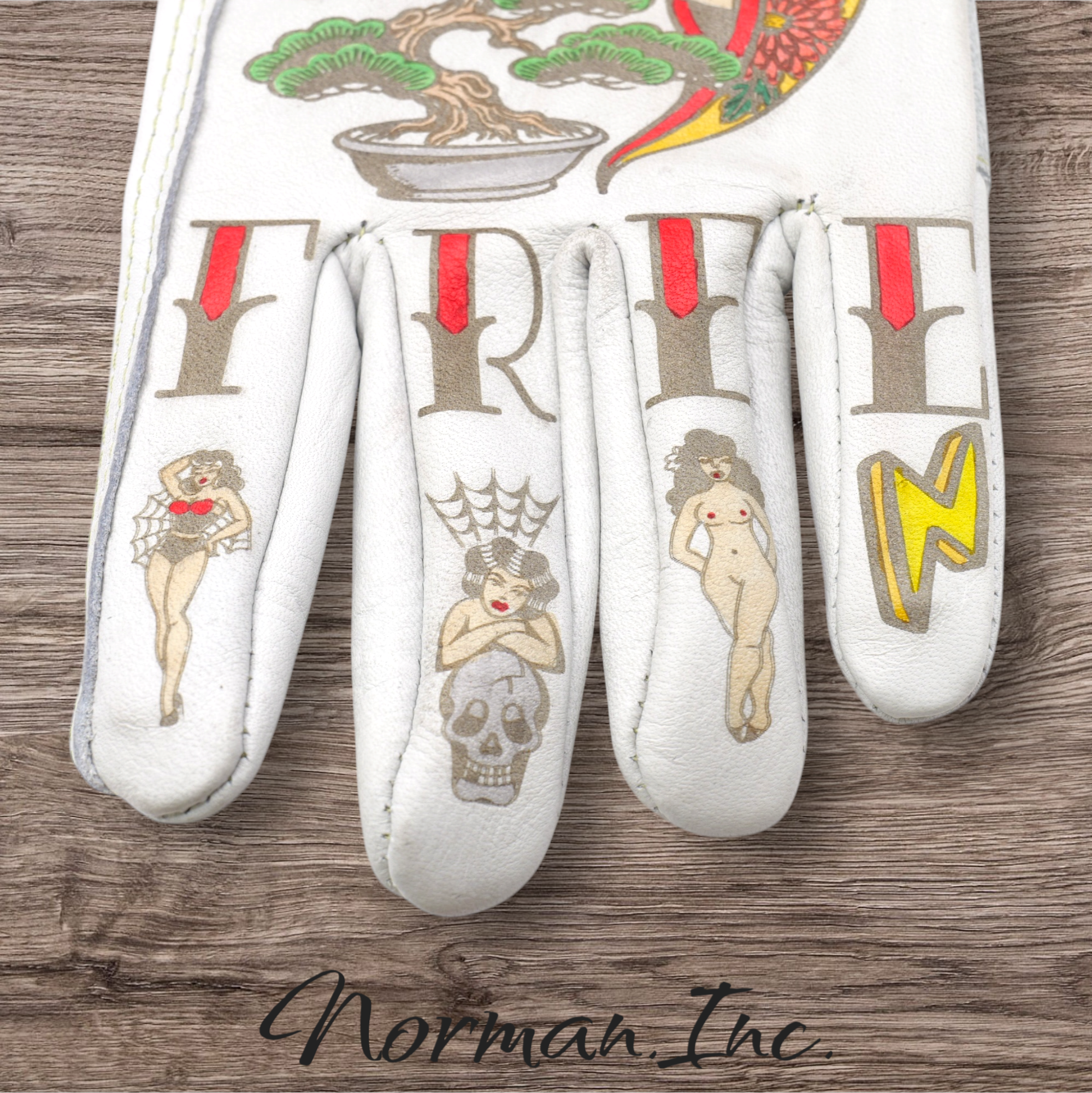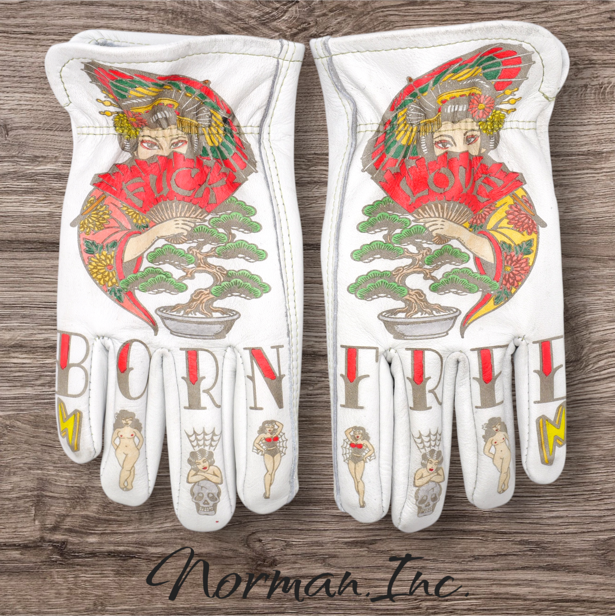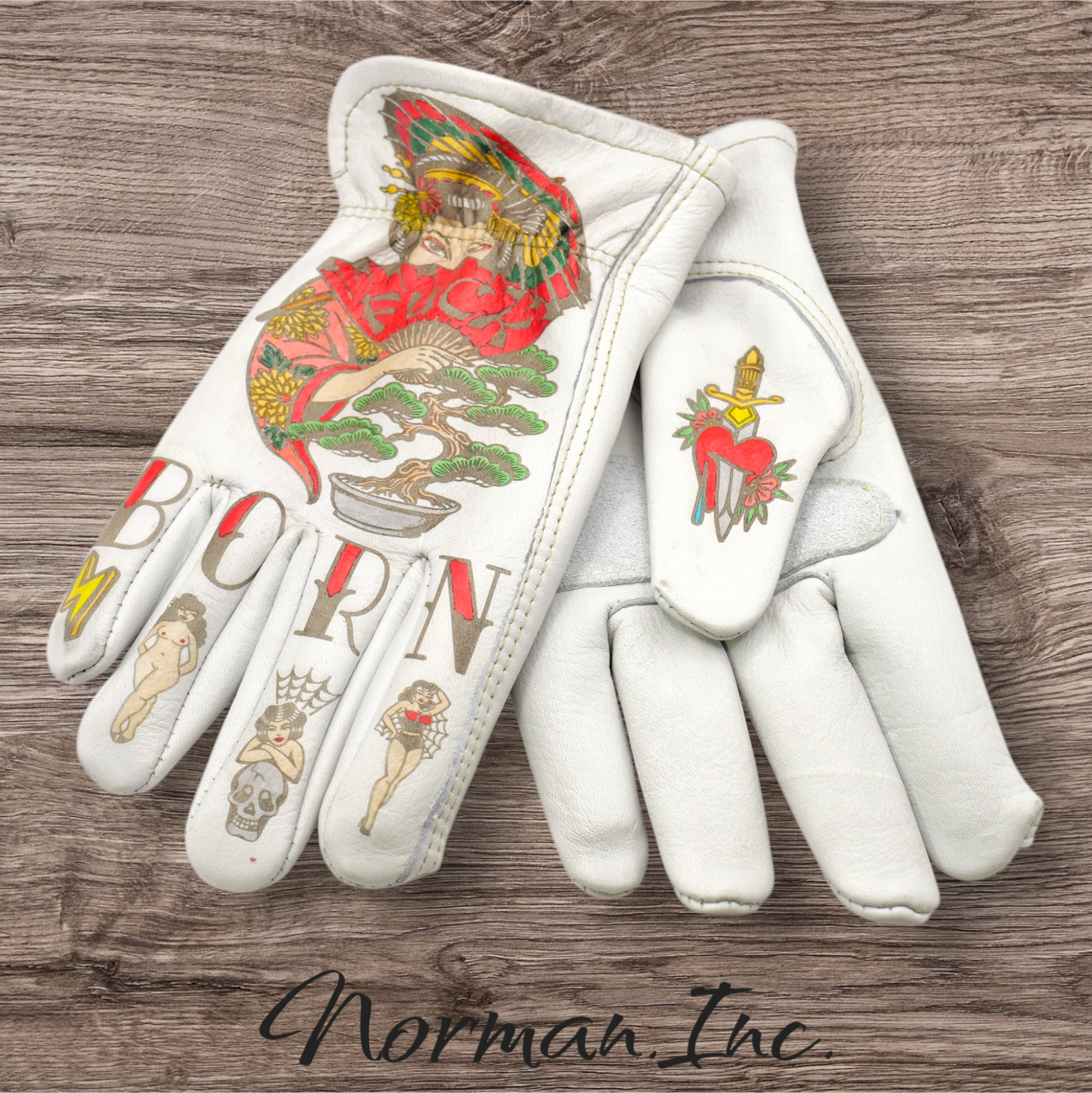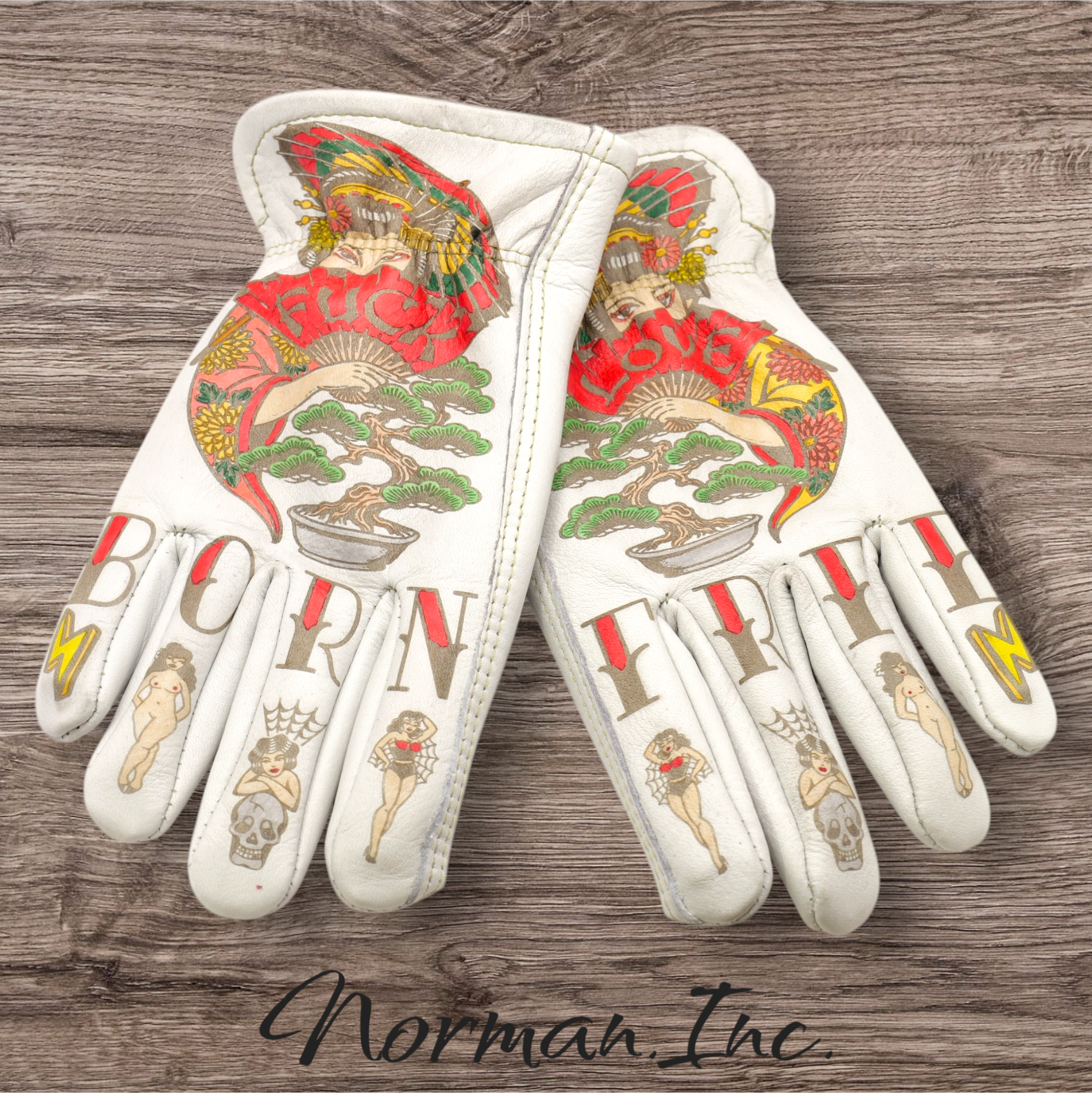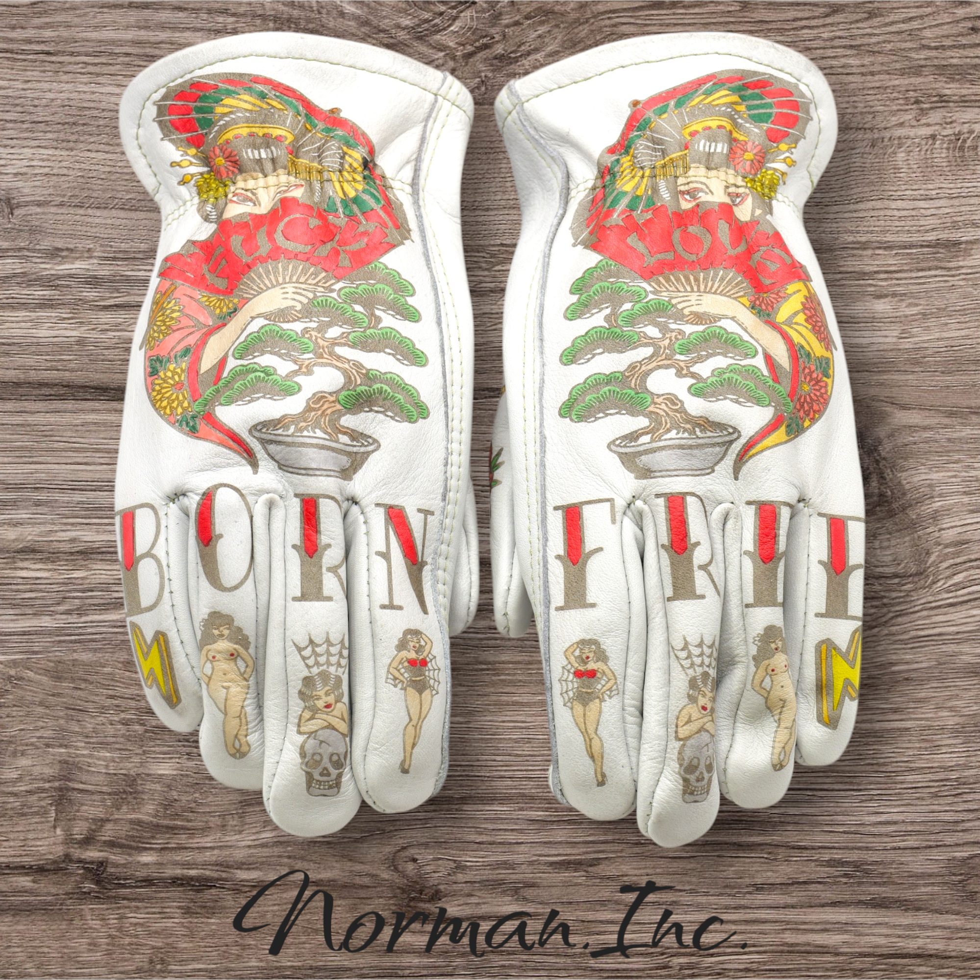 牛革 レザーグローブ ホワイト 白 アメリカン バイク ハーレー カスタム タトゥー 手袋 ツーリング  M,Lサイズ