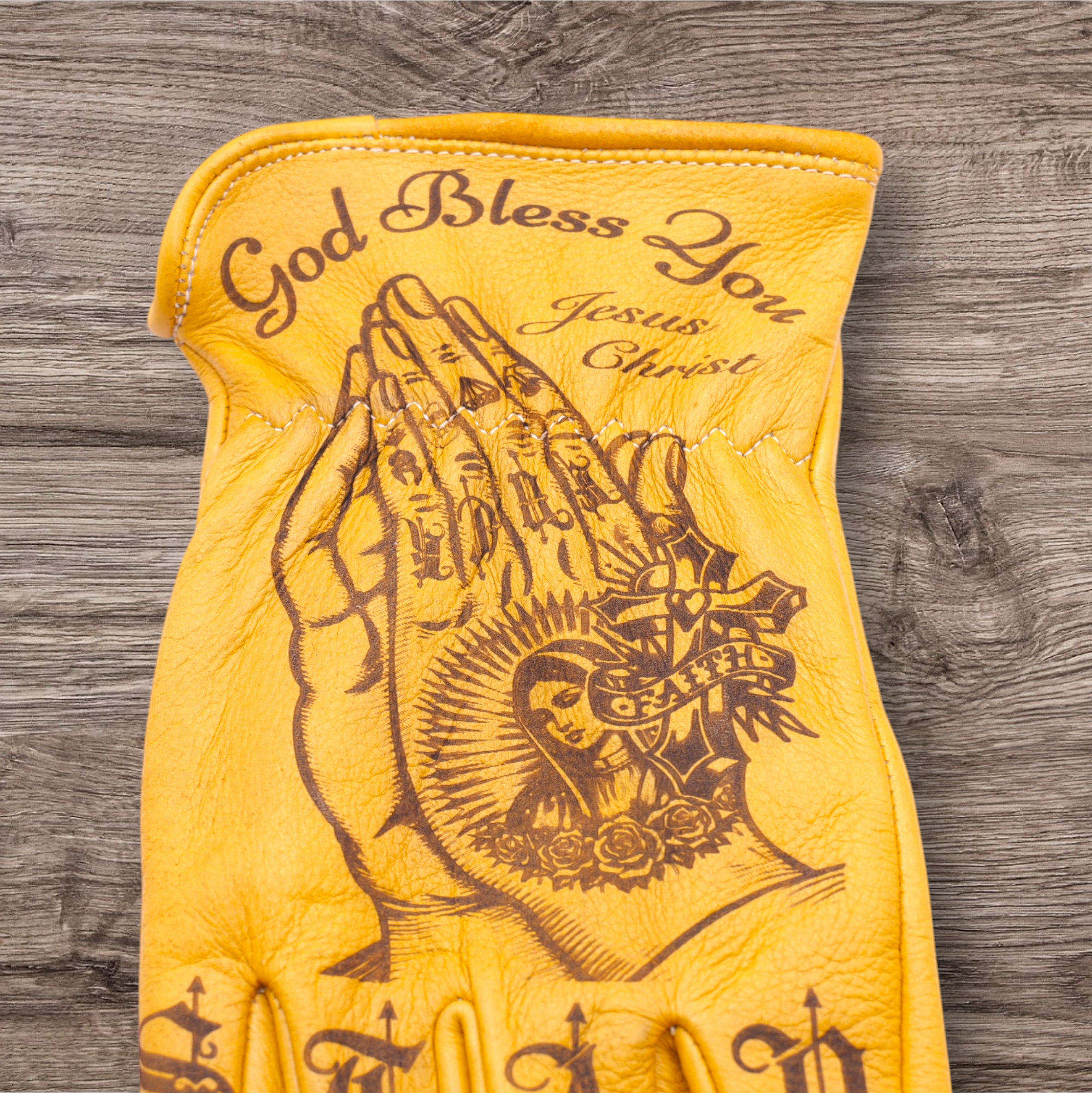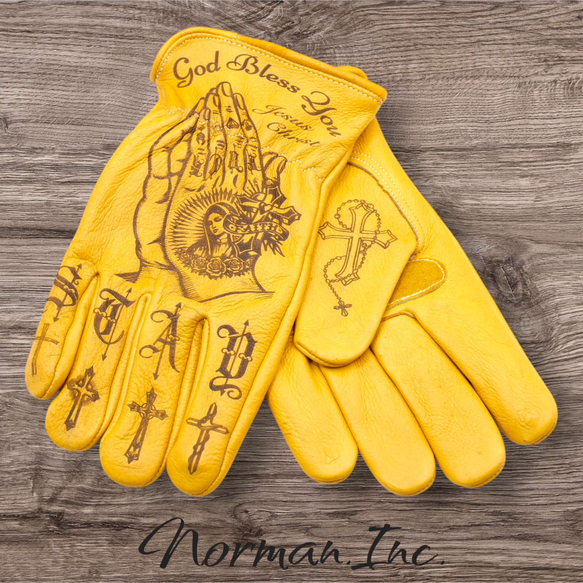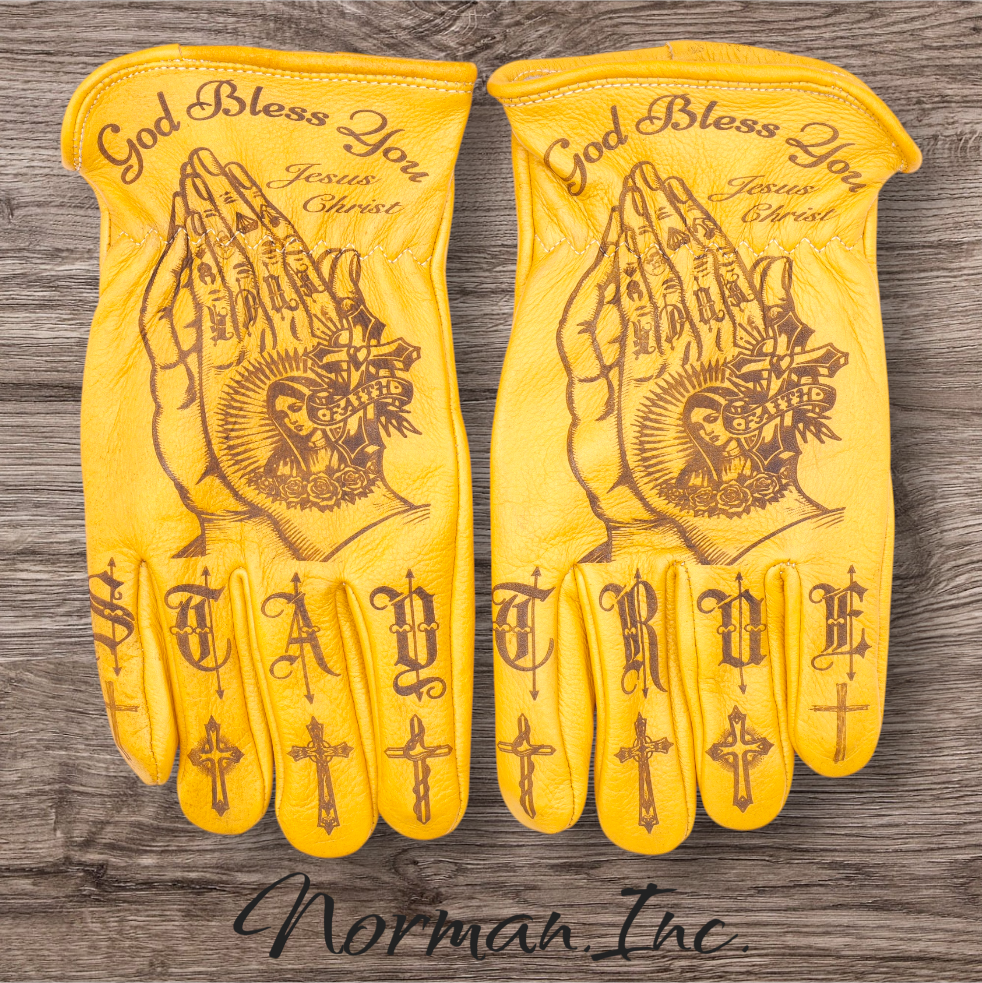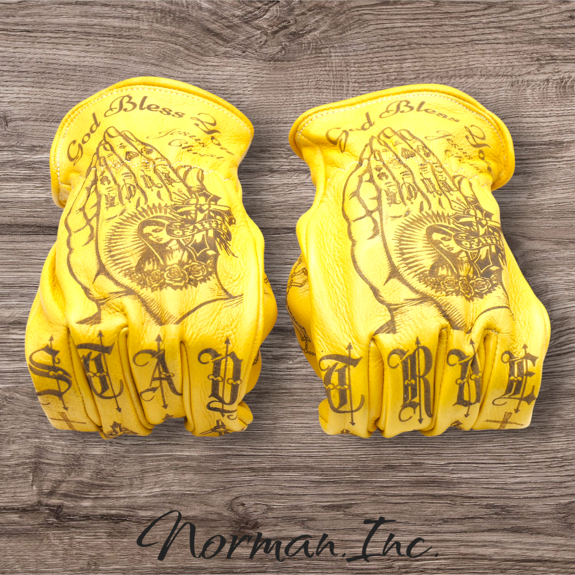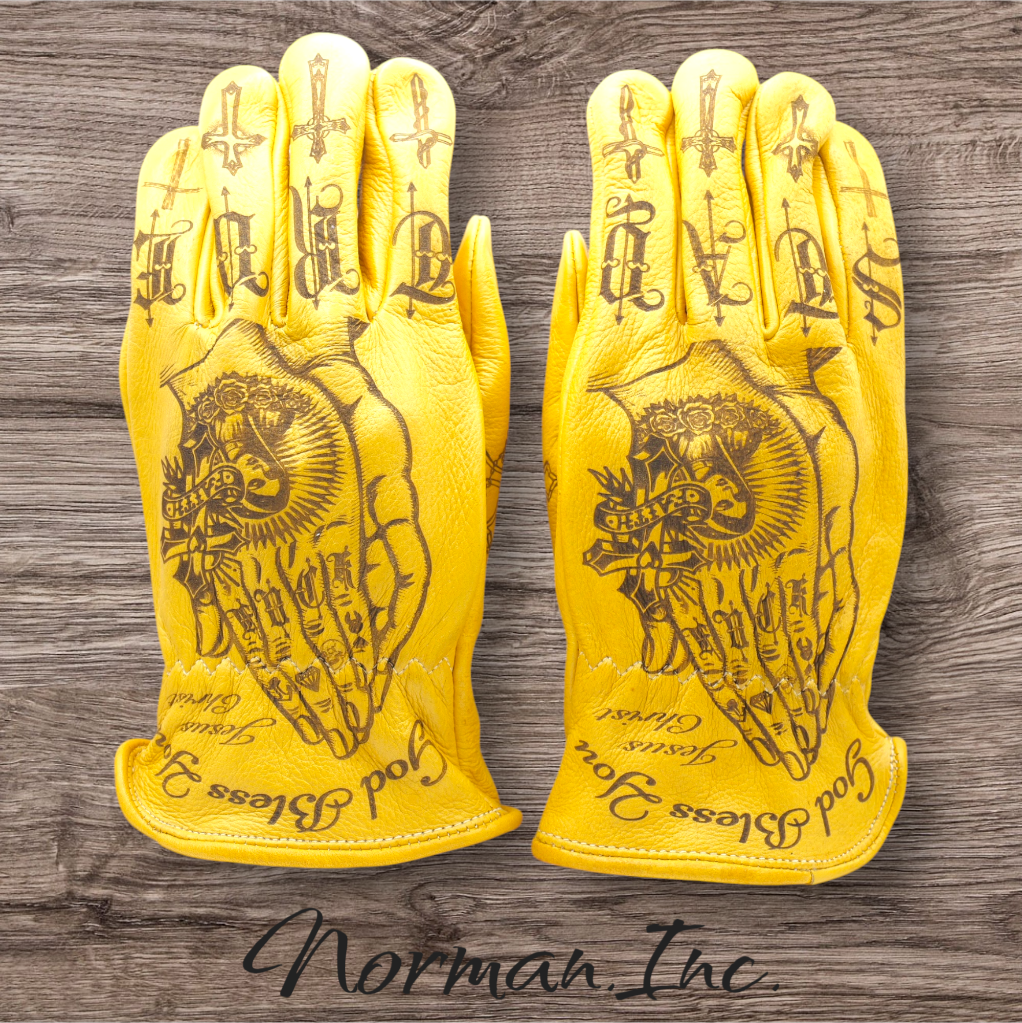 牛革 レザーグローブ アメリカン バイク ハーレー カスタム タトゥー 手袋 キャンプ DIY カスタムグローブ ツーリング M.Lサイズ