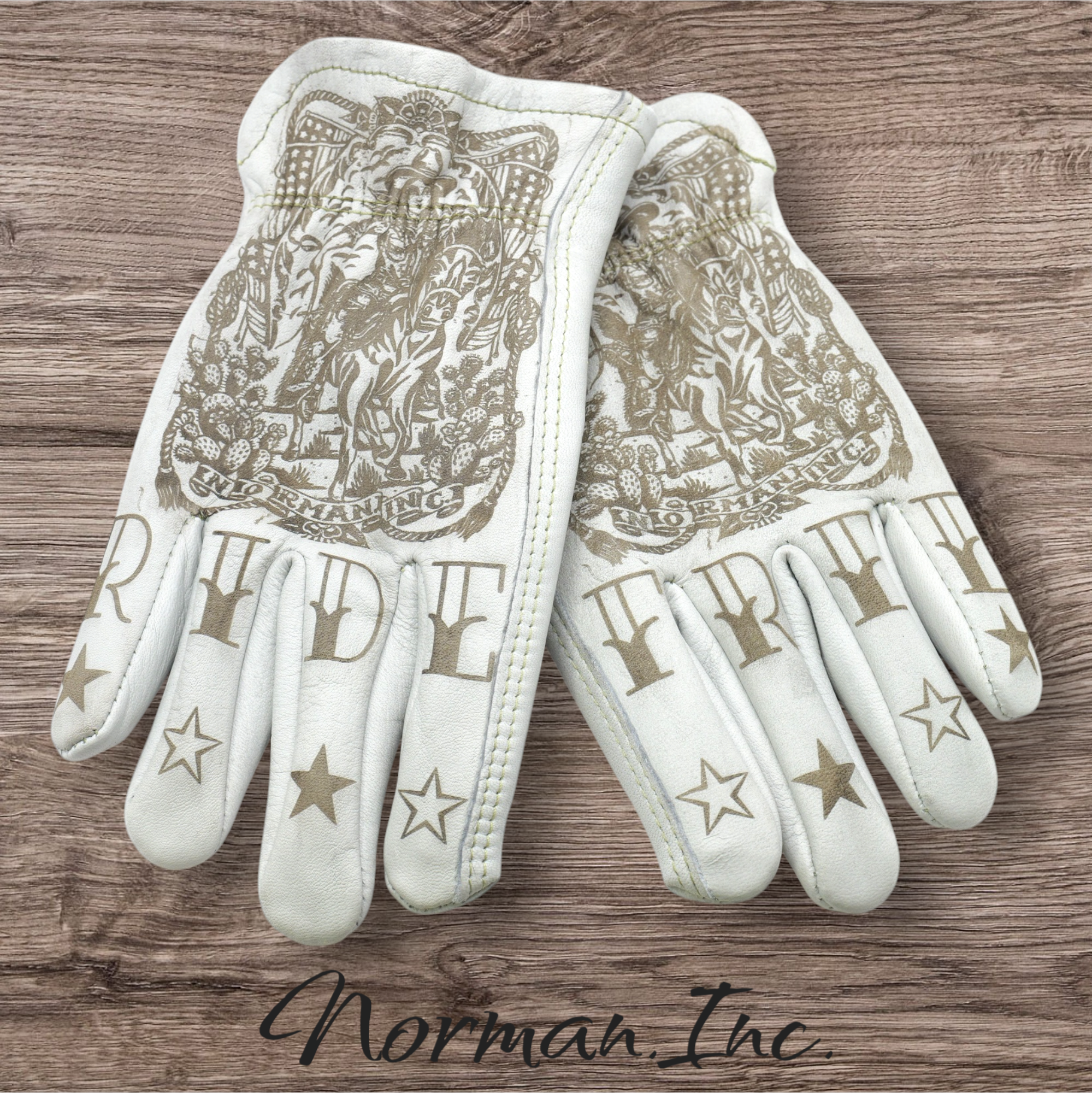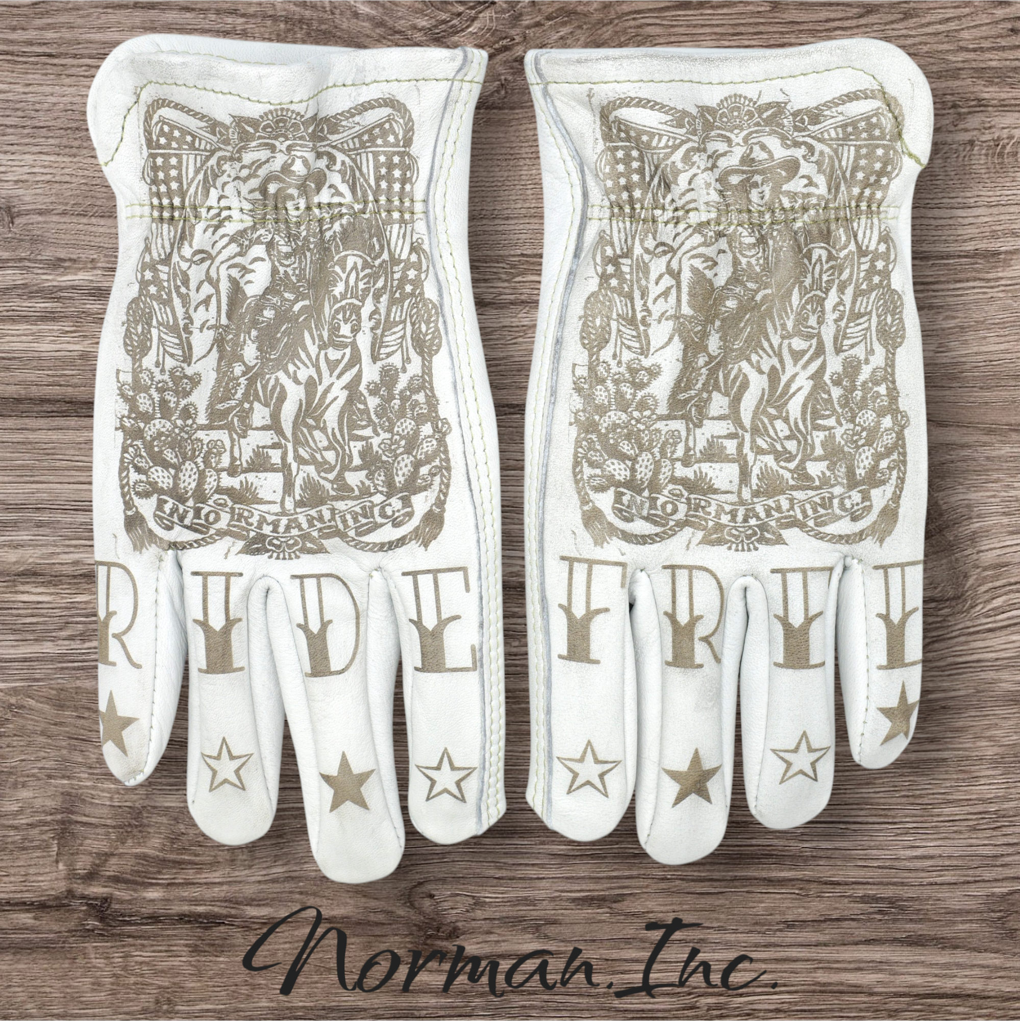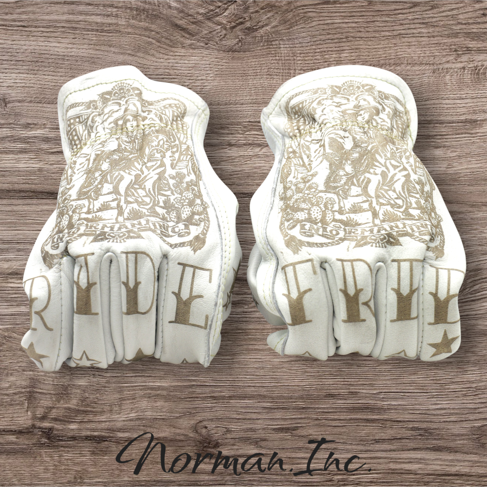 牛革 レザーグローブ ホワイト 白 アメリカン バイク ハーレー カスタム タトゥー 手袋 ツーリング M,L,XLサイズ