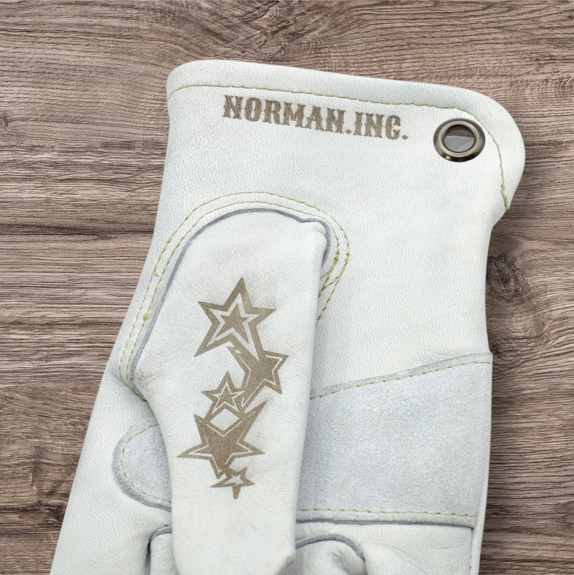 アメトラデザインを施したホワイトの牛革レザーグローブになります。