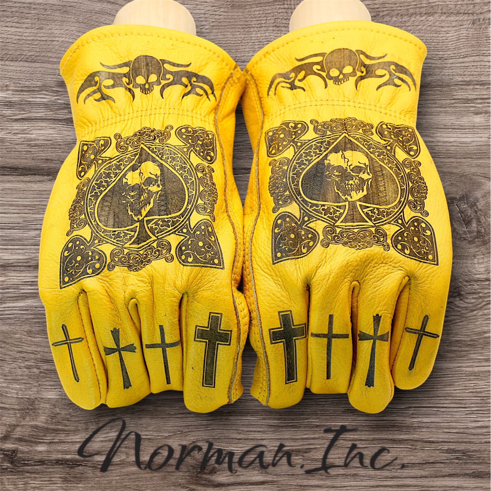 牛革 レザーグローブ アメリカン バイク ハーレー カスタム タトゥー 手袋 キャンプ DIY カスタムグローブ ツーリング