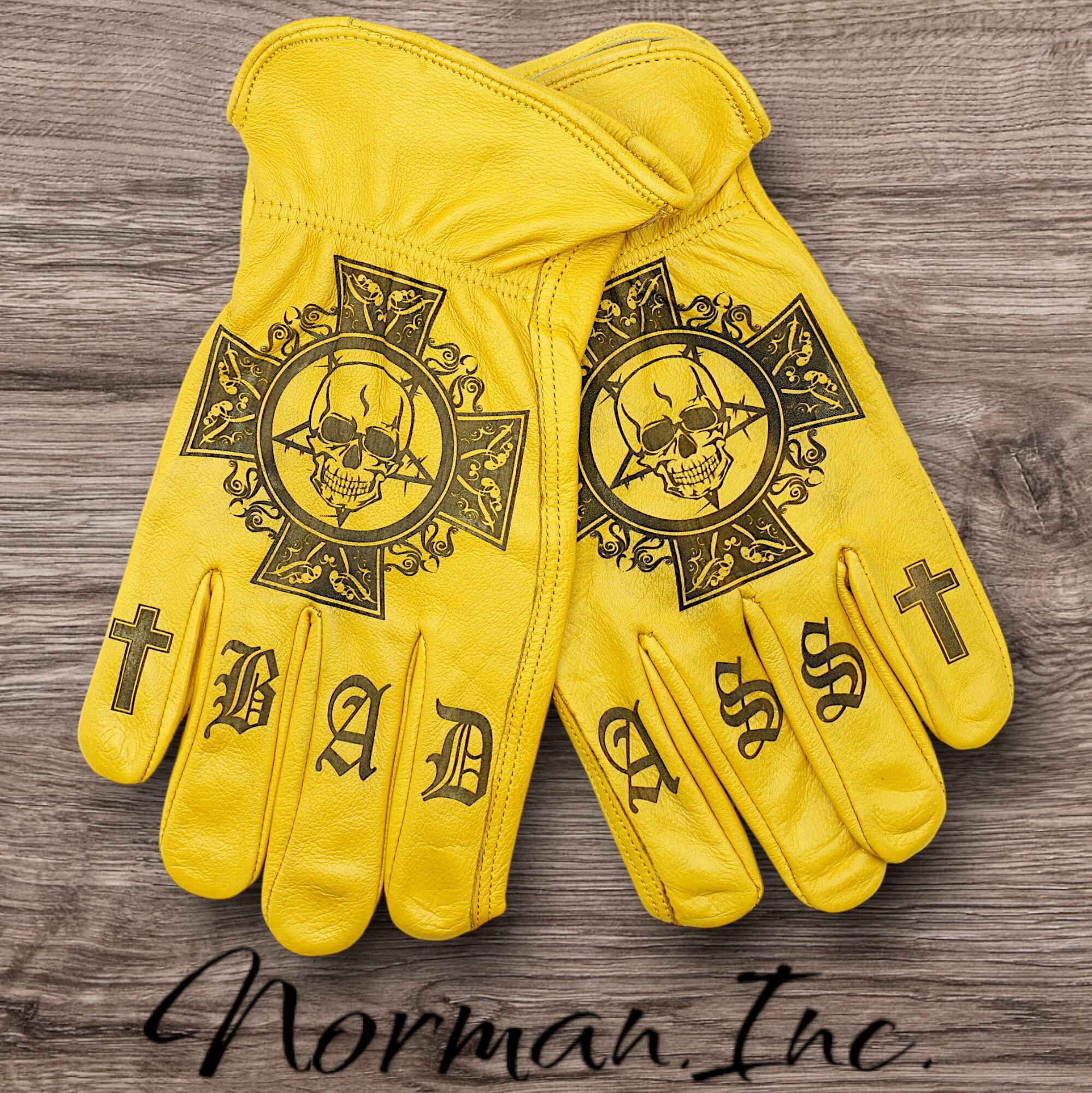 Lサイズ 牛革 レザーグローブ アメリカン バイク ハーレー カスタム タトゥー 手袋 キャンプ DIY カスタムグローブ ツーリング