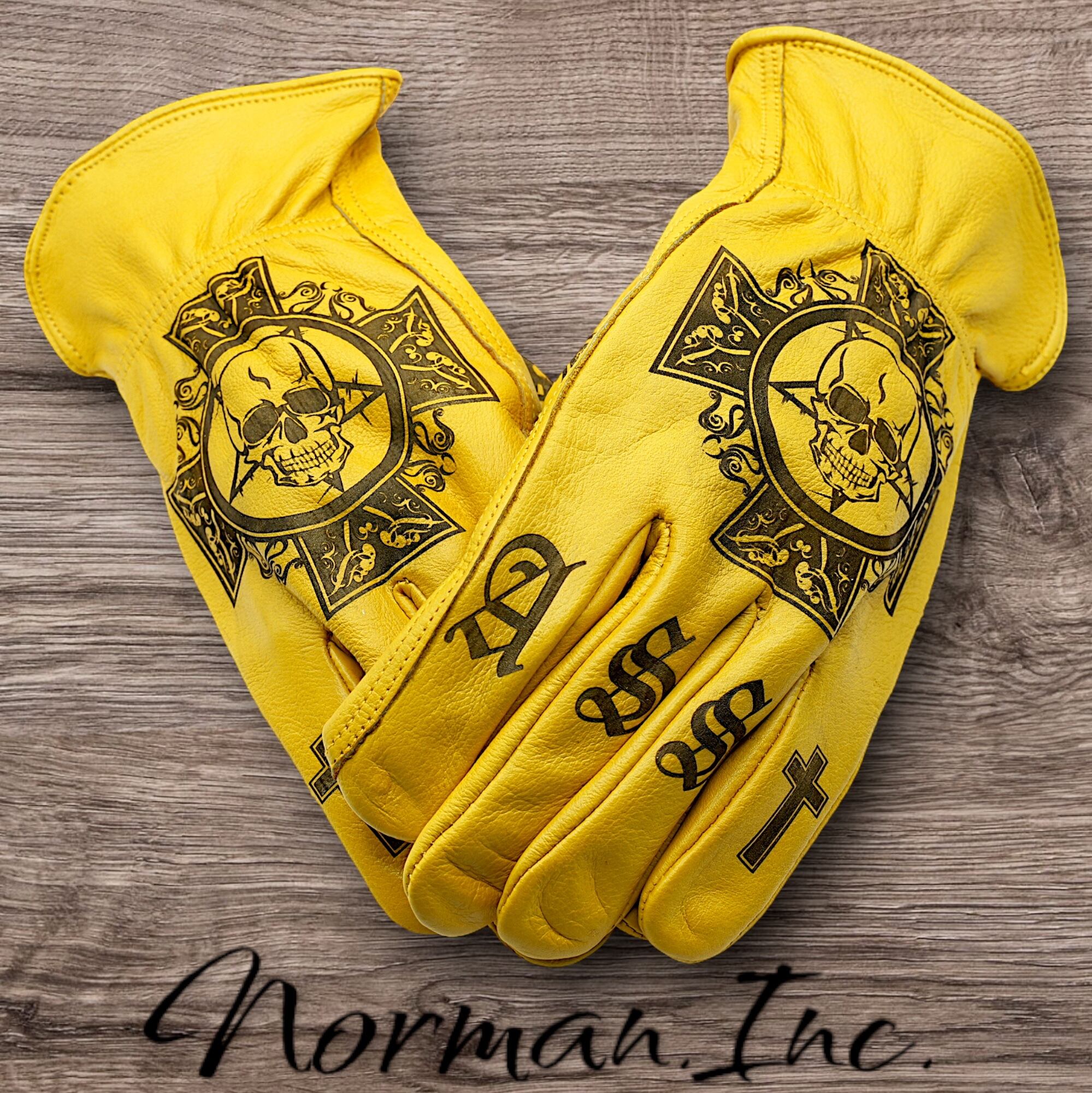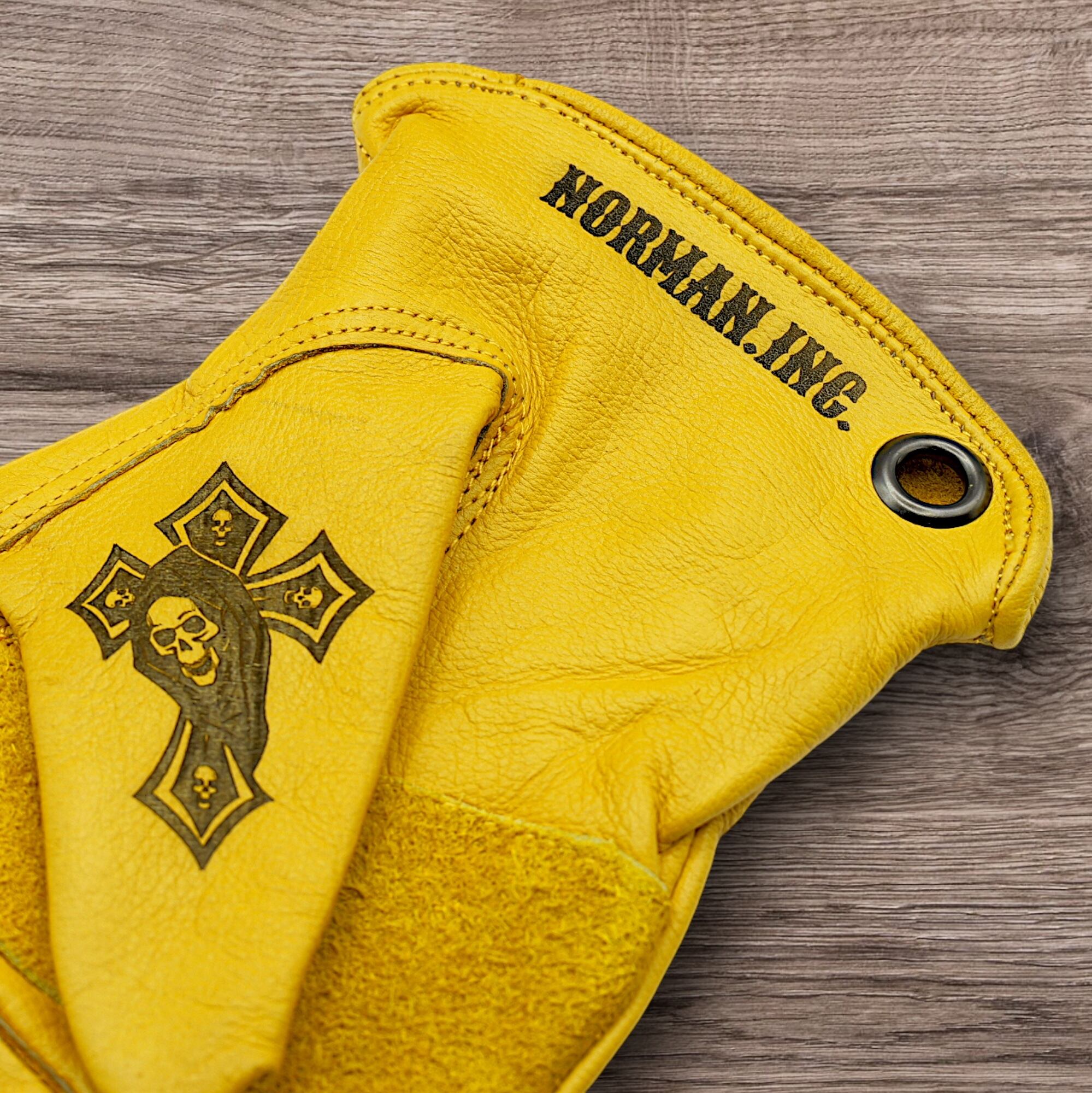アメリカンタトゥーデザインのレザーグローブになります。