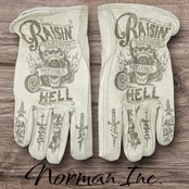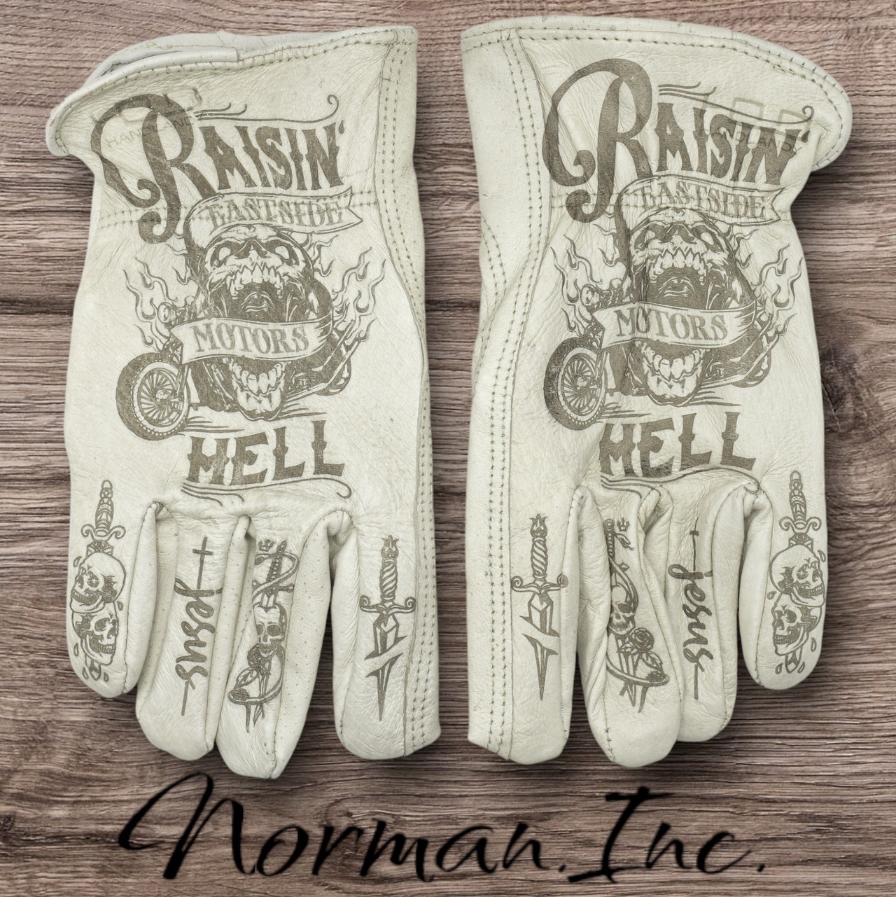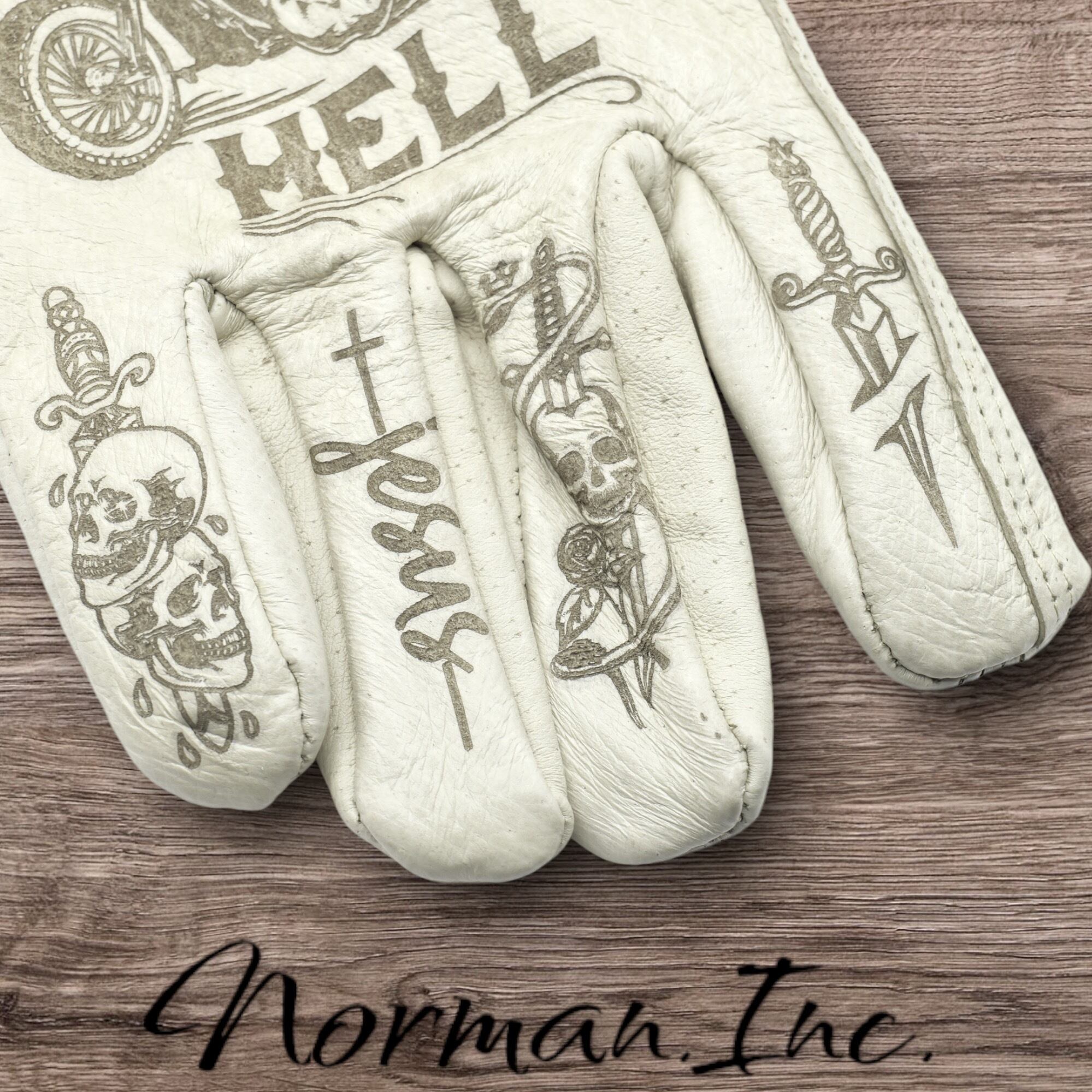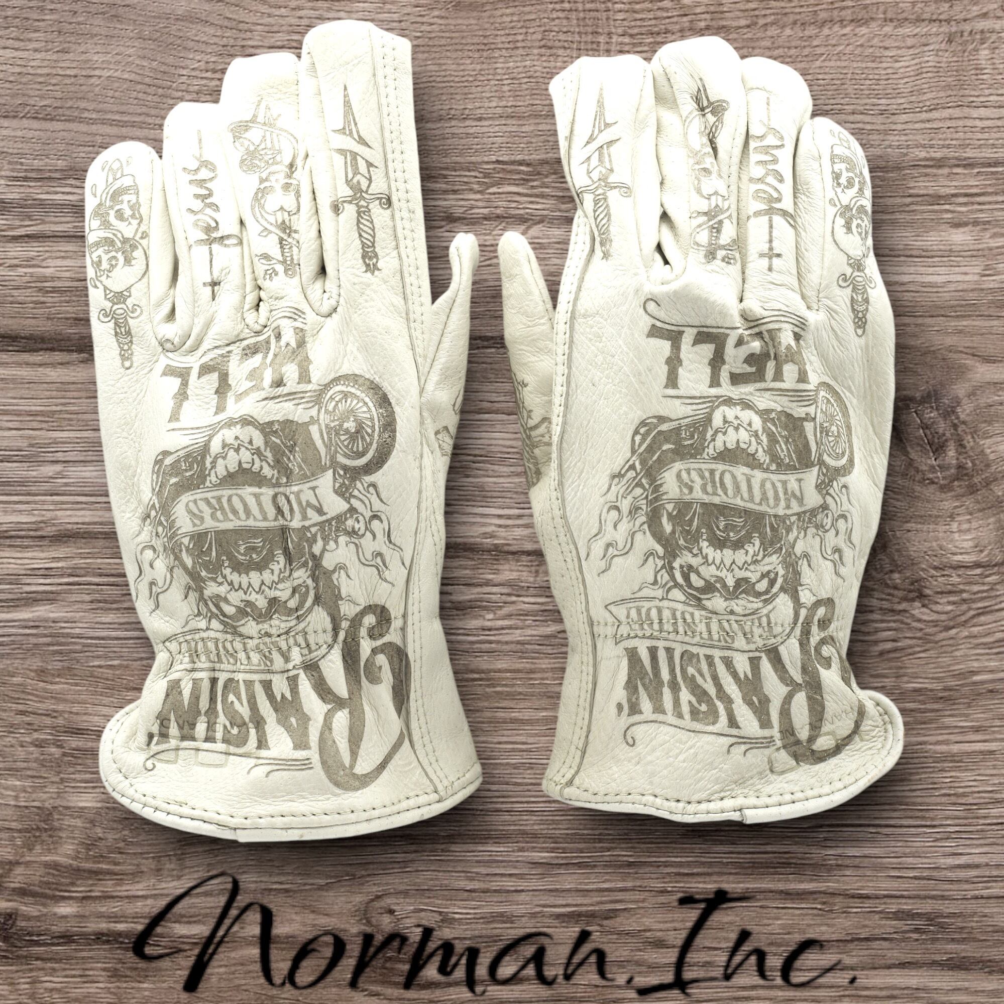 豚革 レザーグローブ ホワイト 白 アメリカン バイク ハーレー カスタム タトゥー 手袋 ツーリング  Lサイズ