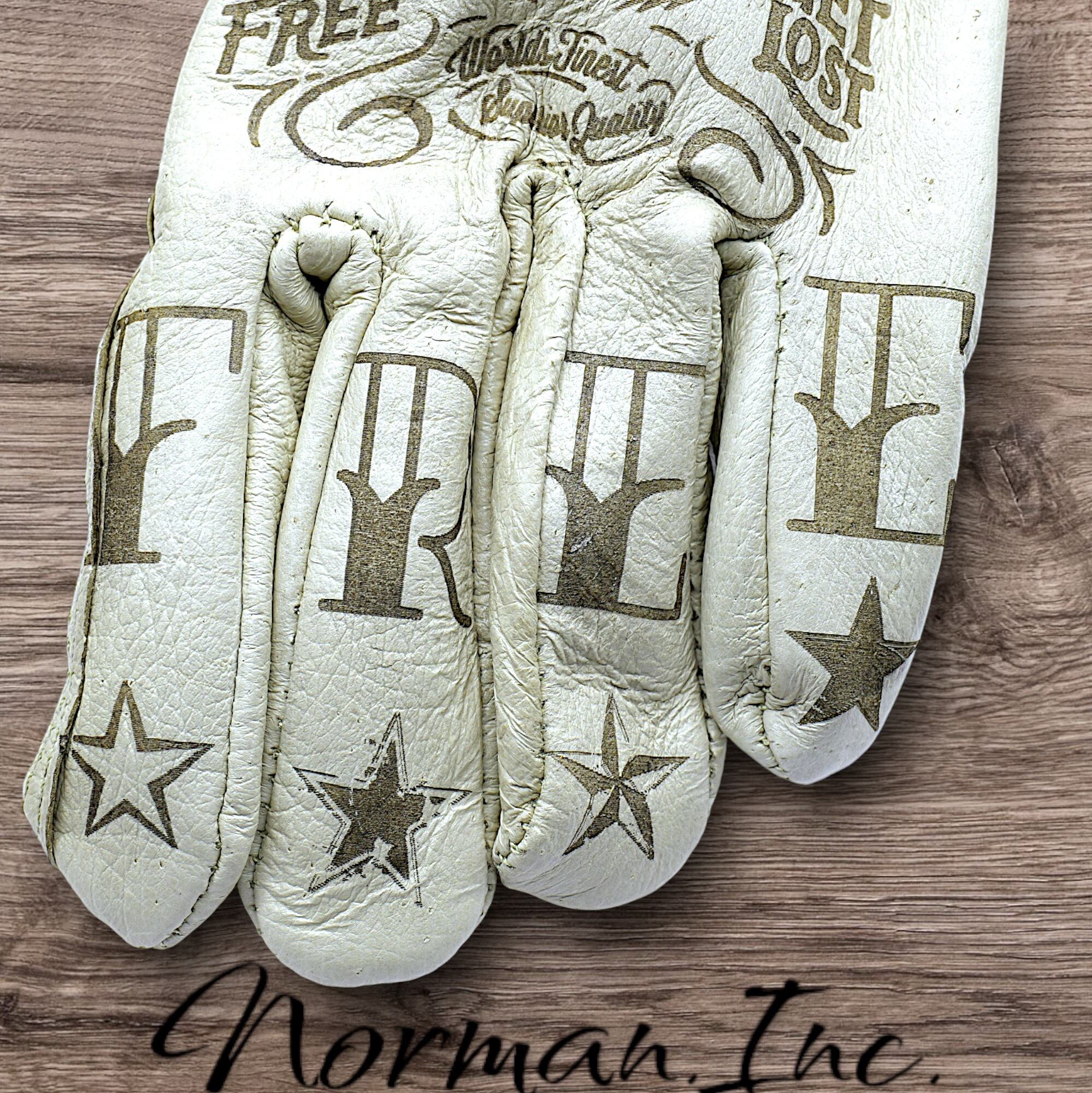 アメリカンデザインを施した、ホワイトのレザーグローブになります。
