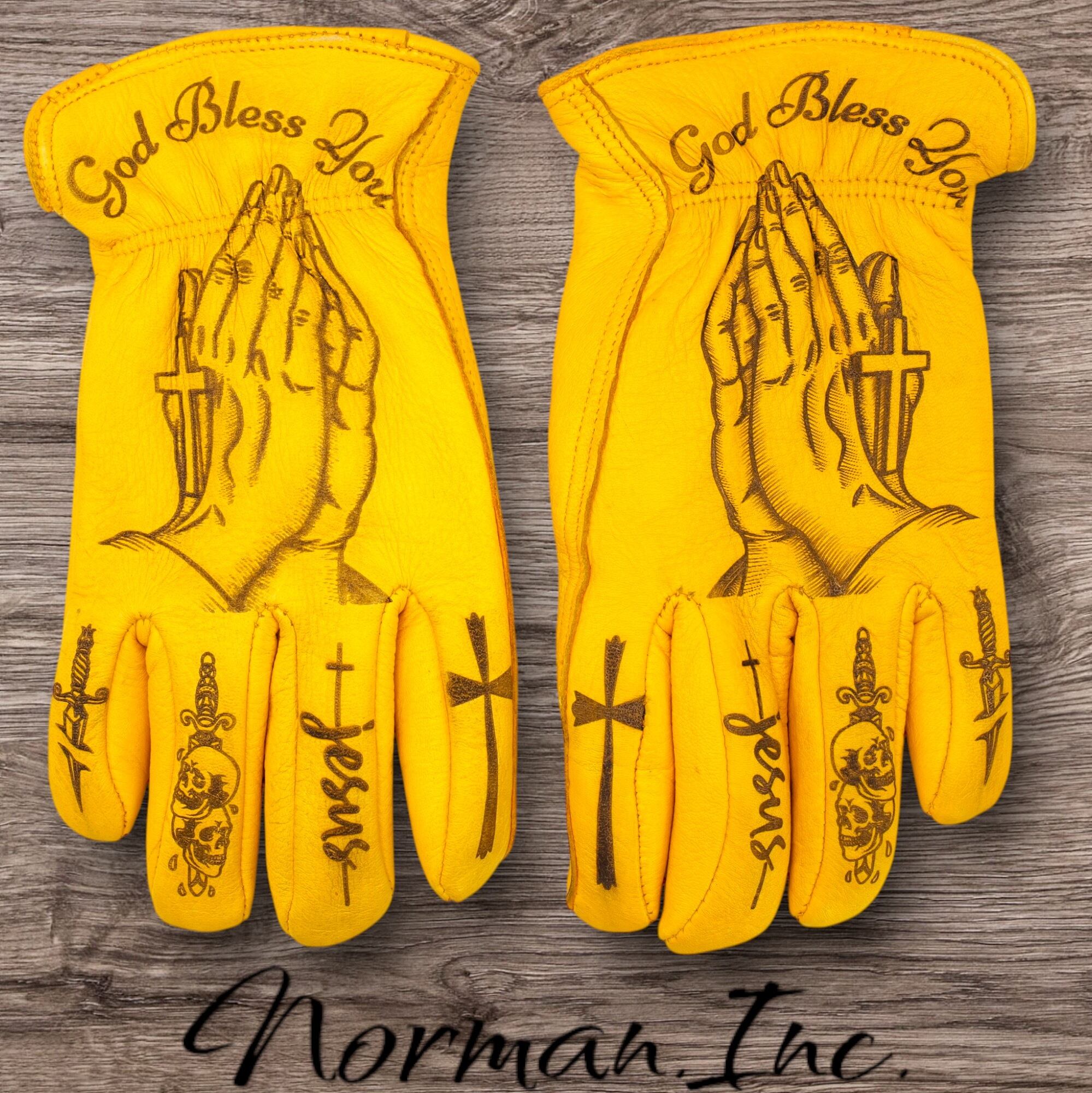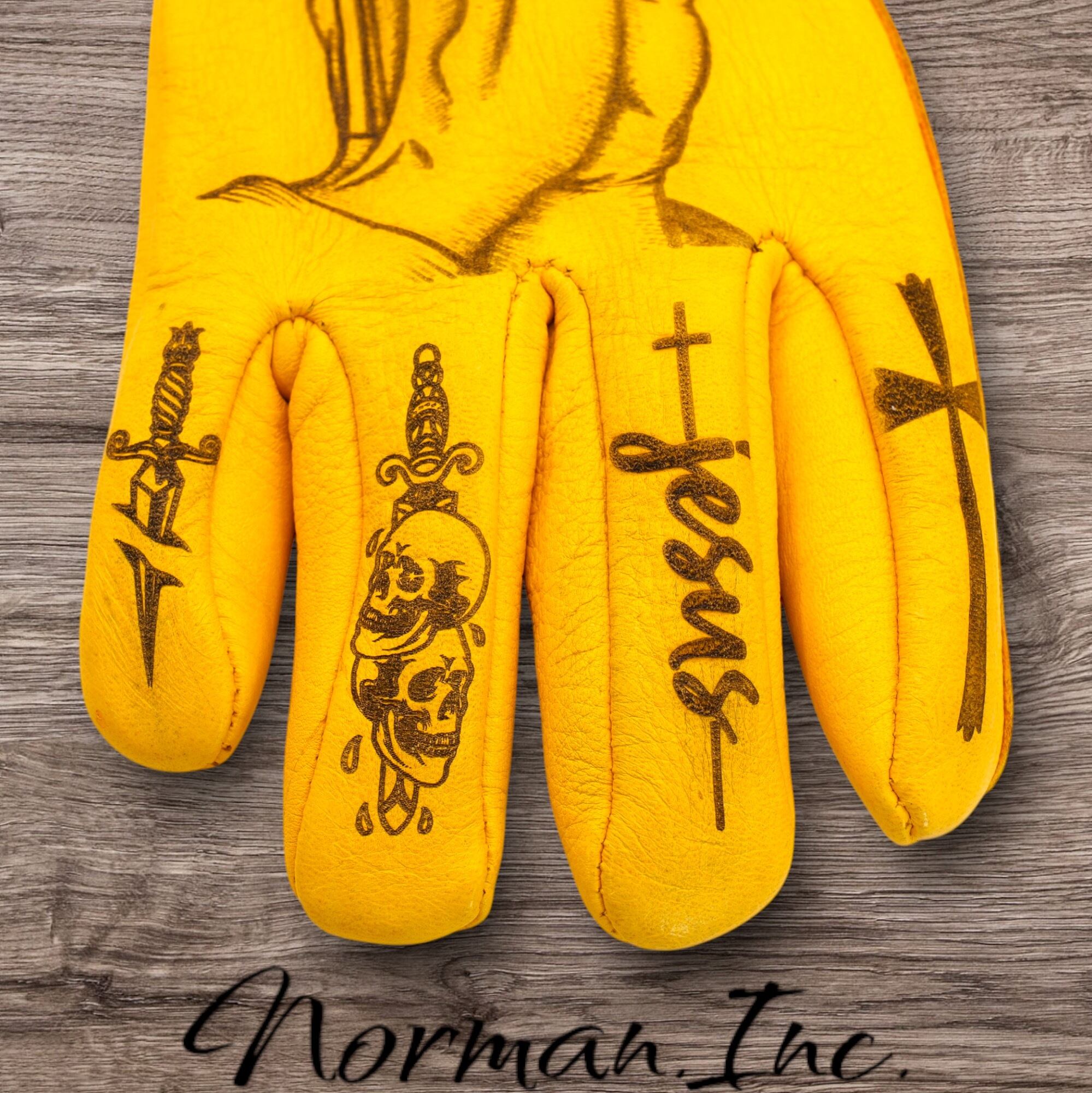 ディアスキン 鹿革 冬用 裏起毛 レザーグローブ アメリカン バイク ハーレー カスタム タトゥー 手袋 キャンプ DIY カスタムグローブ ツーリング Lサイズ