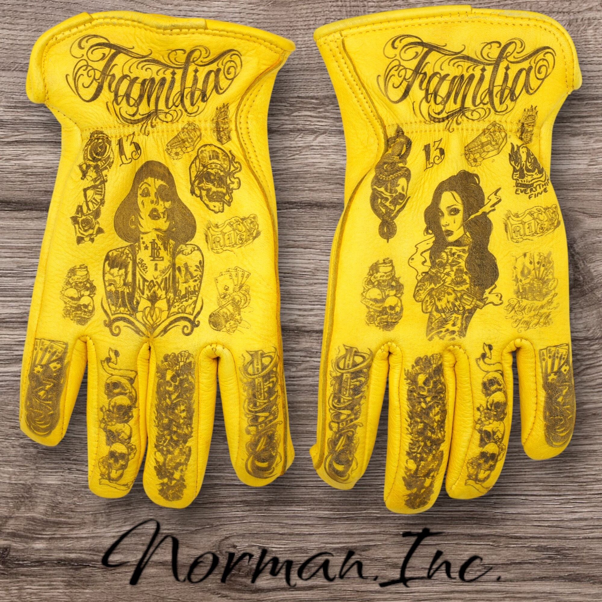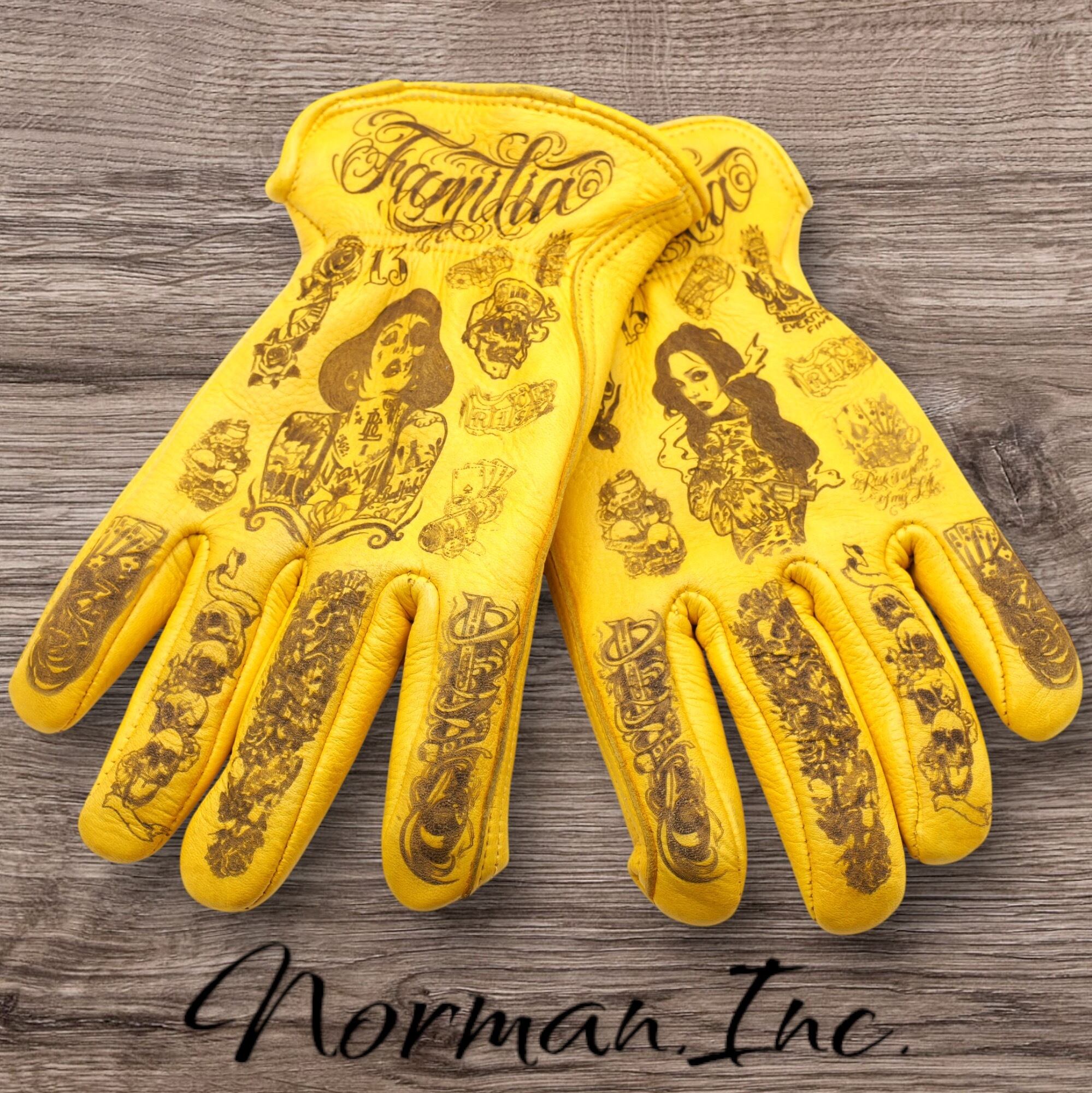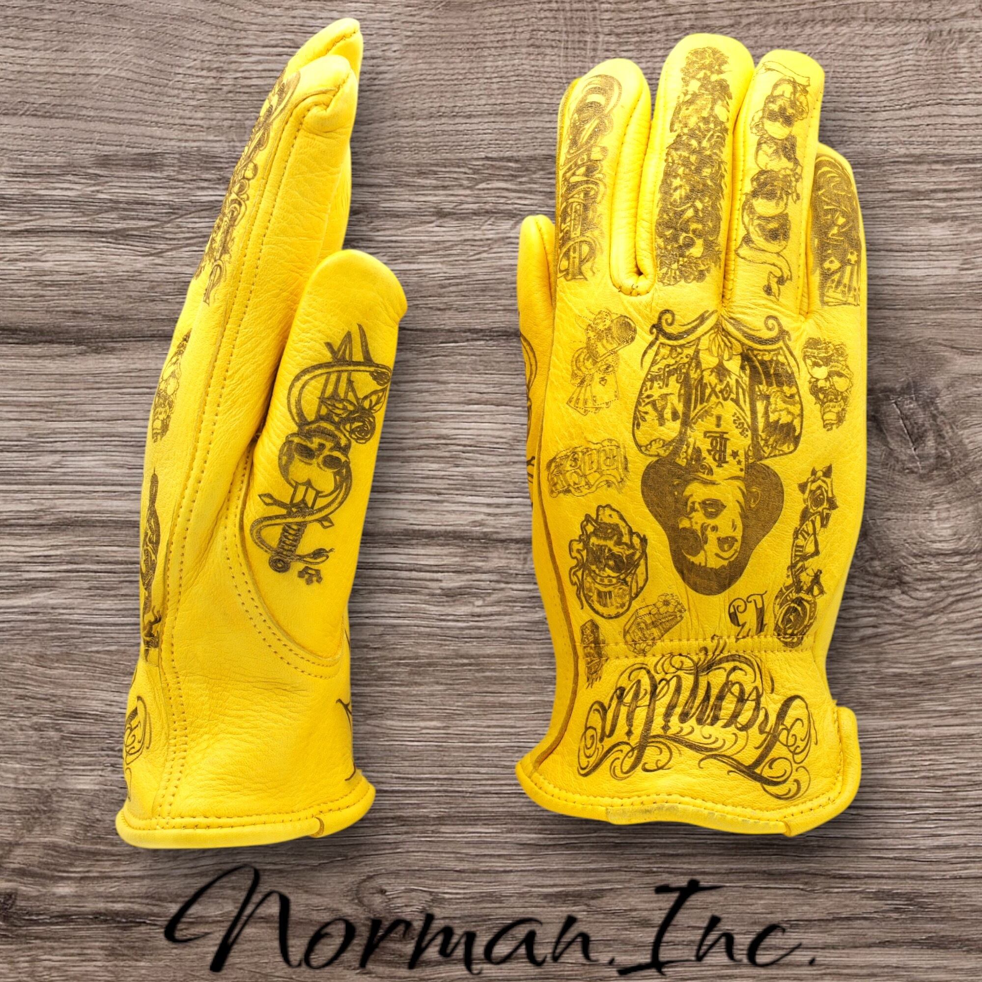 ディアスキン 鹿革 冬用 裏起毛 レザーグローブ アメリカン バイク ハーレー カスタム タトゥー 手袋 キャンプ DIY カスタムグローブ ツーリング Mサイズ