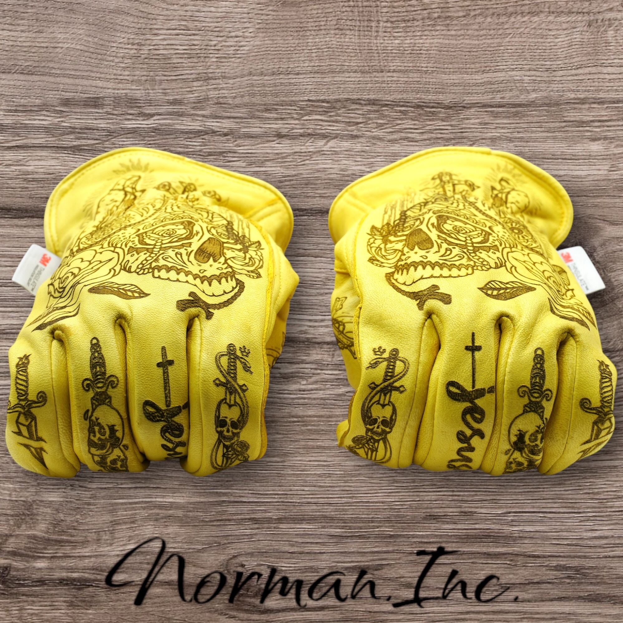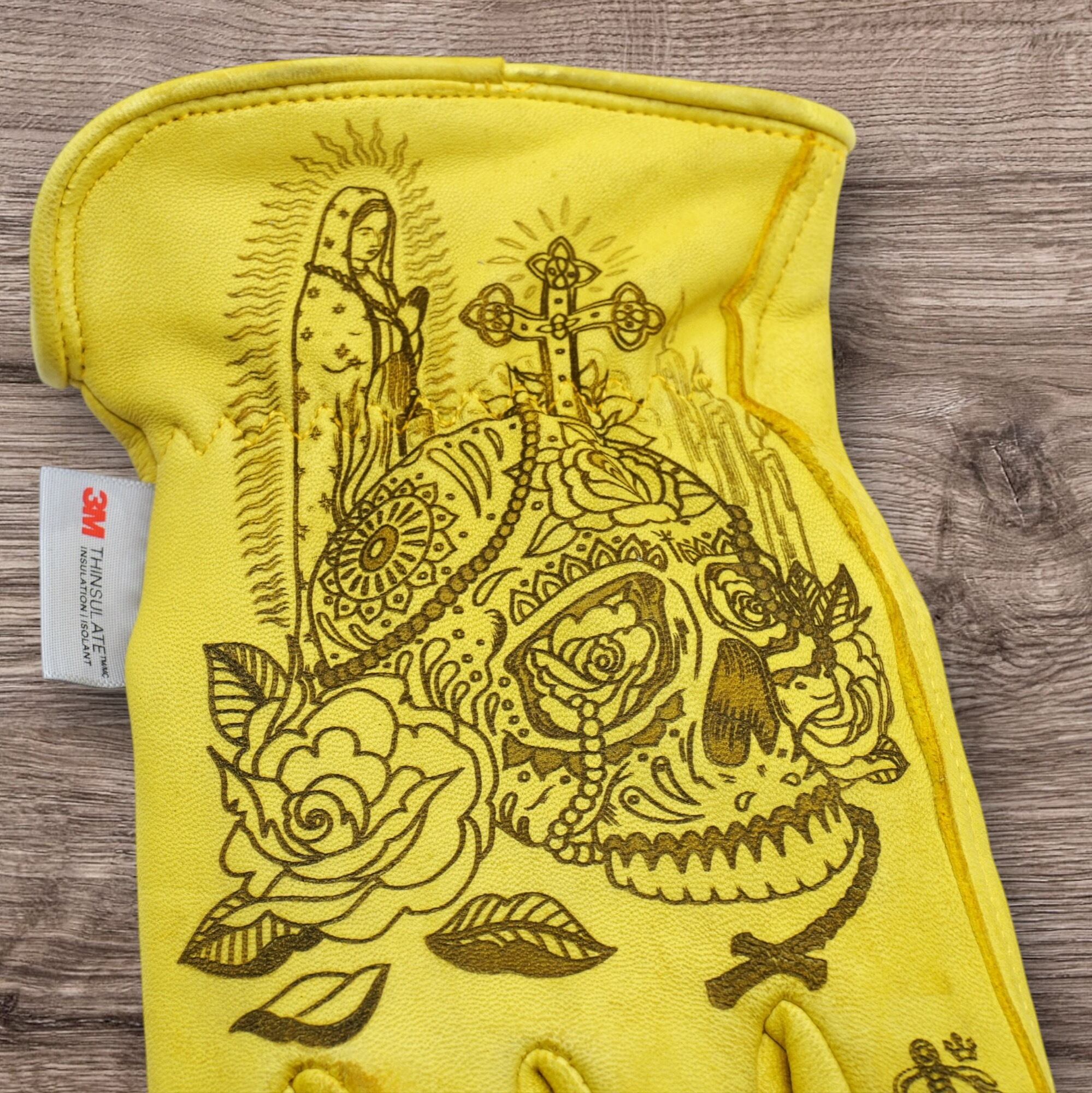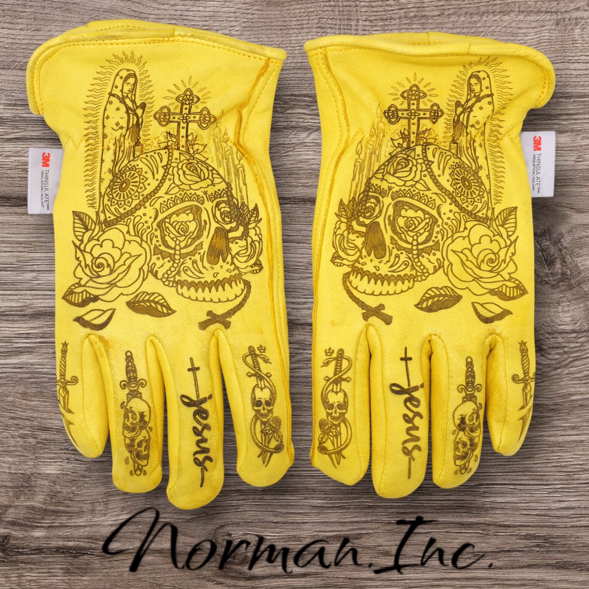 シープスキン 羊革 冬用 裏起毛 レザーグローブ アメリカン バイク ハーレー カスタム タトゥー 手袋 キャンプ DIY カスタムグローブ 3M ツーリング Lサイズ
