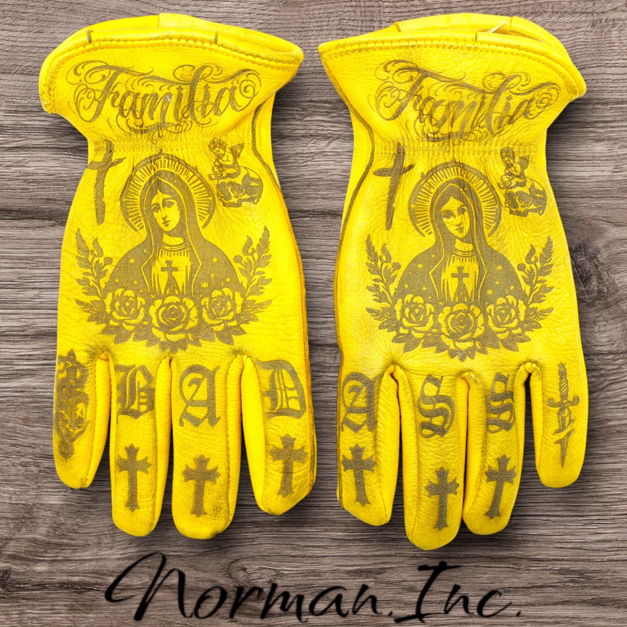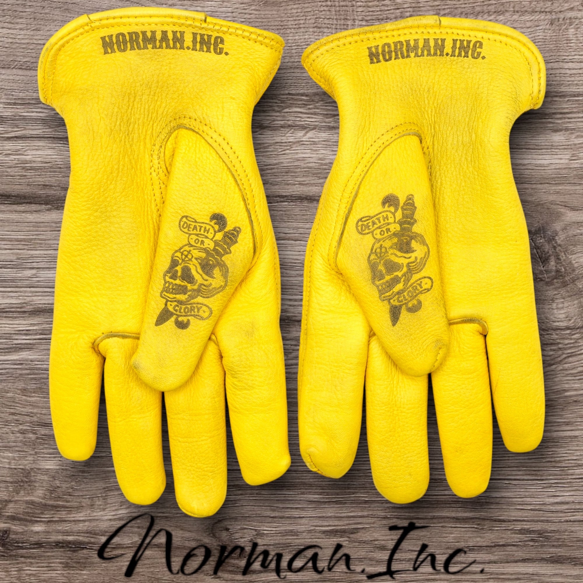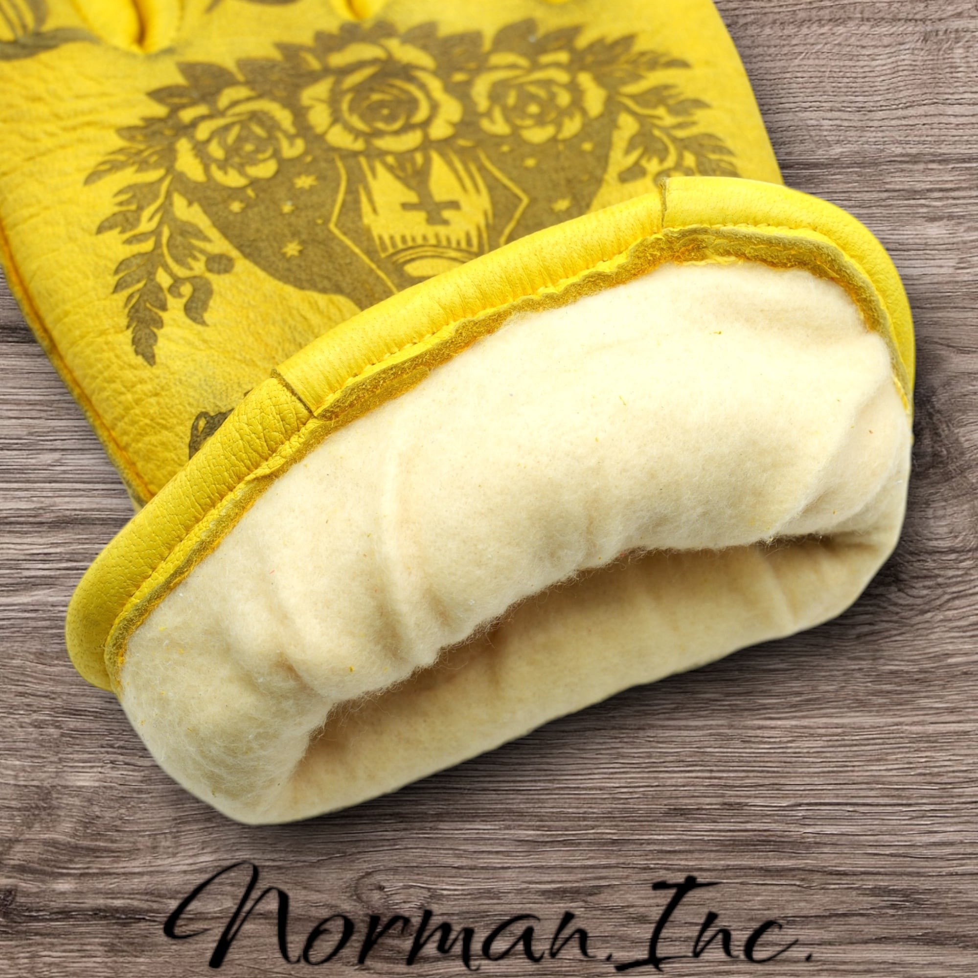 ディアスキン 鹿革 冬用 裏起毛 レザーグローブ アメリカン バイク ハーレー カスタム タトゥー 手袋 キャンプ DIY カスタムグローブ ツーリング Mサイズ