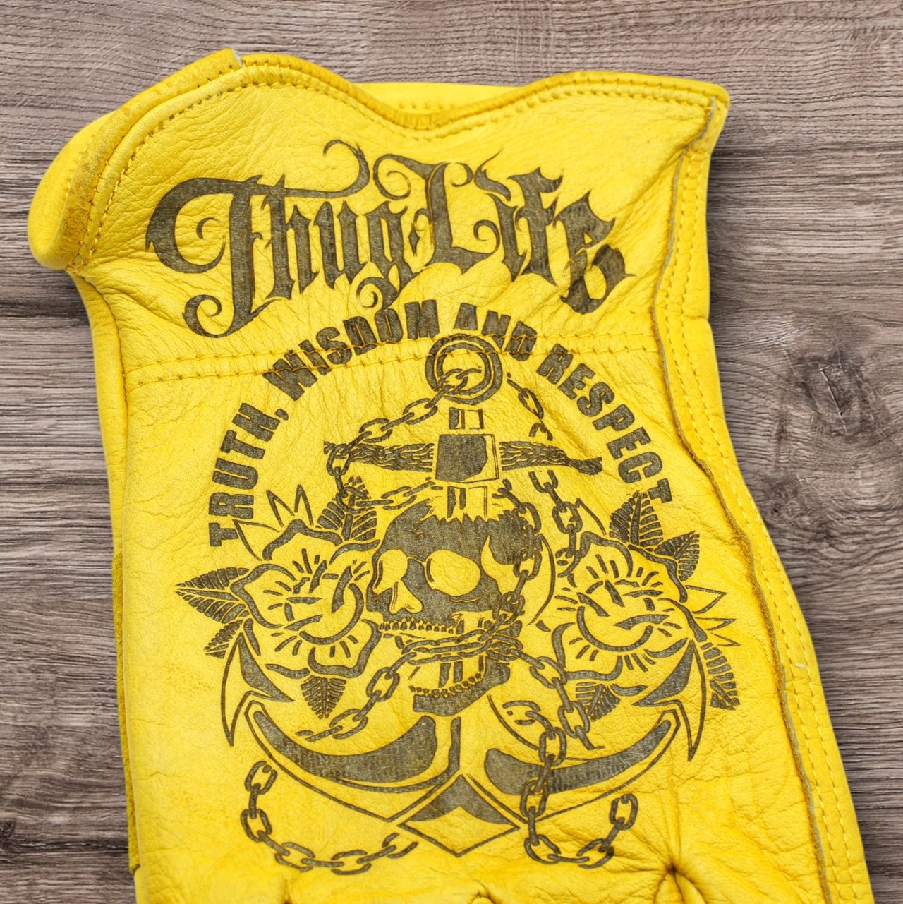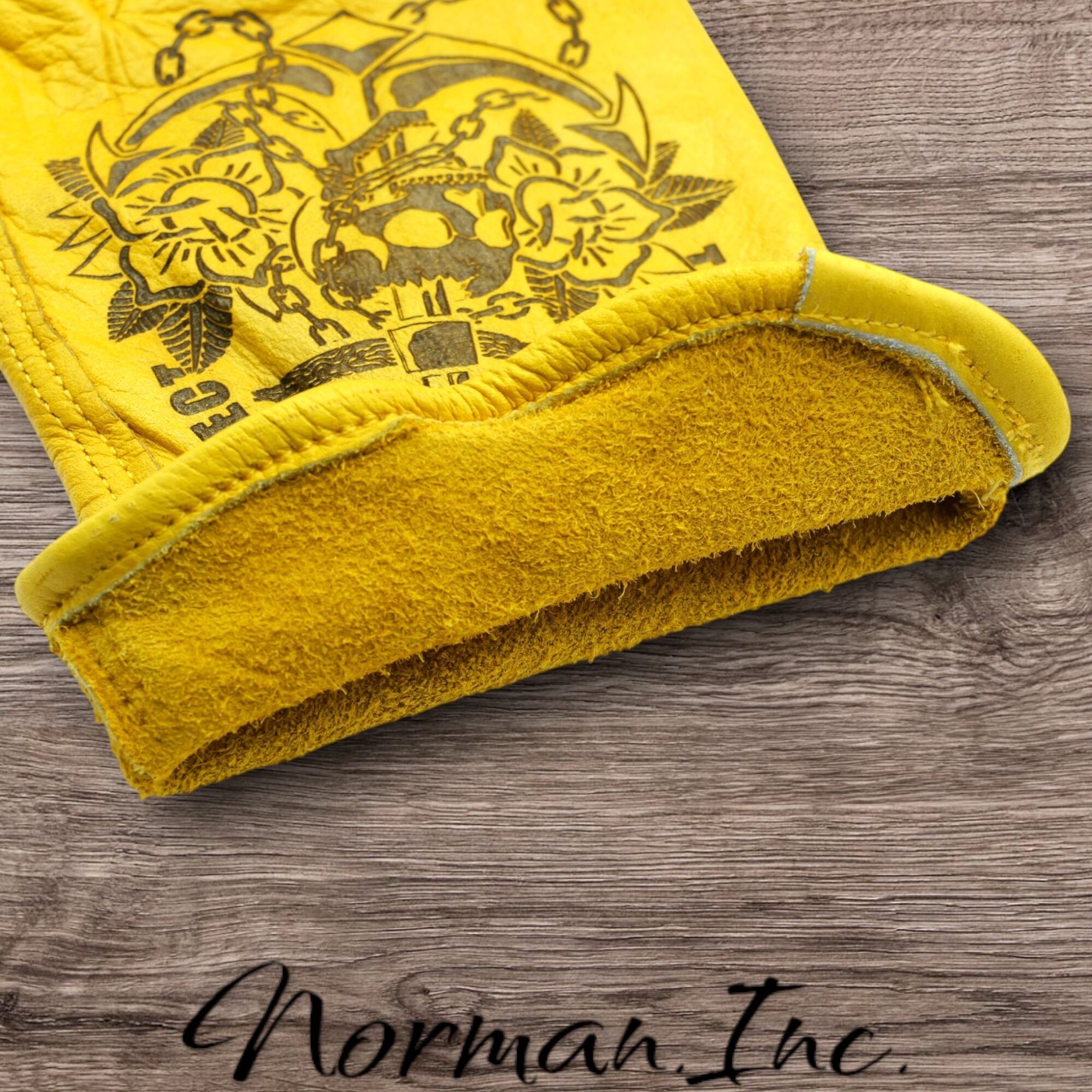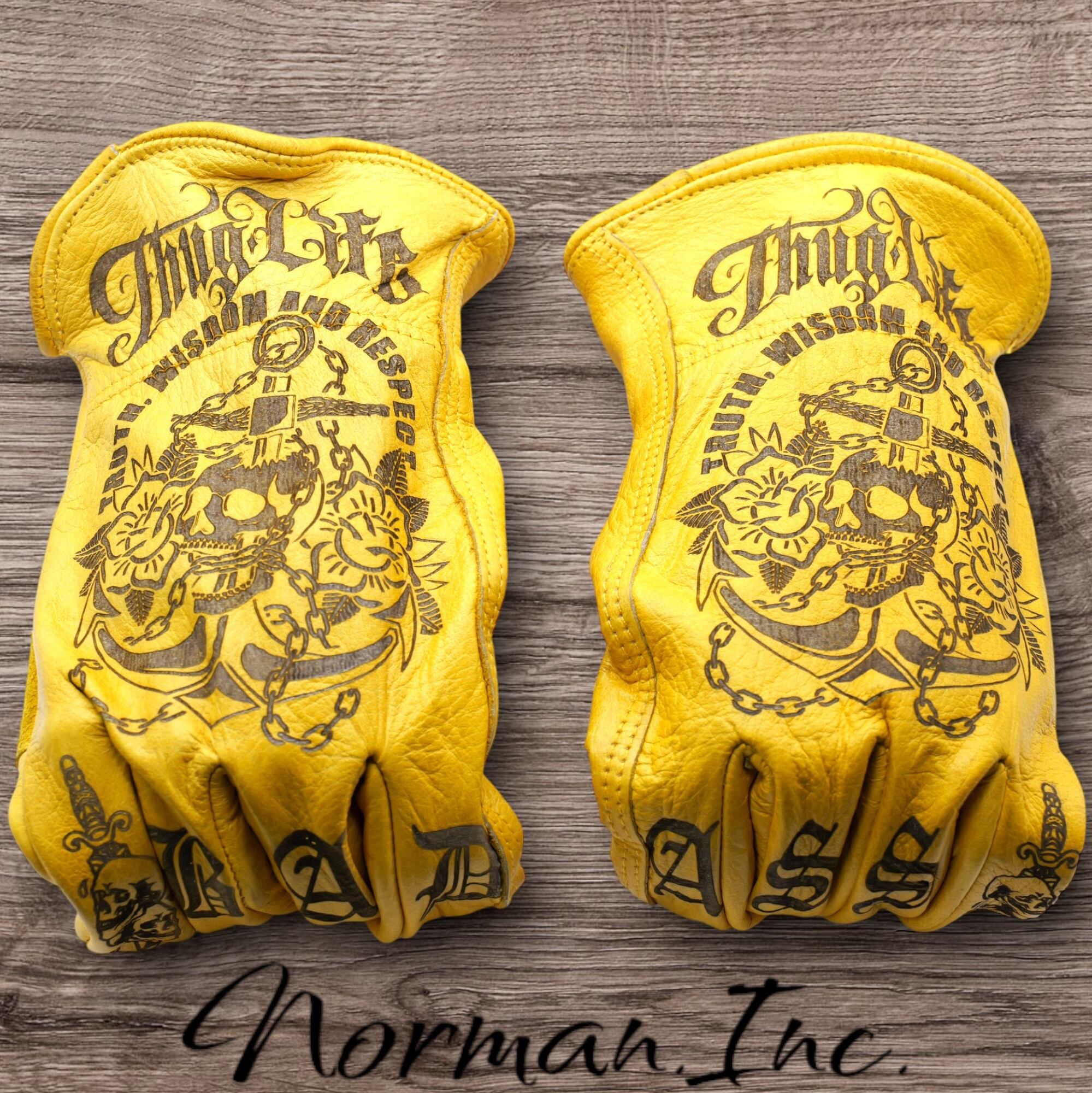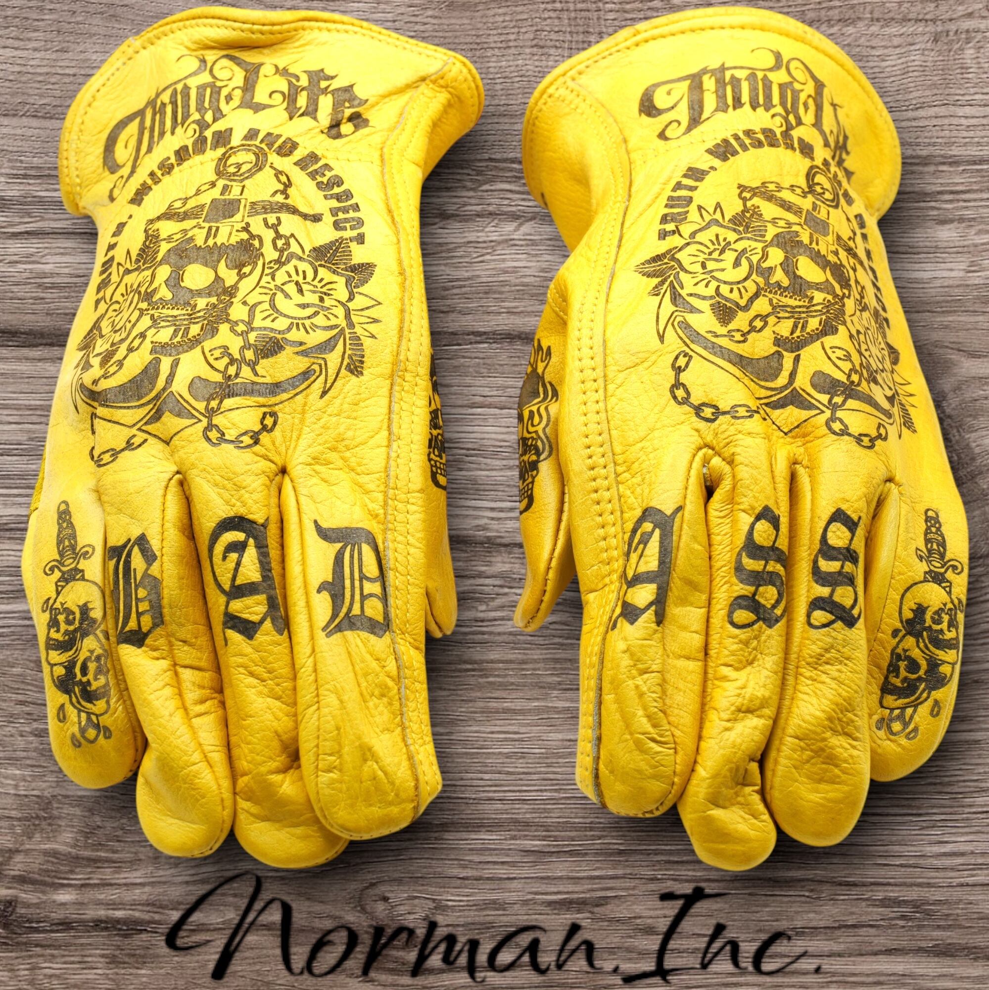 アメリカンタトゥーデザインのレザーグローブになります。
