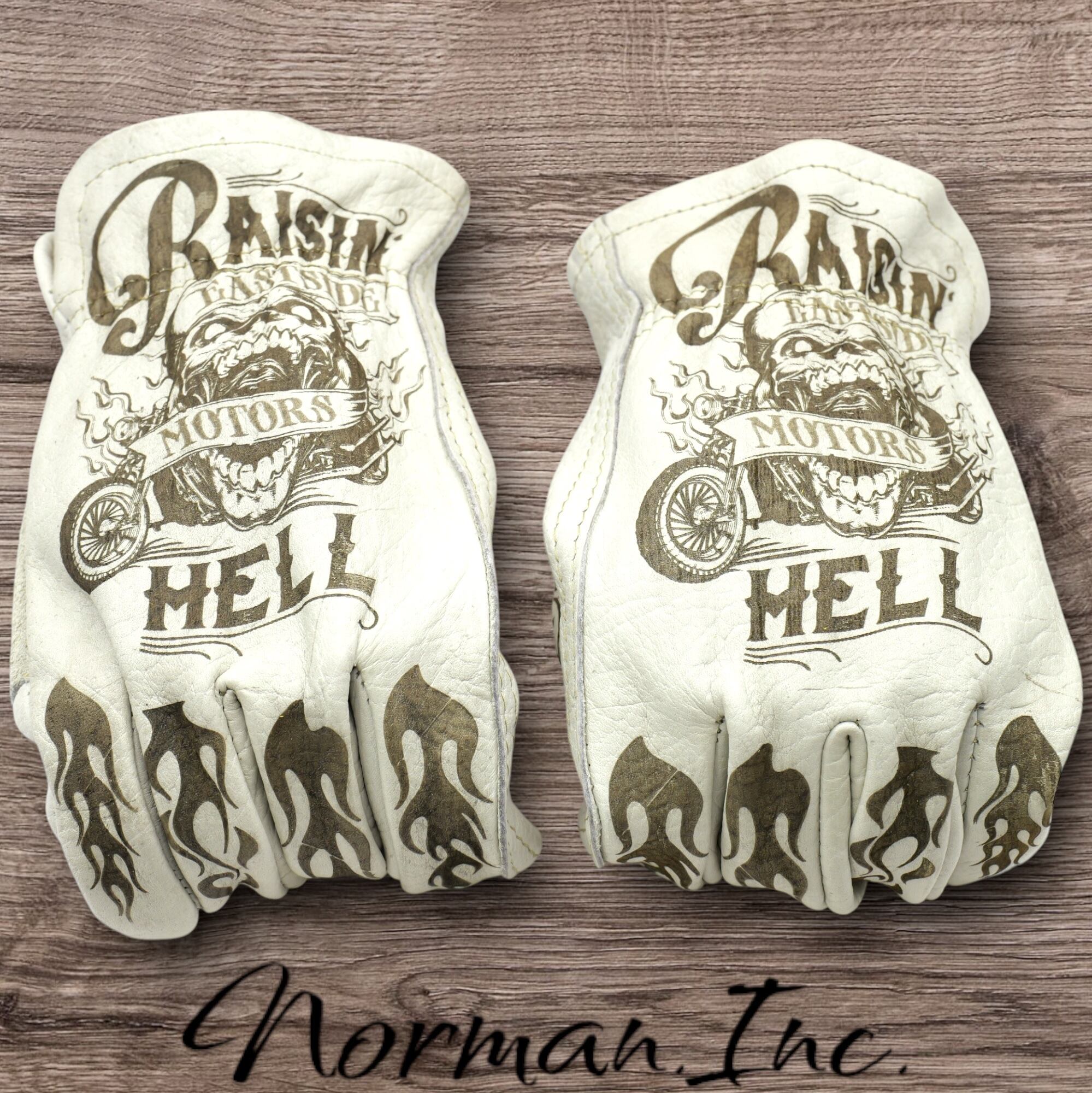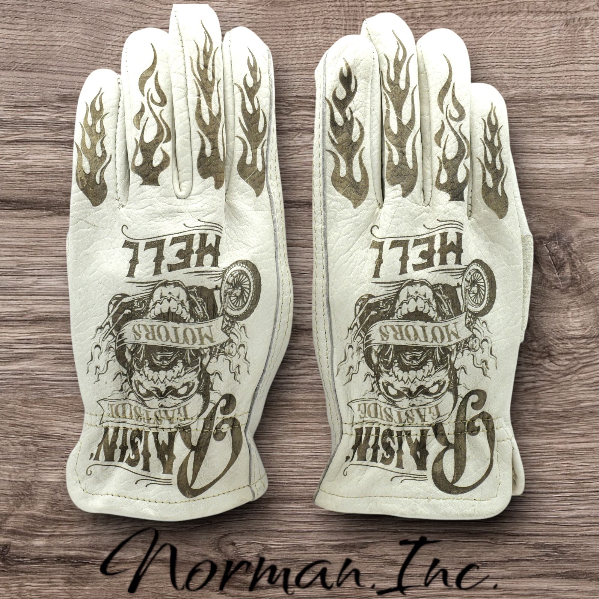 牛革 レザーグローブ アメリカン バイク ハーレー カスタム タトゥー 手袋 ホワイト 白 M、Lサイズ