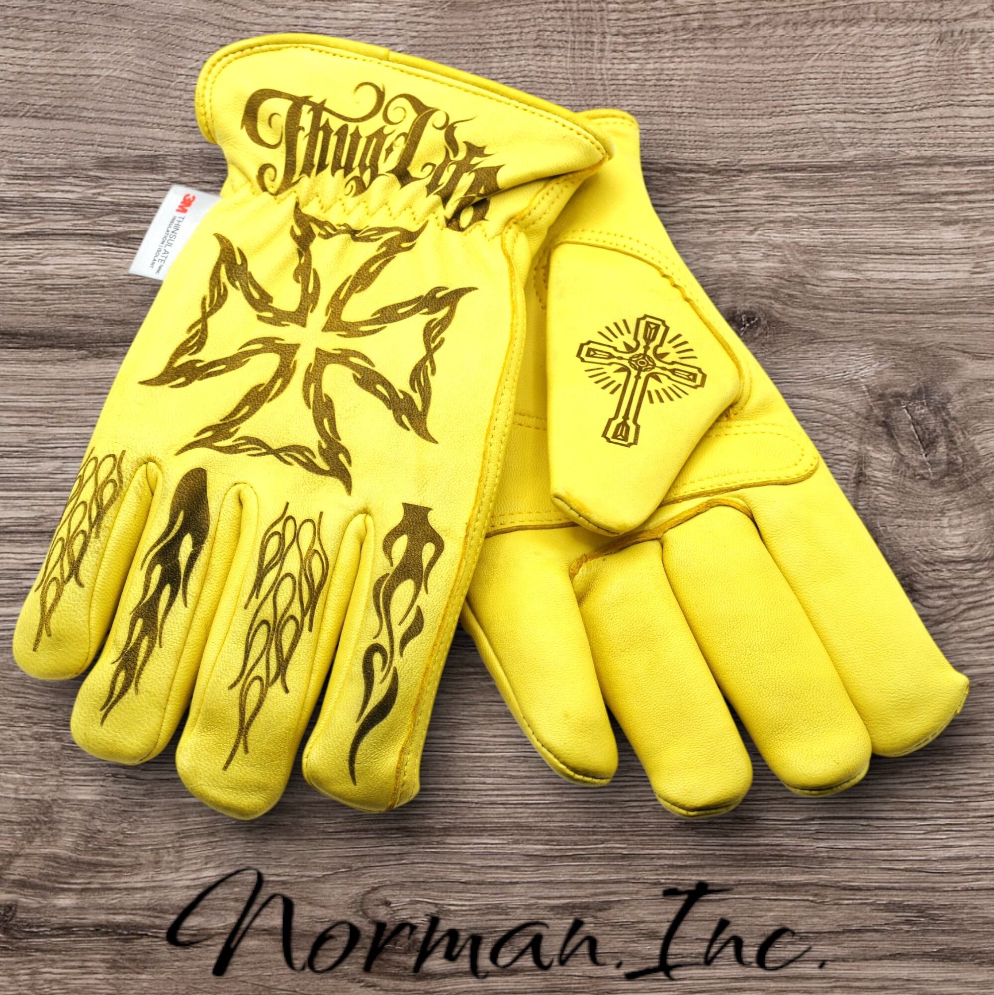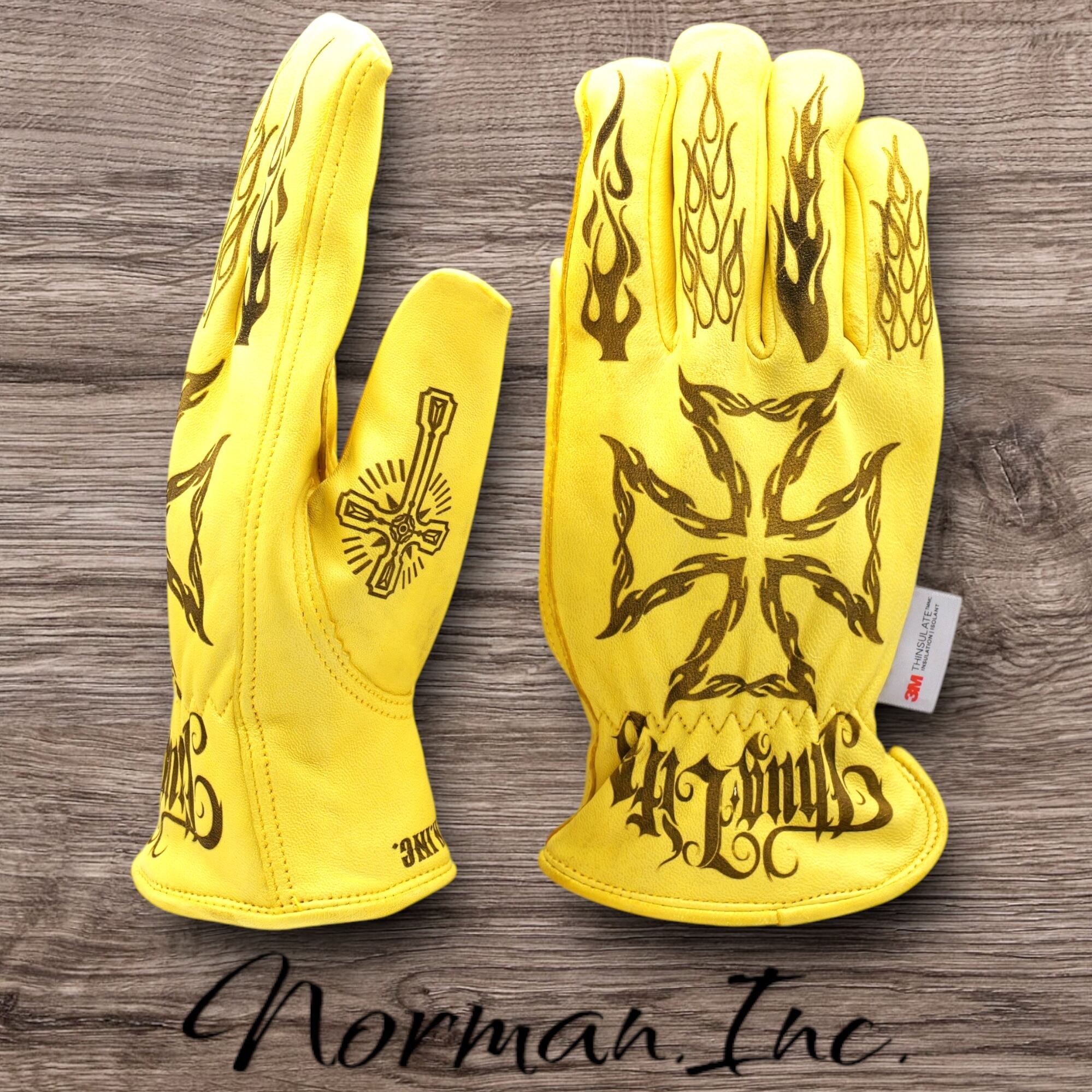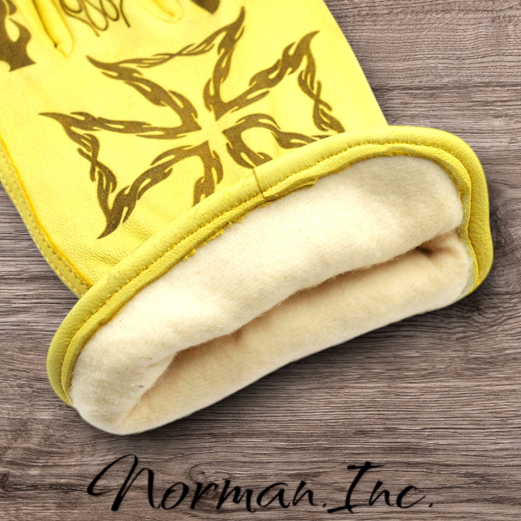 シープスキン 羊革 冬用 裏起毛 レザーグローブ アイアンクロス アメリカン バイク ハーレー カスタム タトゥー 手袋 キャンプ DIY カスタムグローブ 3M ツーリング Mサイズ