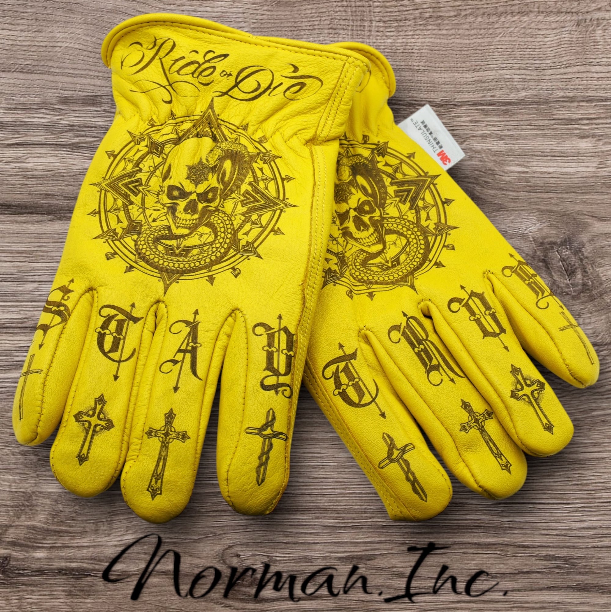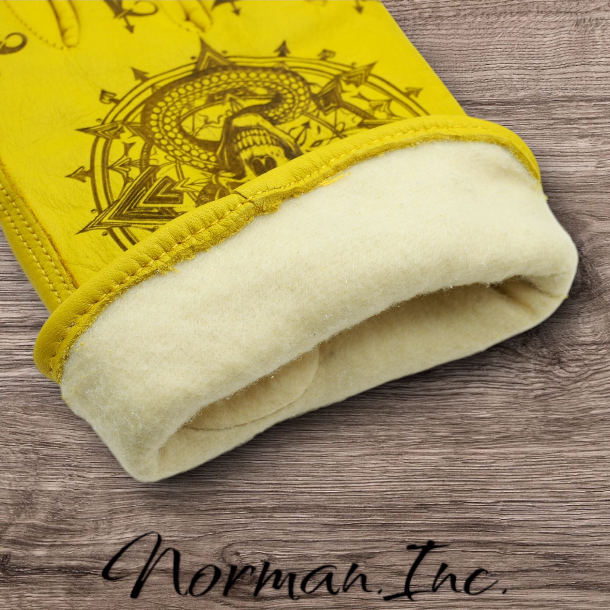 牛革 冬用 保温綿 裏起毛 レザーグローブ スカル アメリカン バイク ハーレー カスタム タトゥー 手袋 キャンプ DIY カスタムグローブ 3M ツーリング Mサイズ