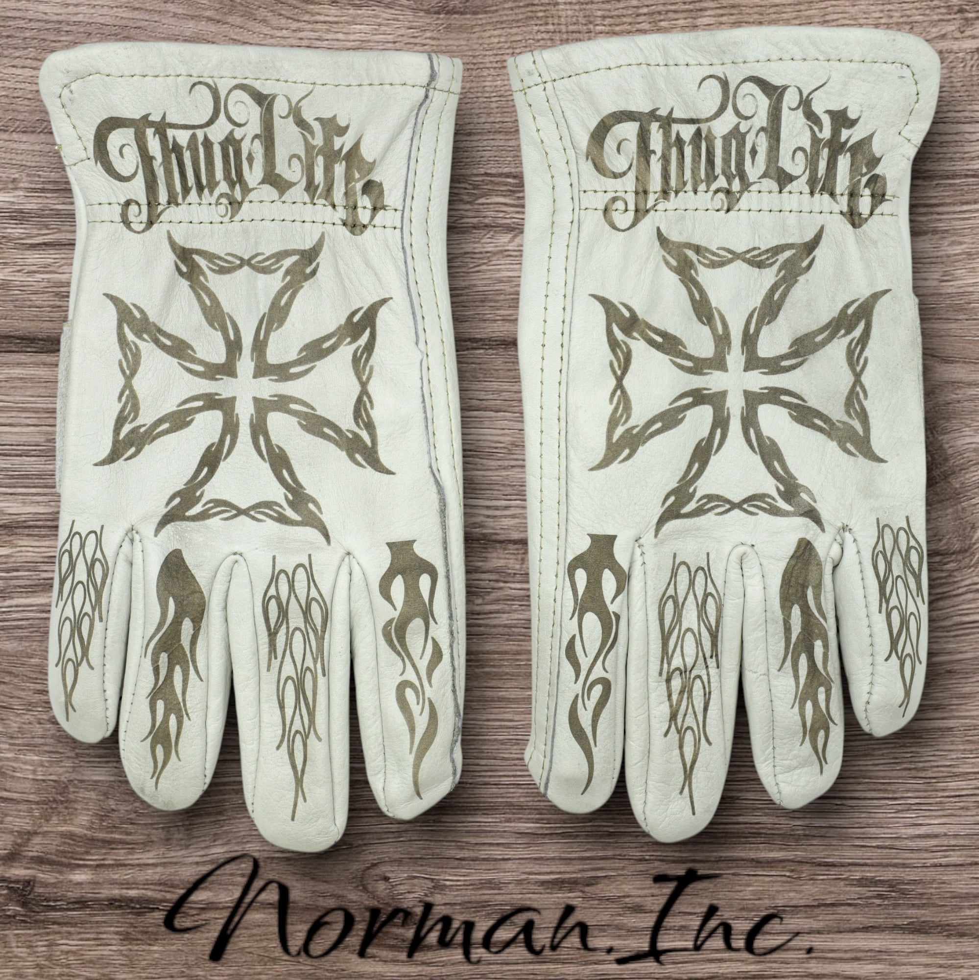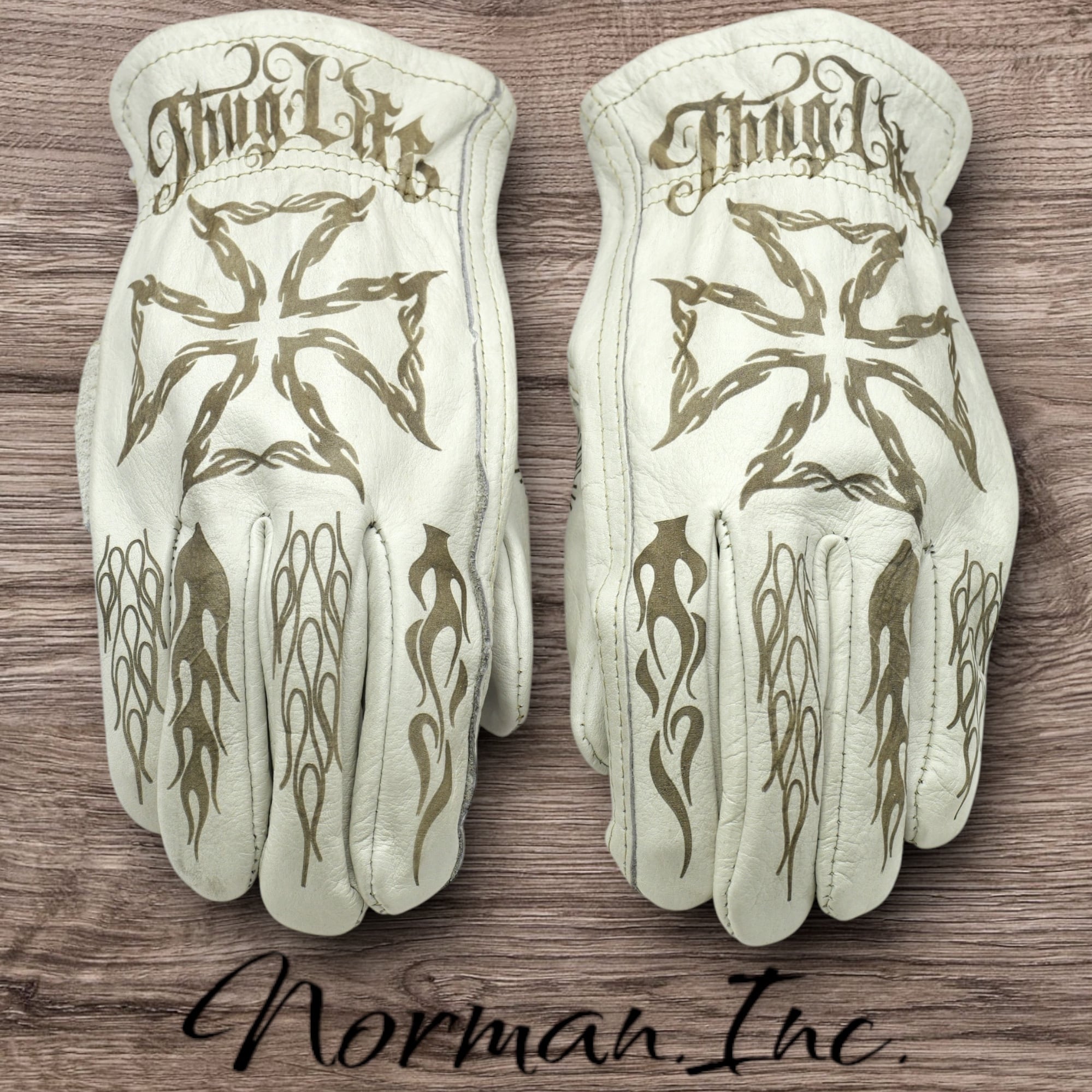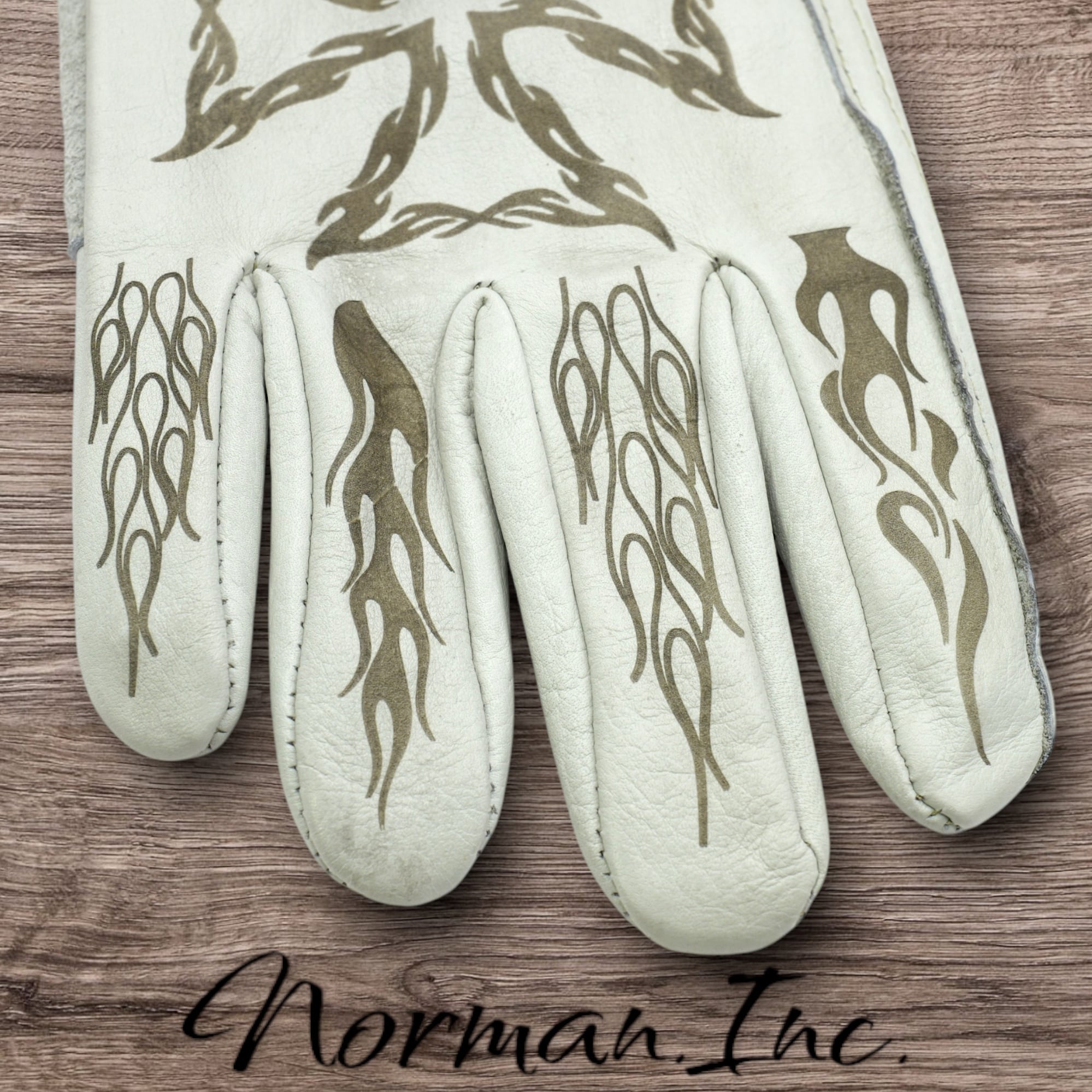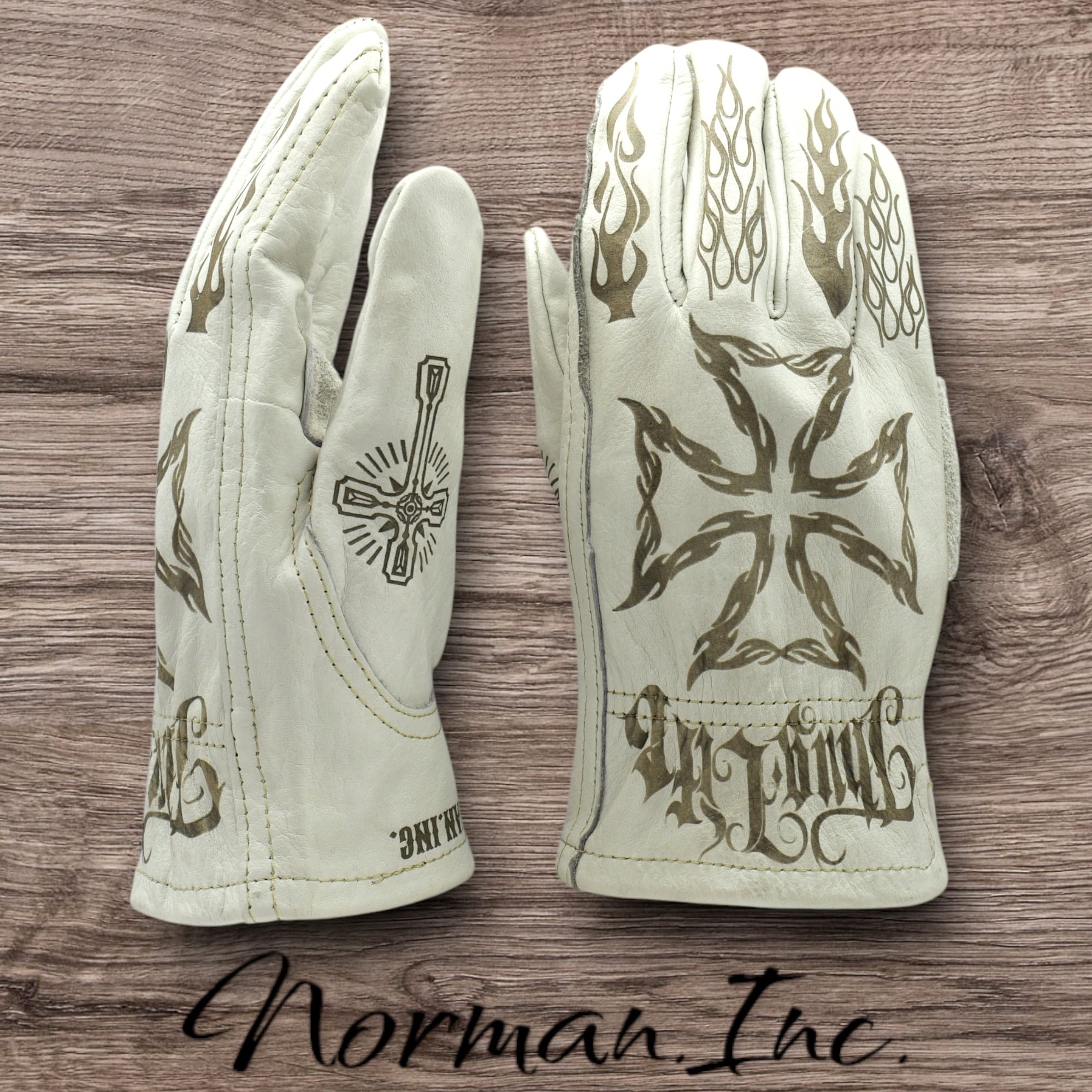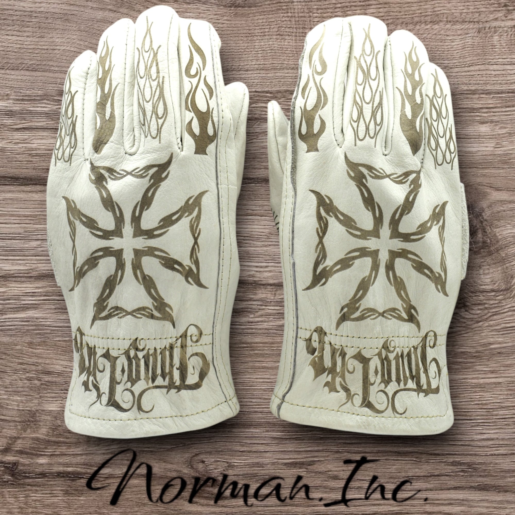 アメリカンデザインを施した、ホワイトの牛革レザーグローブになります。