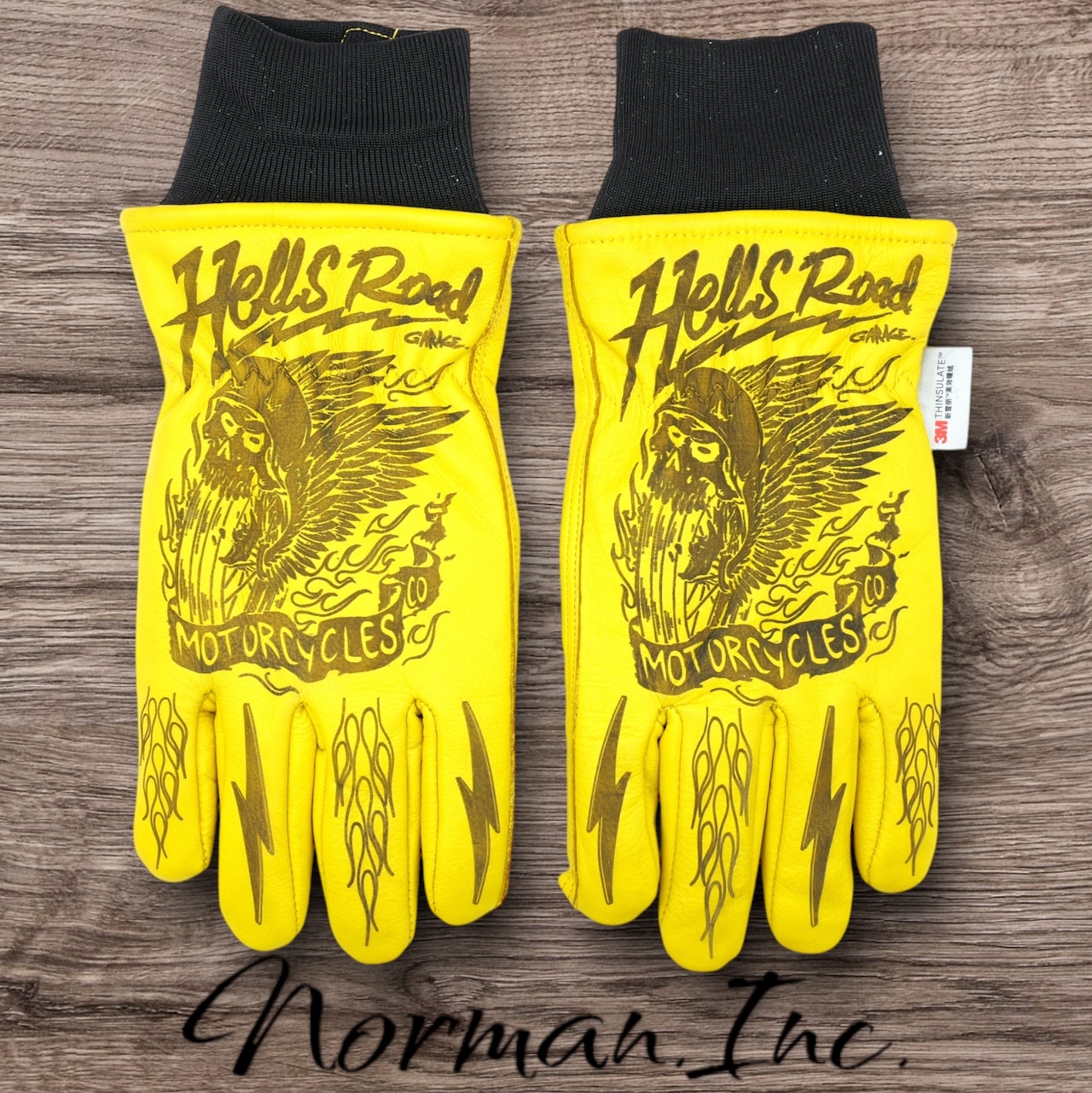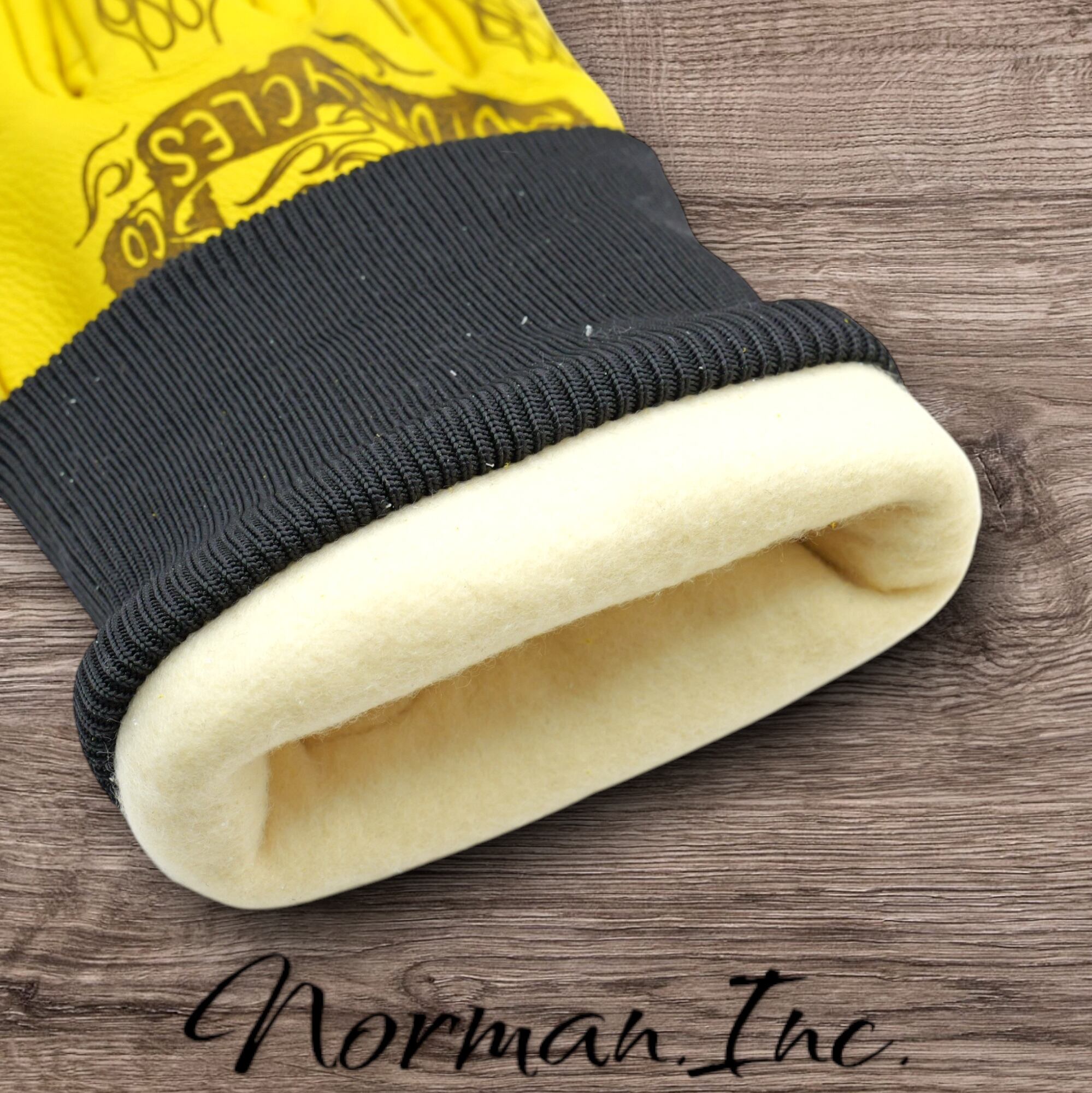 牛革 冬用 保温綿 裏起毛 レザーグローブ リブ付き 防寒 アメリカン バイク ハーレー カスタム タトゥー 手袋 キャンプ DIY カスタムグローブ ツーリング Lサイズ