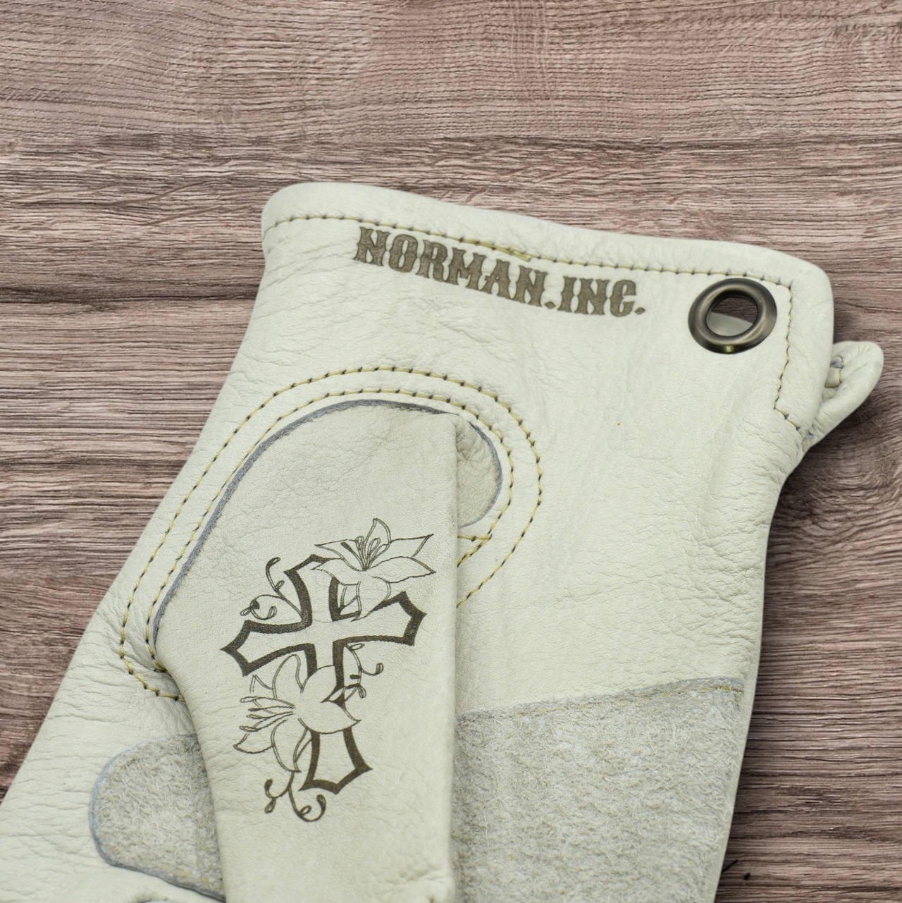 アメリカンデザインを施した、ホワイトの牛革レザーグローブになります。